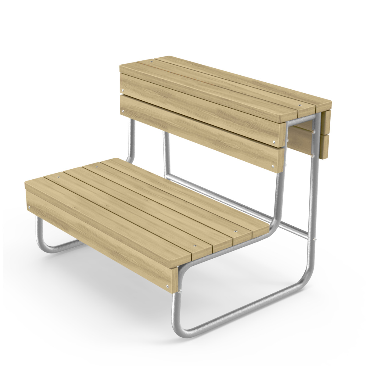 Skapa en härlig mötesplats för skönt häng i utemiljön och där mötesplatsen även kan fungera som en lärmiljö. Genom att erbjuda en permanent mötesplats på gården underlättar man för verksamheten av att förflytta lärandet utomhus. Kombinera våra sittmoduler i olika formationer så kan mötesplatsen anpassas efter era behov och önskemål. Gradängen skapar bra förutsättningar för att sitta på olika sätt och i olika nivåer. Höjden på gradängen gör att den även passar utmärkt som ett ståbord. Stativet på gradängen går att få lackerade i åtta olika färger eller enbart varmförzinkat. Det lackerade stativet är först varmförzinkat. Trä av oljad furu. Vi rekommenderar behandling med vattenbaserad träolja innan användning utomhus. Upprepa behandlingen vid behov. Välj alternativ för nedgrävning eller ytmontering.