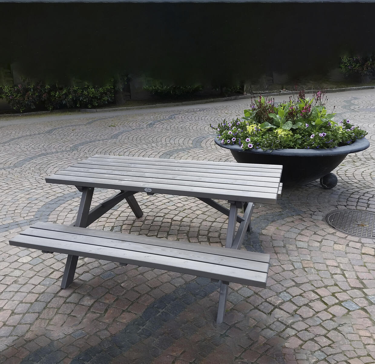 Ett rejält picknickbord helt i trä som passar utmärkt till yngre barn i förskola och skola och blir en trevlig mötesplats i utemiljön. Bänkbordet ger plats för 6 personer. Tillverkad av FSC ®-märkt norrländsk furu, 40 mm. För bästa hållbarhet rekommenderar vi att den oljade varianten oljas in regelbundet, ni finner våra skötselråd på vår webb.
