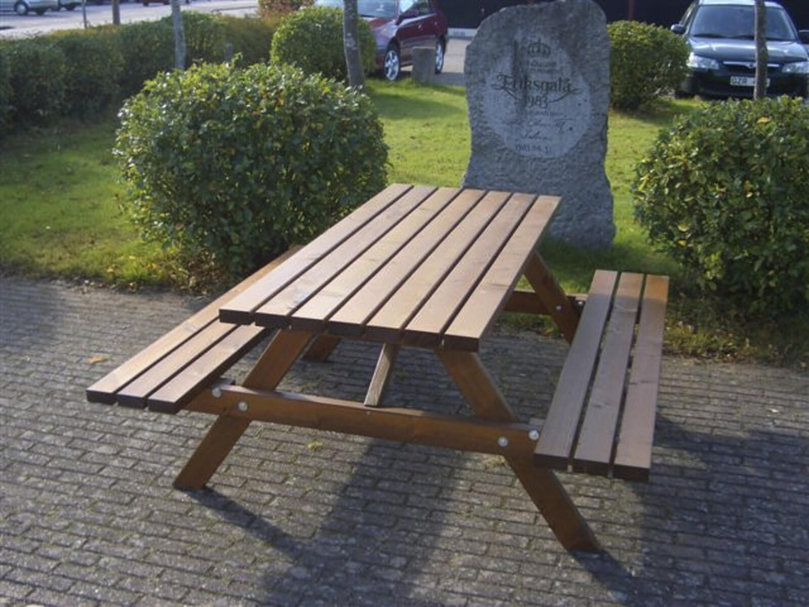 Klassiskt picknickbord helt i trä som passar utmärkt till skolbarn och blir en trevlig mötesplats i utemiljön. Bänkbordet ger plats för 6 personer. Tillverkad av FSC ®-märkt norrländsk furu, 27 mm. För bästa hållbarhet rekommenderar vi att den oljade varianten oljas in regelbundet, ni finner våra skötselråd på vår webb.