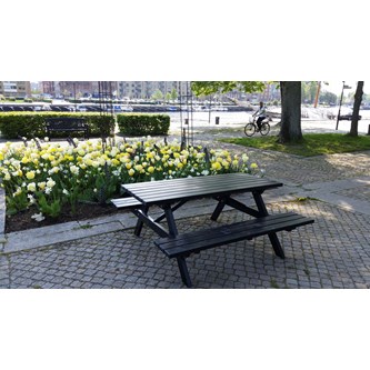 Ett rejält picknickbord helt i trä som passar utmärkt till yngre barn i förskola och skola och blir en trevlig mötesplats i utemiljön. Bänkbordet ger plats för 6 personer. Tillverkad av FSC ®-märkt norrländsk furu, 40 mm. För bästa hållbarhet rekommenderar vi att den oljade varianten oljas in regelbundet, ni finner våra skötselråd på vår webb.