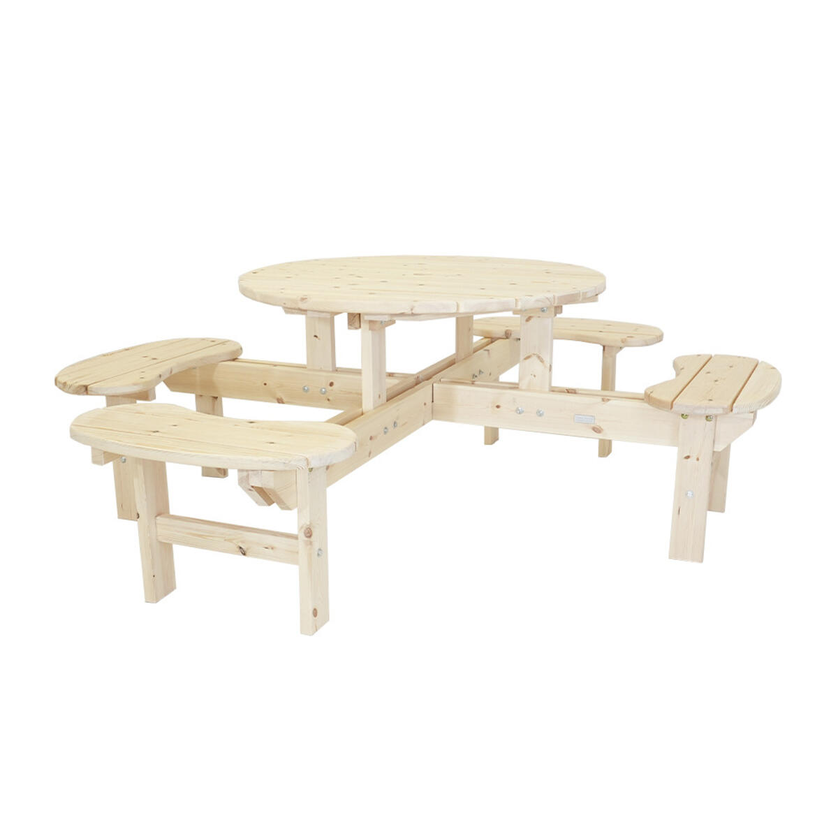 Detta runda bord ger plats för 8 personer och skapar en trevlig mötesplats mellan barn och vuna i utemiljön. Då sitsarna är avdelade blir det enkelt att komma in till bordet och att sätta sig. Varje sits har 2 ben vilket gör sitsarna väldigt stabila, även efter lång användning. Bordet är försett med ett hål för parasoll som har en diameter på 50 mm. Tillverkad av FSC ®-märkt norrländsk furu, 33mm. Levereras omonterat. För bästa hållbarhet rekommenderar vi att den oljade varianten oljas in regelbundet, ni finner våra skötselråd på vår webb.