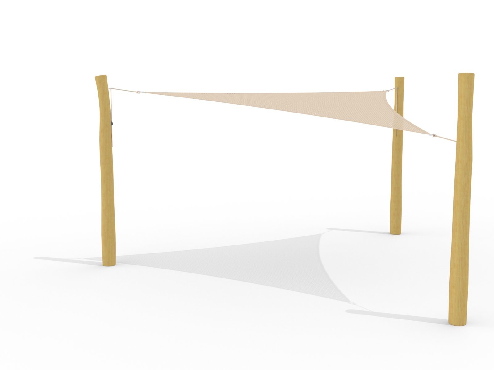 Ett komplett solsegel på förskolan eller skolan ger skön och svalkande skugga under varma dagar och skyddar mot starka UV-strålar. Ett solsegel skapar möjligheter för rumsskapade i utemiljön och förutsättningar för att kunna förlänga vistelsen utomhus. Lättare regn och vind släpps igenom duken. Duken är inte snötålig och för att förlänga livslängden rekommenderar vi att det tas ner på vintern. Duken är tillverkad av kraftig HDPE-väv som blockerar 90 % av skadliga UV-strålar. Innehåller 3 stolpar av FSC-certifierad robinia, beslag och solsegel.