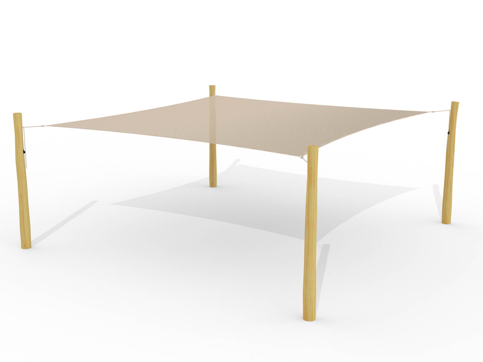 Ett komplett solsegel på förskolan eller skolan ger skön och svalkande skugga under varma dagar och skyddar mot starka UV-strålar. Ett solsegel skapar möjligheter för rumsskapade i utemiljön och förutsättningar för att kunna förlänga vistelsen utomhus. Lättare regn och vind släpps igenom duken. Duken är inte snötålig och för att förlänga livslängden rekommenderar vi att det tas ner på vintern. Duken är tillverkad av kraftig HDPE-väv som blockerar 90 % av skadliga UV-strålar. Innehåller 4 stolpar av FSC-certifierad robinia, beslag och solsegel.