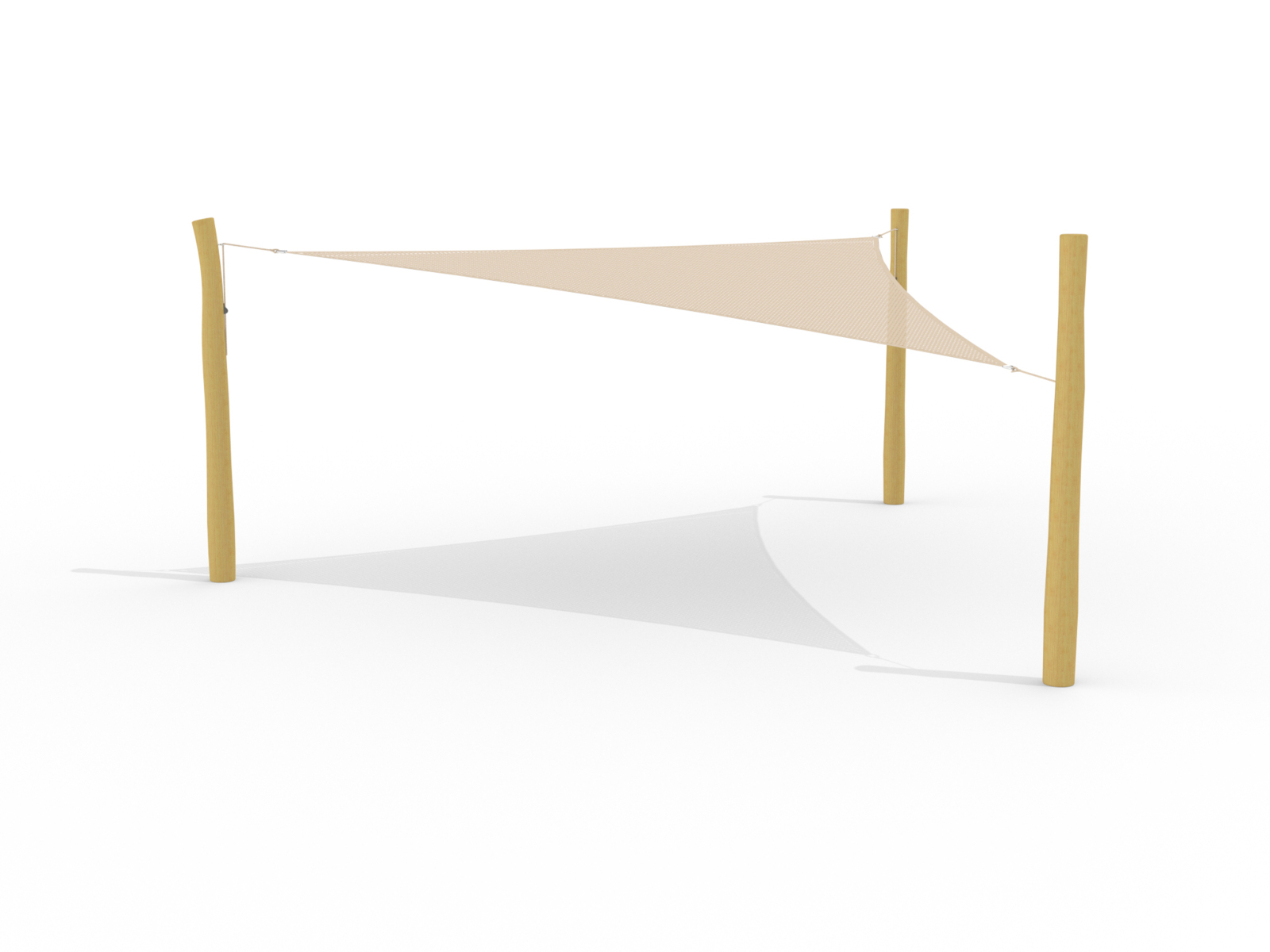 Ett komplett solsegel på förskolan eller skolan ger skön och svalkande skugga under varma dagar och skyddar mot starka UV-strålar. Ett solsegel skapar möjligheter för rumsskapade i utemiljön och förutsättningar för att kunna förlänga vistelsen utomhus. Lättare regn och vind släpps igenom duken. Duken är inte snötålig och för att förlänga livslängden rekommenderar vi att det tas ner på vintern. Duken är tillverkad av kraftig HDPE-väv som blockerar 90 % av skadliga UV-strålar. Innehåller 3 stolpar av FSC-certifierad robinia, beslag och solsegel.