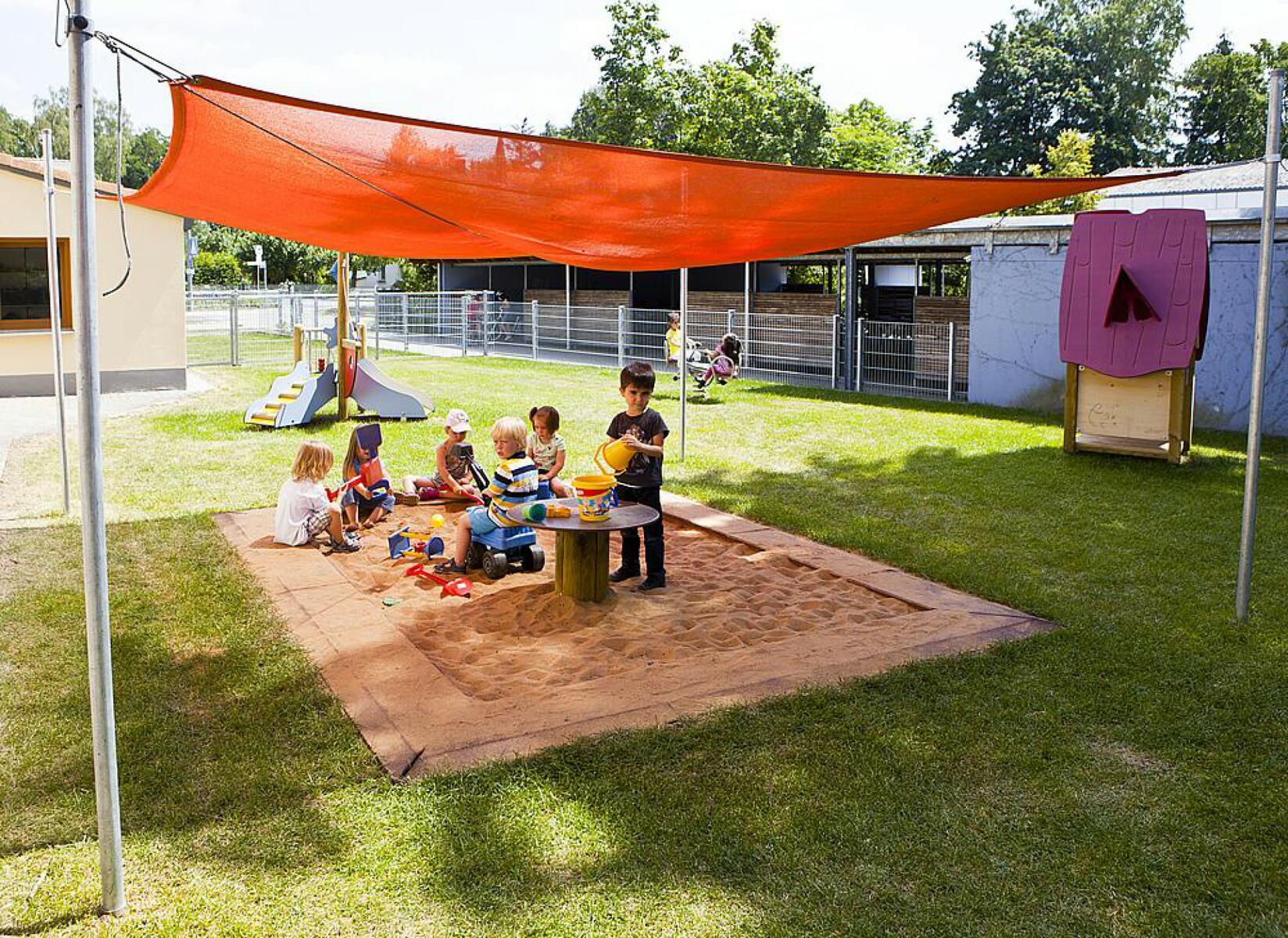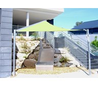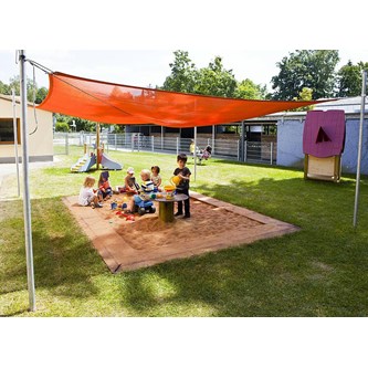 Detta höj- och sänkbara solsegel i HDPE ger både skugga och UV-skydd.