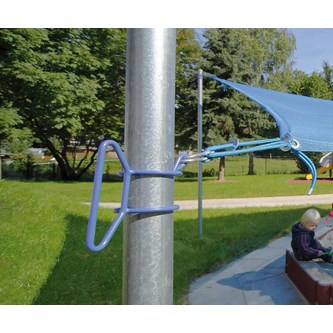 Trekantigt segel med tre stolpar. Solsegel som kan rullas samman utan att tas ned. Den unika konstruktionen gör det enkelt att justera hur mycket av seglet man önskar ha ute. Det är också enkelt att få ned bollar och annat som hamnar uppe i seglet. Själva seglet är av belagd polyesterduk och stolparna i varmgalvaniserat stål. Duken reducerar inkommande UV strålning med 86 % samtidigt som den släpper genom vind. Obs! Duken är inte vattentät! Bredd är 5 m, seglet kan dras ut till max 7 m. Levereras av Eibe