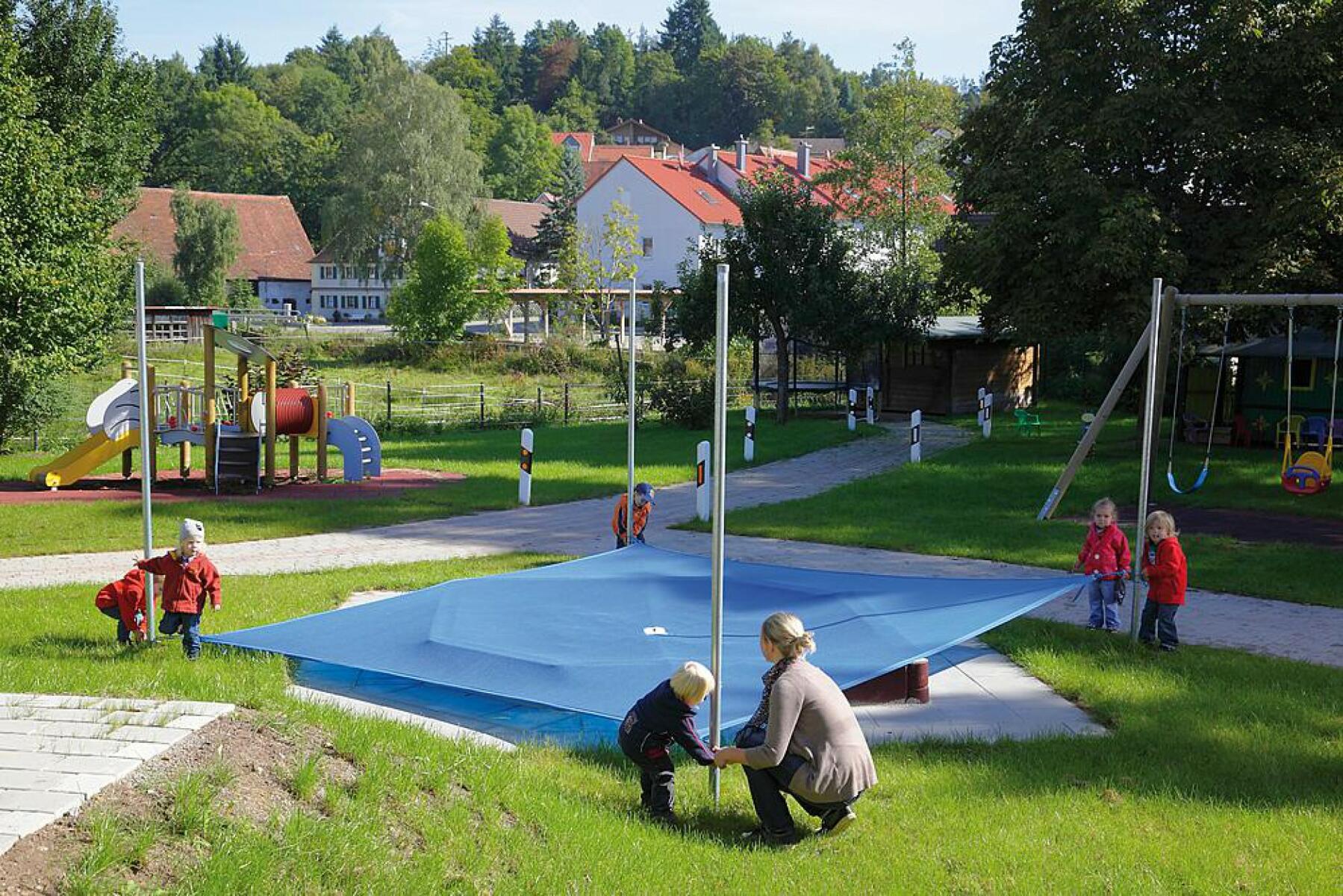 Ett komplett solsegel på förskolan eller skolan ger skön och svalkande skugga under varma dagar och skyddar mot starka UV-strålar. Ett solsegel skapar möjligheter för rumsskapade i utemiljön och förutsättningar för att kunna förlänga vistelsen utomhus. Lättare regn och vind släpps igenom duken. Duken är inte snötålig och för att förlänga livslängden rekommenderar vi att det tas ner på vintern. Duken är tillverkad av kraftig HDPE-väv som blockerar 90 % av skadliga UV-strålar. Innehåller 4 stolpar av FSC-certifierad robinia, beslag och solsegel.