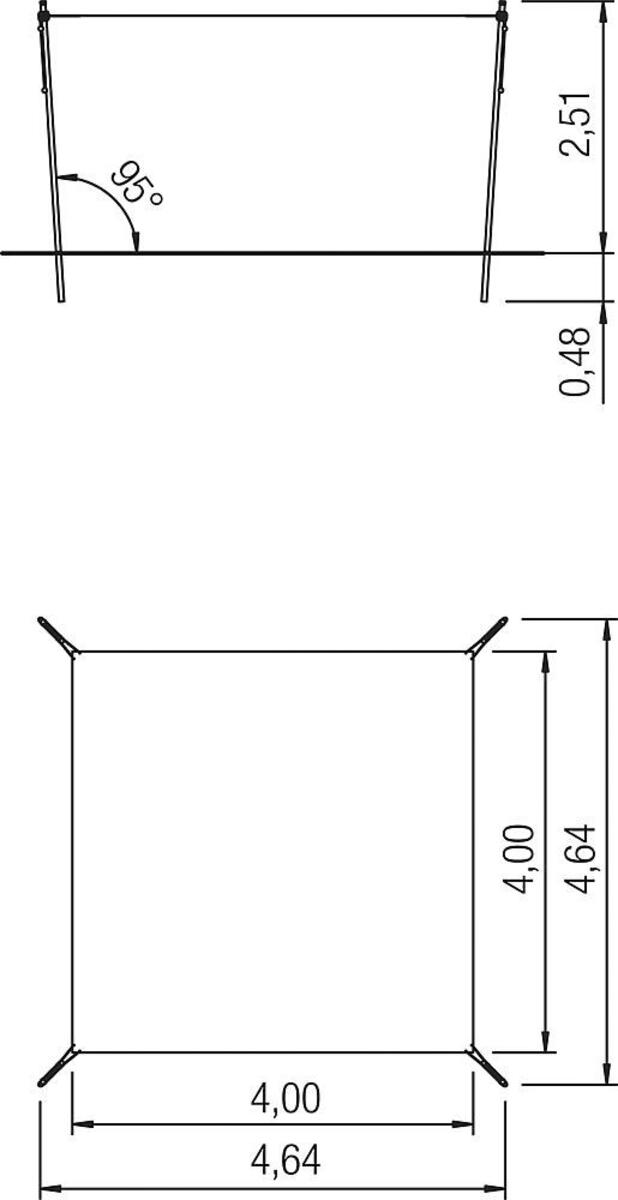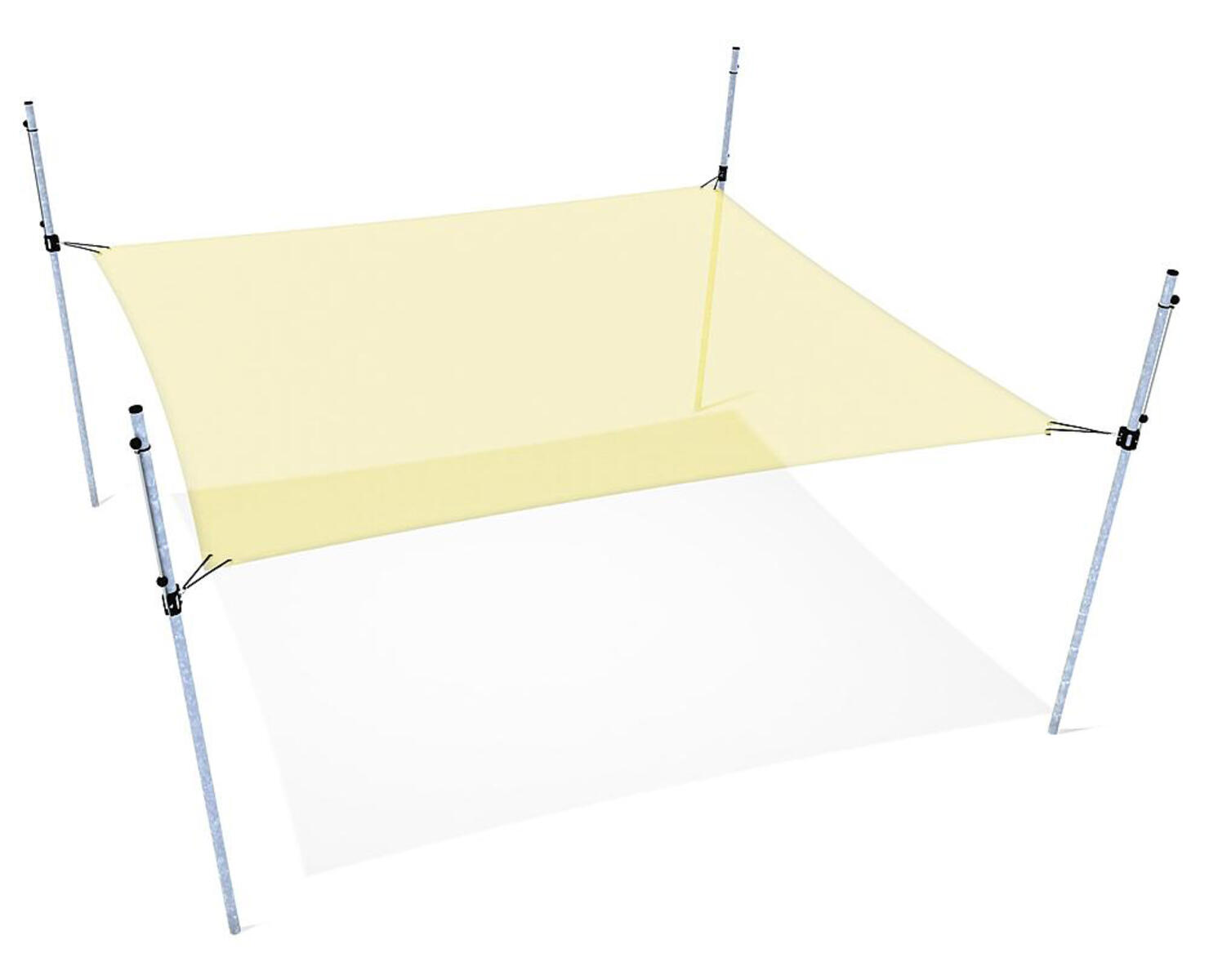 Fyrkantigt segel med fyra stolpar. Solsegel som kan rullas samman utan att tas ned. Den unika konstruktionen gör det enkelt att justera hur mycket av seglet man önskar ha ute. Det är också enkelt att få ned bollar och annat som hamnar uppe i seglet. Själva seglet är av belagd polyesterduk och stolparna i varmgalvaniserat stål. Duken reducerar inkommande UV strålning med 86 % samtidigt som den släpper genom vind. Obs! Duken är inte vattentät! Bredd är 5 m, seglet kan dras ut till max 4 m. Levereras av Eibe
