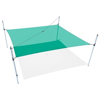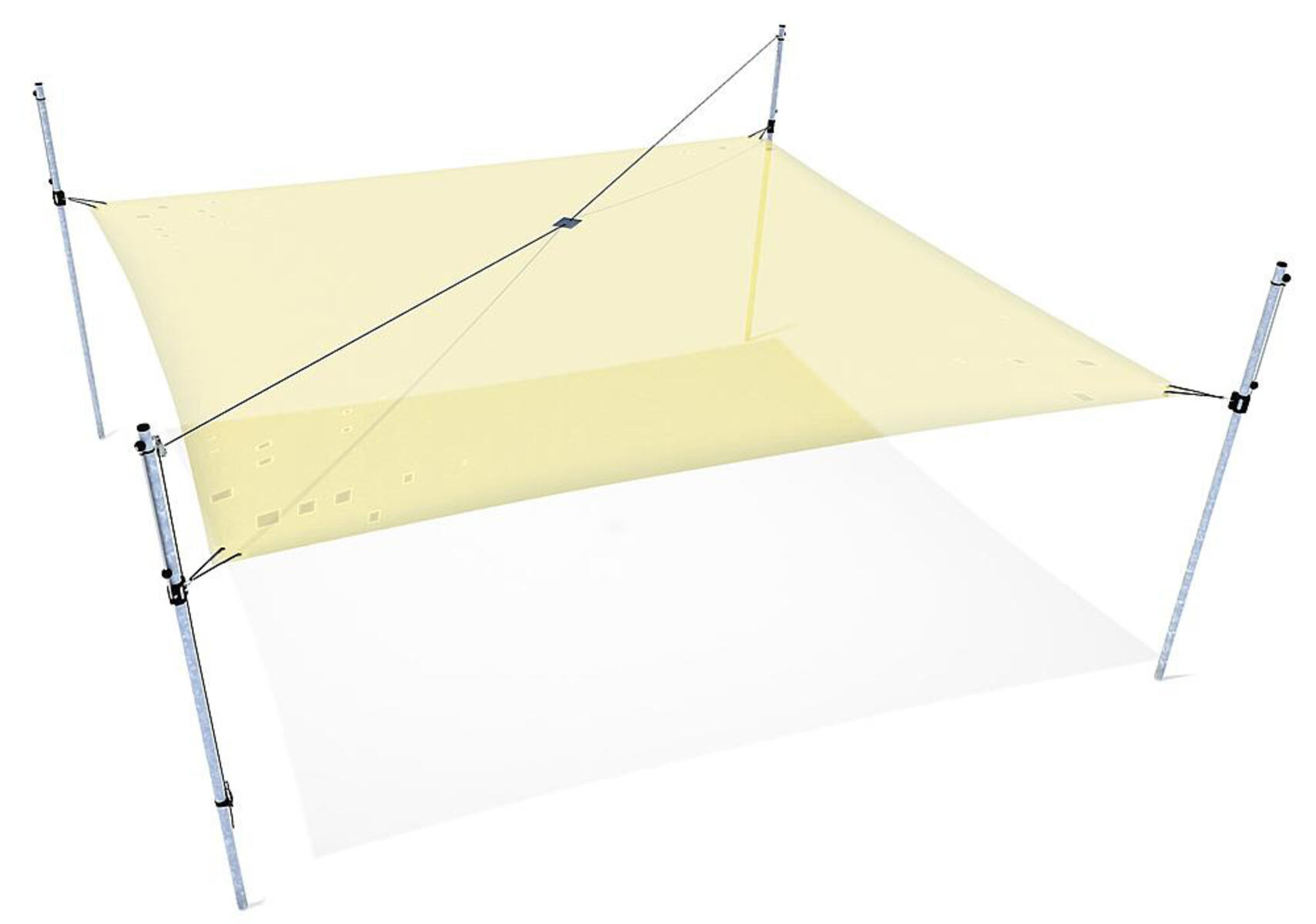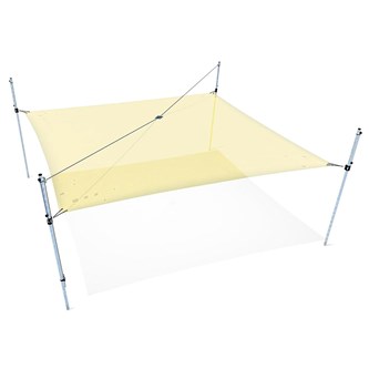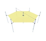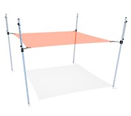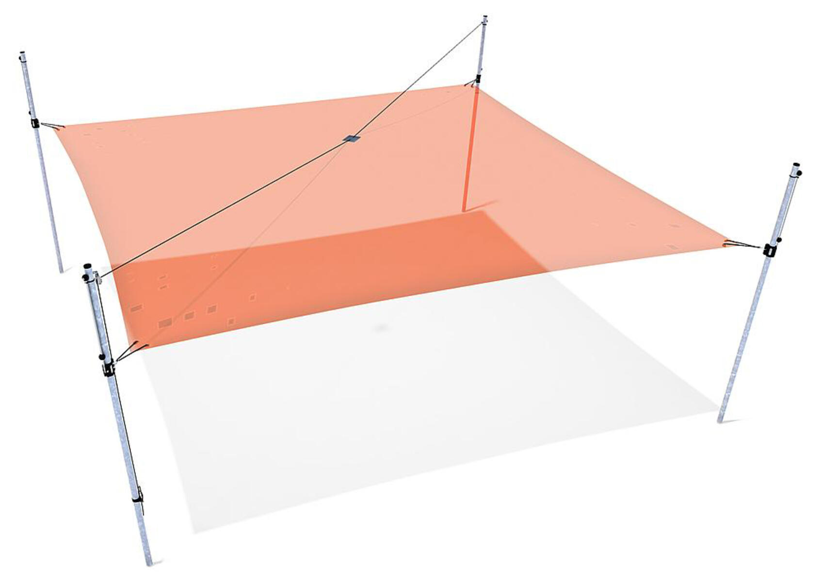Fyrkantigt segel med fyra stolpar. Solsegel som kan rullas samman utan att tas ned. Den unika konstruktionen gör det enkelt att justera hur mycket av seglet man önskar ha ute. Det är också enkelt att få ned bollar och annat som hamnar uppe i seglet. Själva seglet är av belagd polyesterduk och stolparna i varmgalvaniserat stål. Duken reducerar inkommande UV strålning med 86 % samtidigt som den släpper genom vind. Obs! Duken är inte vattentät! Bredd är 6 m, seglet kan dras ut till max 5 m. Levereras av Eibe