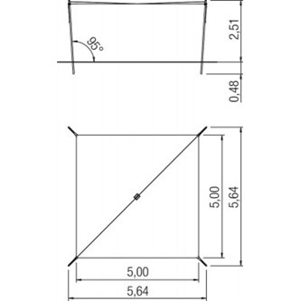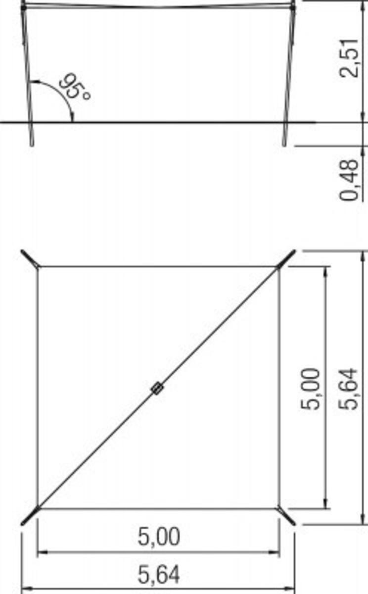 Fyrkantigt segel med fyra stolpar. Solsegel som kan rullas samman utan att tas ned. Den unika konstruktionen gör det enkelt att justera hur mycket av seglet man önskar ha ute. Det är också enkelt att få ned bollar och annat som hamnar uppe i seglet. Själva seglet är av belagd polyesterduk och stolparna i varmgalvaniserat stål. Duken reducerar inkommande UV strålning med 86 % samtidigt som den släpper genom vind. Obs! Duken är inte vattentät! Bredd är 5 m, seglet kan dras ut till max 4 m. Levereras av Eibe