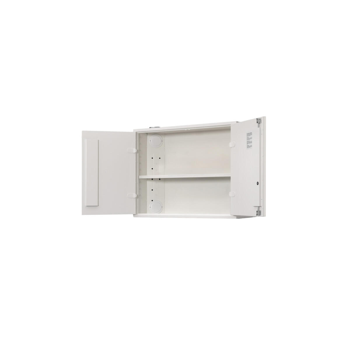 Brandisolerat kemikalieskåp för förvaring av brandfarliga och giftiga kemikalier. Avsett för väggmontering. Tillverkat av kraftig stålplåt med dörrar, gavlar, tak och botten i sandwichkonstruktion med brandisolering enligt Euroclass A1. Infällda dörrar med förstärkningsprofil och handtag med brytpunkt för ökad säkerhet. En svetsad spärr på gångjärnssidan förhindrar uppbrytning även om gångjärnen tas bort. Skåpet levereras med kraftig espanjolettlåsning och ASSA‑cylinderlås med två nycklar (ej monterat vid leverans). 1 flyttbart hyllplan med uppvikta kanter och slutna hörn för att förhindra avrinning vid spill. Hyllkapacitet: 70 kg jämn belastning. Skåpet är försett med ventilationskanal med utsugspunkter som gör att mellanrummet mellan alla hyllplan ventileras. Frånluftsstos på skåpets tak (ø 100 mm). Inv. mått: H73xB92,5xD27,5 cm. Skåpet är avsett för förvaring av mindre mängd brandfarlig vara med flampunkt 30 °C eller lägre i brandcellen. Då större mängder brandfarlig vara hanteras, rekommenderas istället brandklassade kemikalieskåp F30. Skåpet är testat enligt EN 16121:2013, EN 14073-2,EN 14074:2004 samt ISO 7170:2005. Som tillbehör finns uppsamlingstråg, beställs på separat artikelnummer.