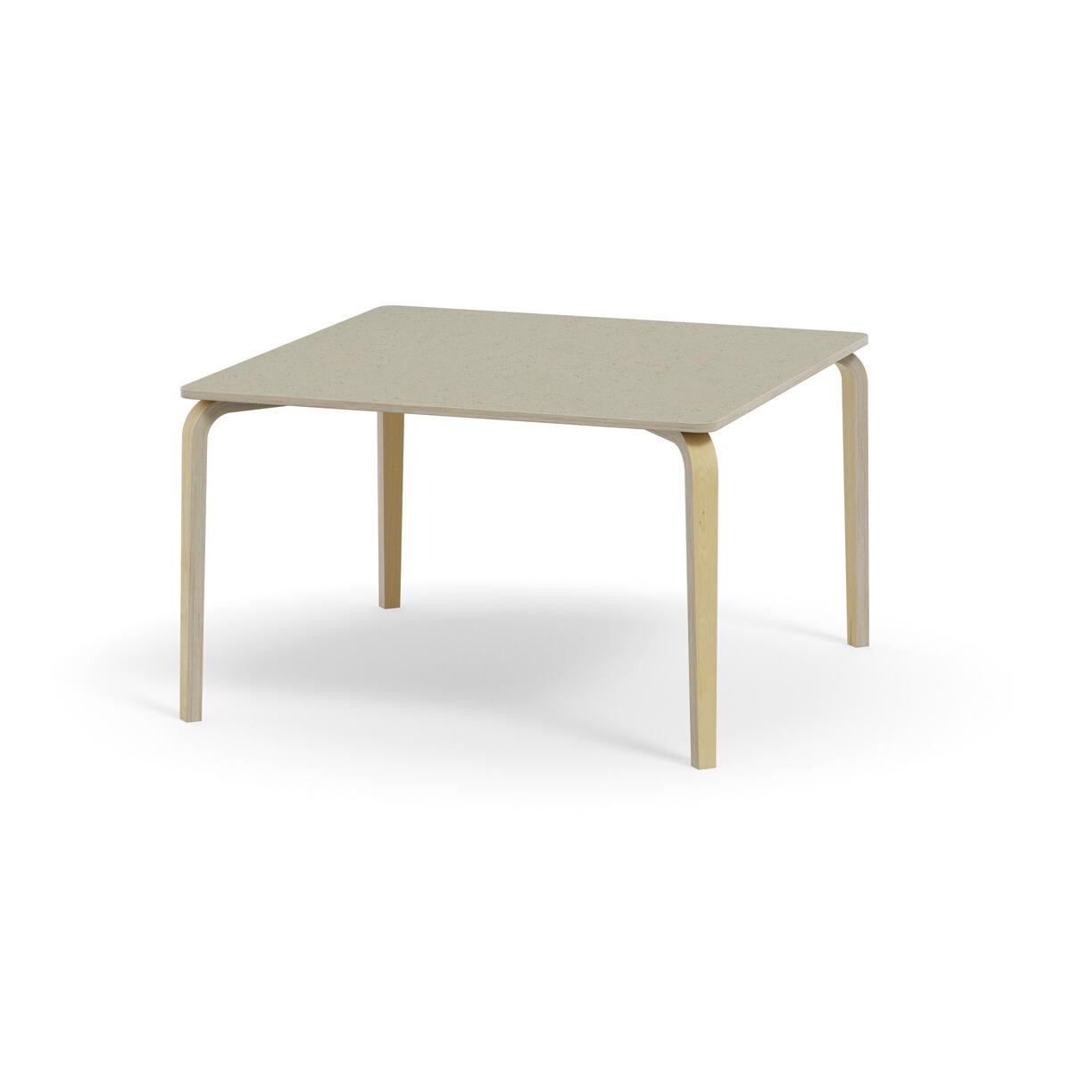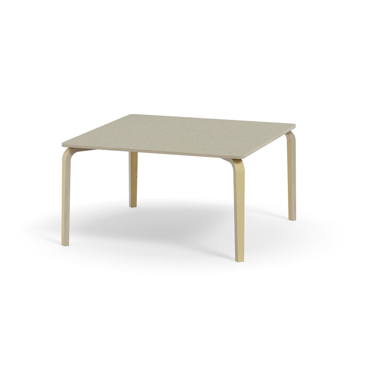 Arcus är en bordsserie utan ram på bordsskivan vilket skapar mer utrymme för benen. Ljuddämpande bordsskiva belagd med högtryckslaminat. Hörnradie på 40 mm. Bordsben i björkplywood med en vinkel utåt och en avsmalande form neråt längs benet.