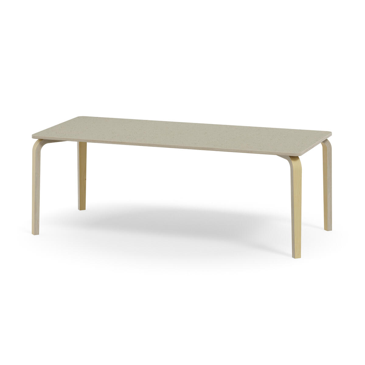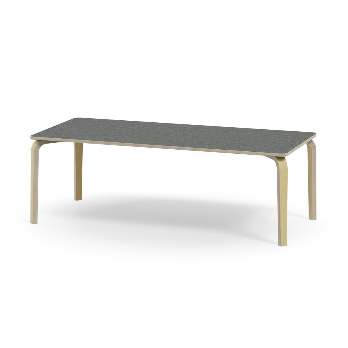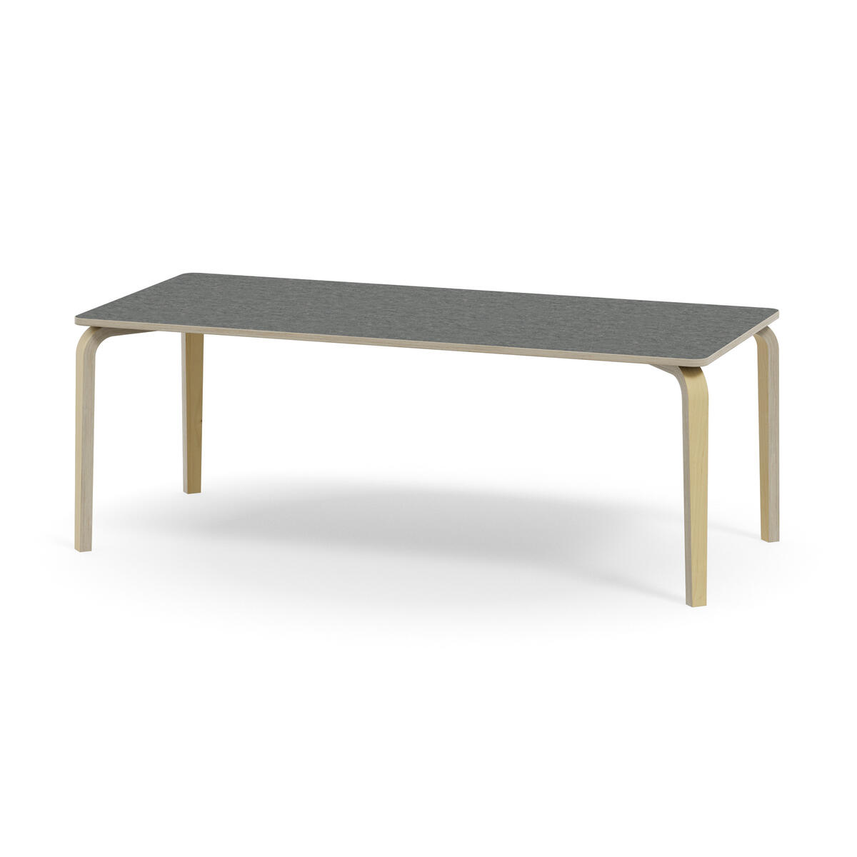Arcus är en bordsserie utan ram på bordsskivan vilket skapar mer utrymme för benen. Ljuddämpande bordsskiva belagd med högtryckslaminat. Hörnradie på 40 mm. Bordsben i björkplywood med en vinkel utåt och en avsmalande form neråt längs benet.