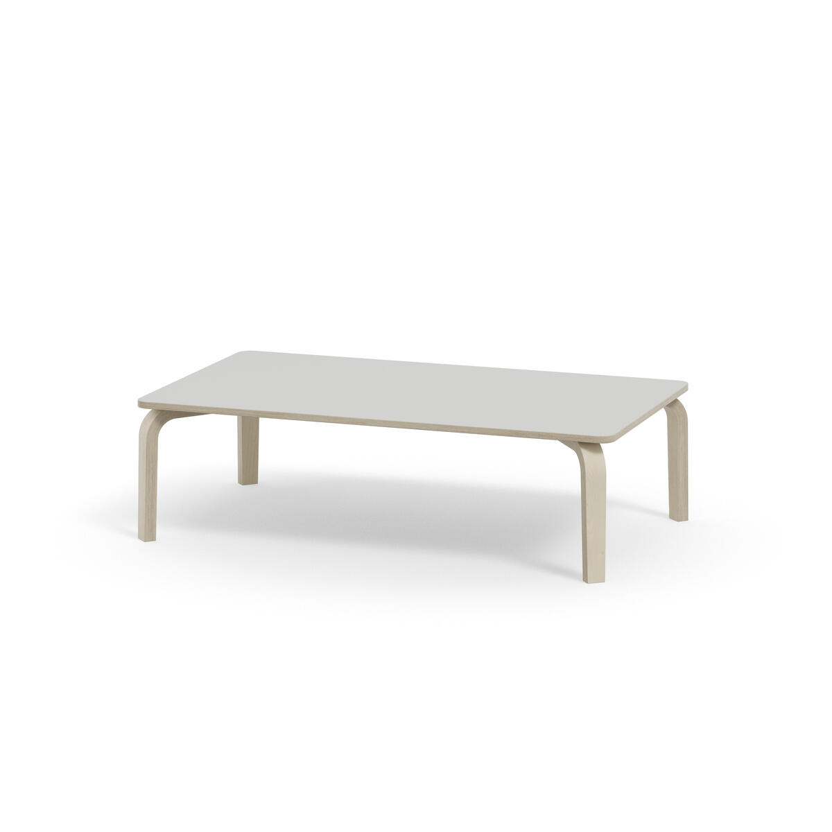 Arcus är en bordsserie utan ram på bordsskivan vilket skapar mer utrymme för benen. Ljuddämpande bordsskiva belagd med högtryckslaminat. Hörnradie på 40 mm. Bordsben i björkplywood med en vinkel utåt och en avsmalande form neråt längs benet.