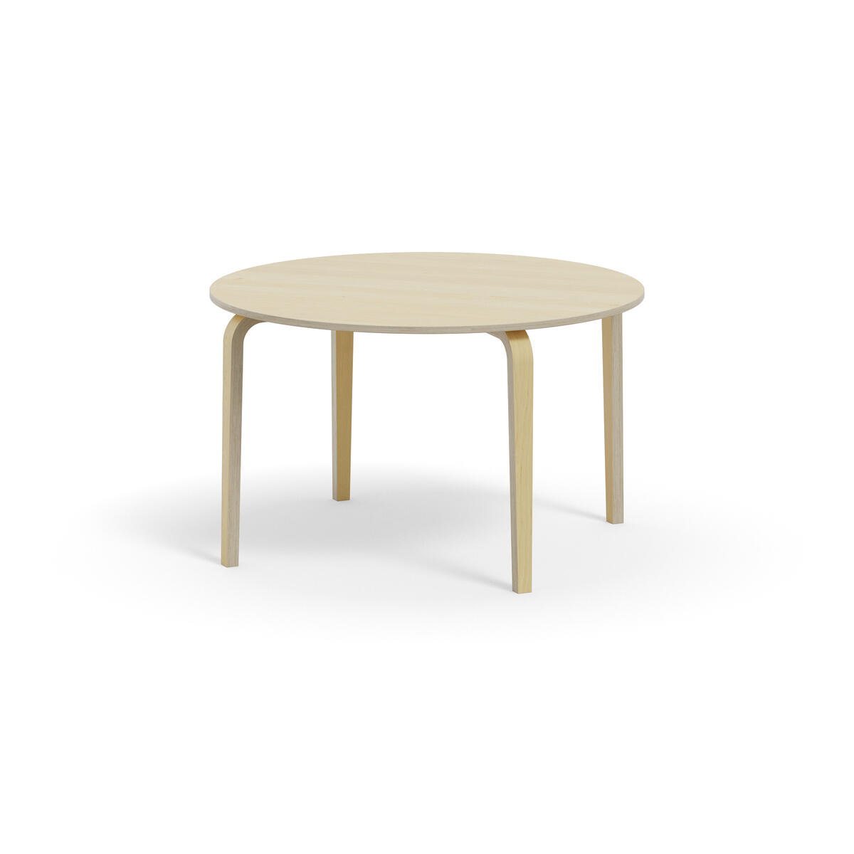 Arcus är en bordsserie utan ram på bordsskivan vilket skapar mer utrymme för benen. Ljuddämpande bordsskiva belagd med högtryckslaminat. Hörnradie på 40 mm. Bordsben i björkplywood med en vinkel utåt och en avsmalande form neråt längs benet.
