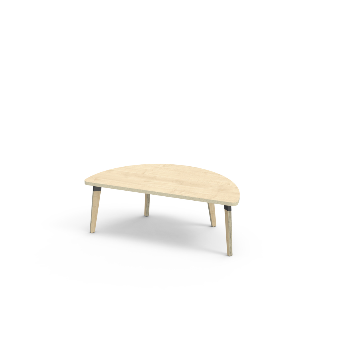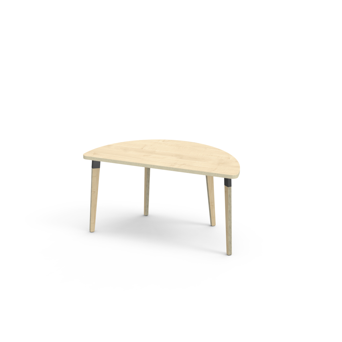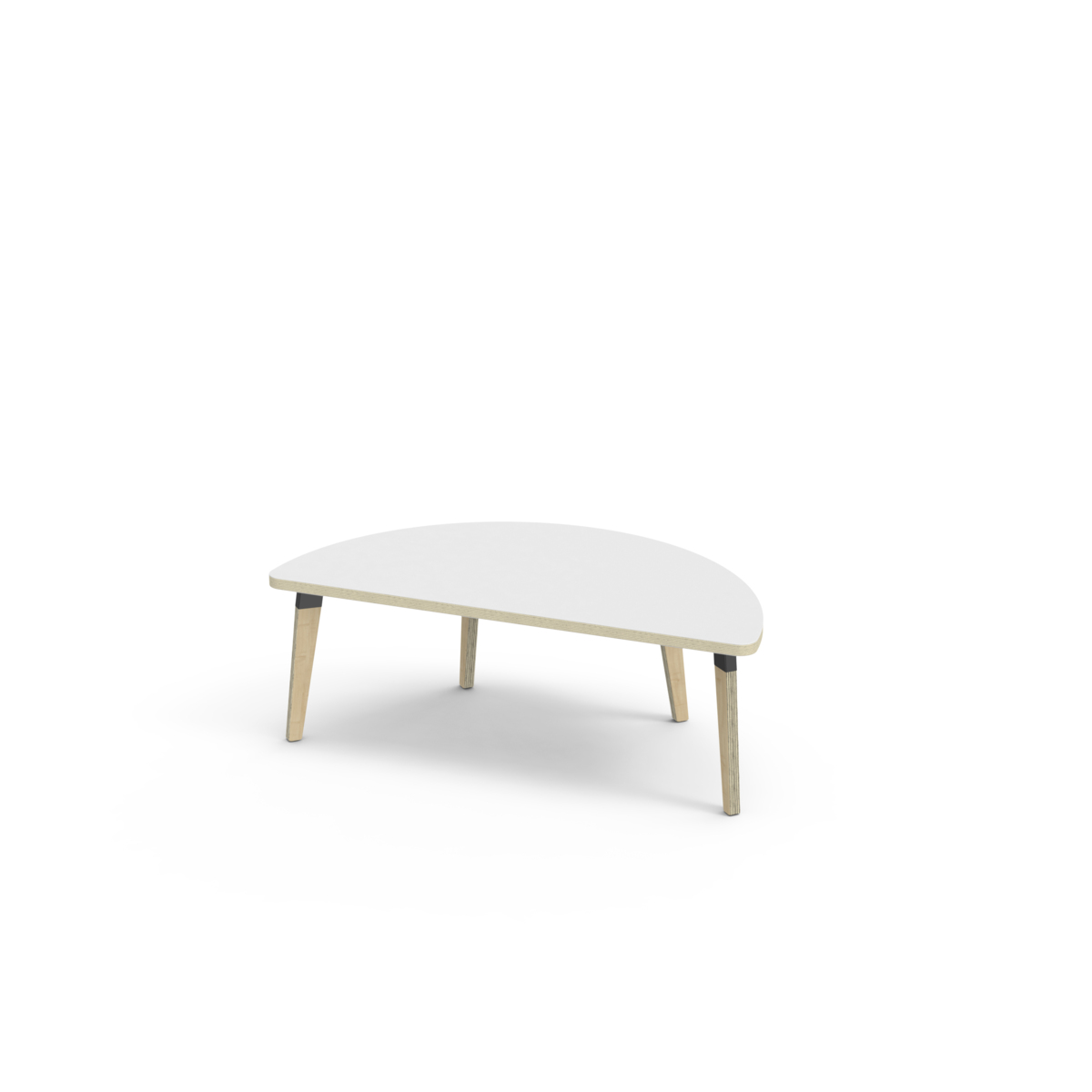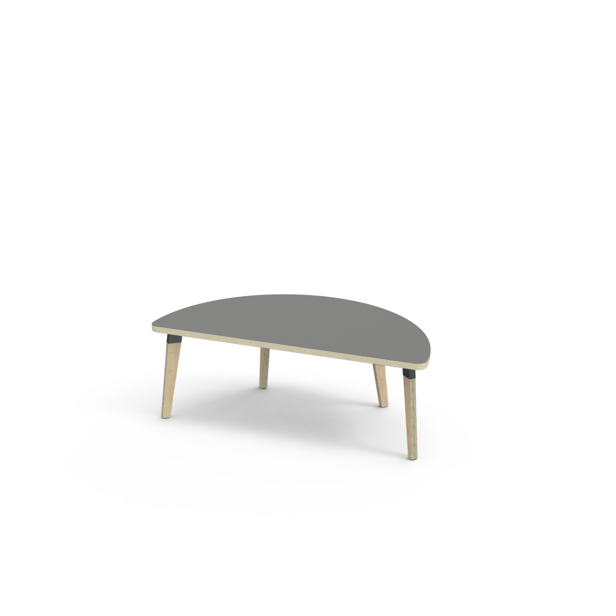 Bordsskiva belagd med akustik linoleum, vilket ger en mjuk och behaglig yta samtidigt som det bidrar till en bättre ljudmiljö. Med en hörnradie på 40 mm får bordet en modern och stilren design. Benen har en rektangulär form och är tillverkade av klarlackad björkplywood som är monterade i en robust vit metallhylsa. Denna konstruktion garanterar både stabilitet och hållbarhet. Benen är något snett vinklade ut mot bordsskivans hörn. Monteringen är enkel och smidig – du behöver bara fästa metallhylsorna i de förberedda fästpunkterna i bordsskivan.