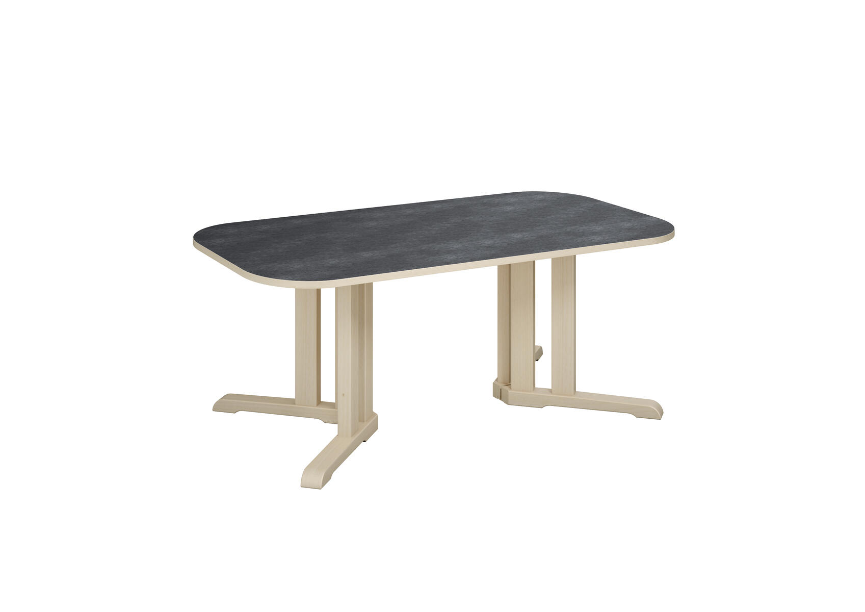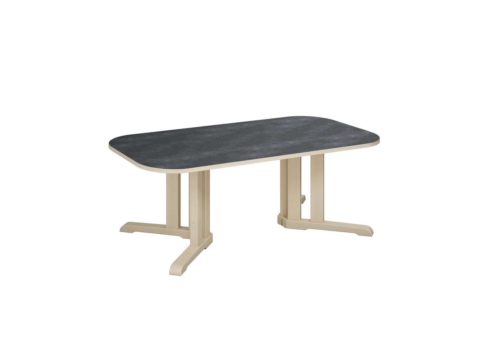 Tack vare den smarta designen på stativet ges det plats för fler barn runt bordet. Ljuddämpande skiva belagd med ett tåligt högtryckslaminat. Stativ i klarlackerad, massiv björk. Avrundade hörn.