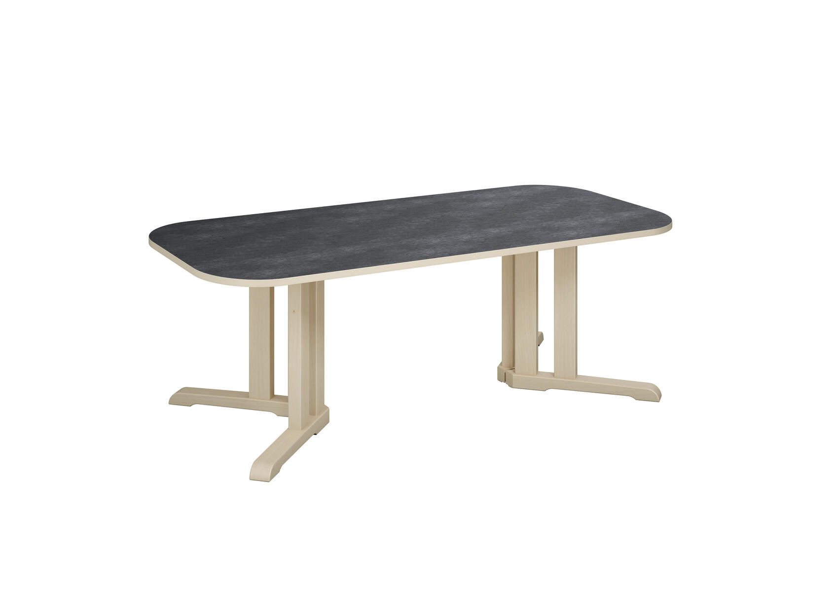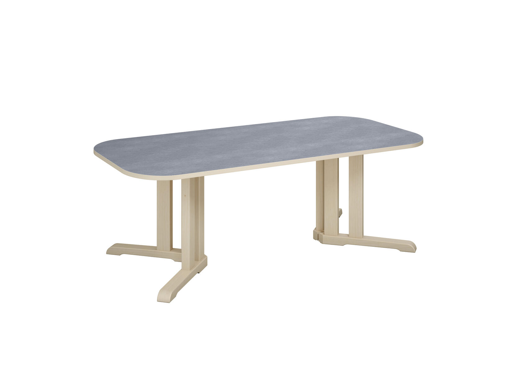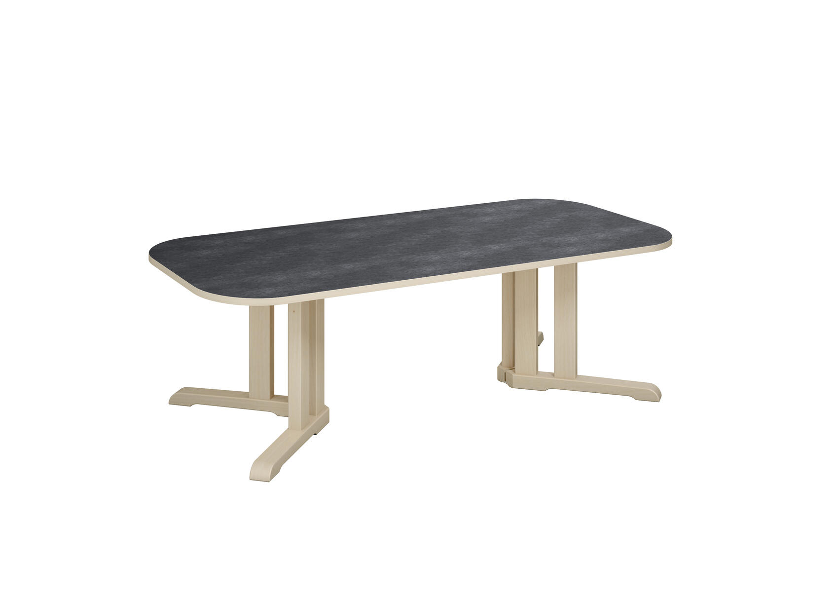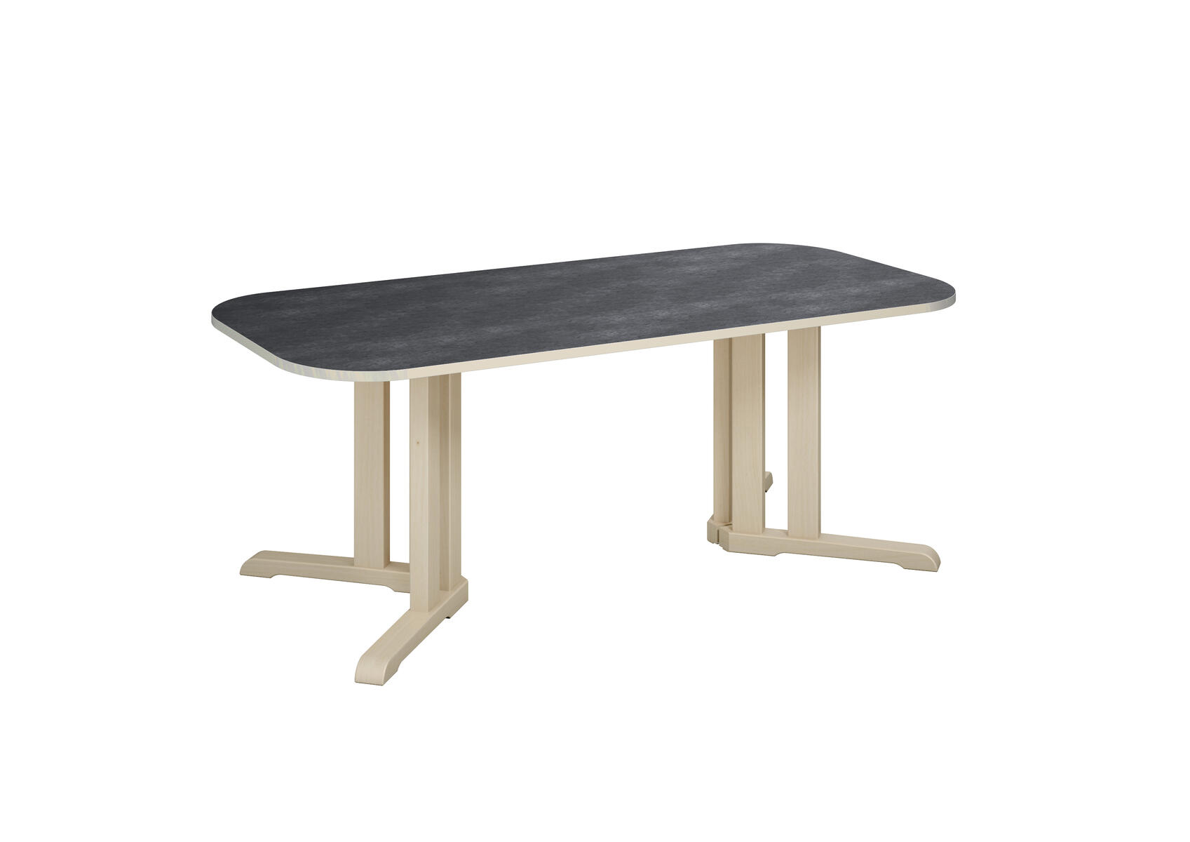 Tack vare den smarta designen på stativet ges det plats för fler barn runt bordet. Ljuddämpande skiva belagd med ett tåligt högtryckslaminat. Stativ i klarlackerad, massiv björk. Avrundade hörn.