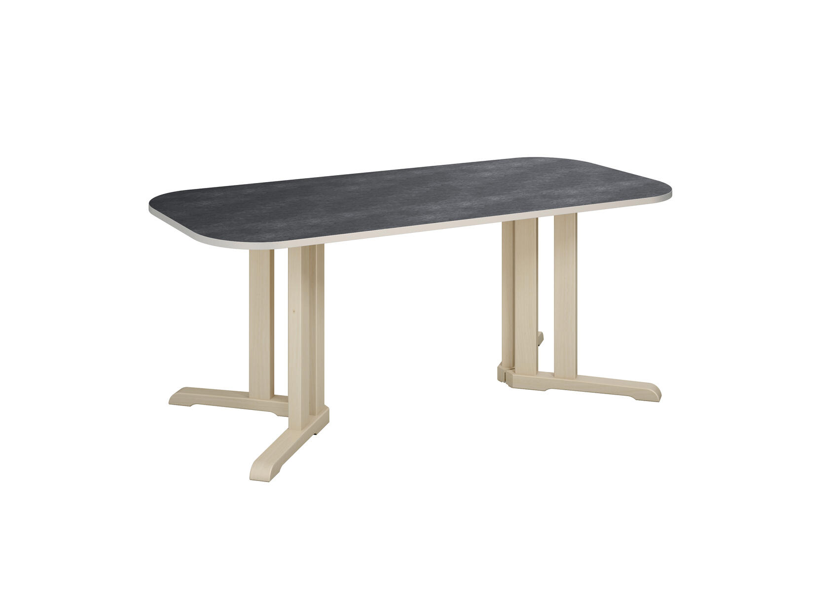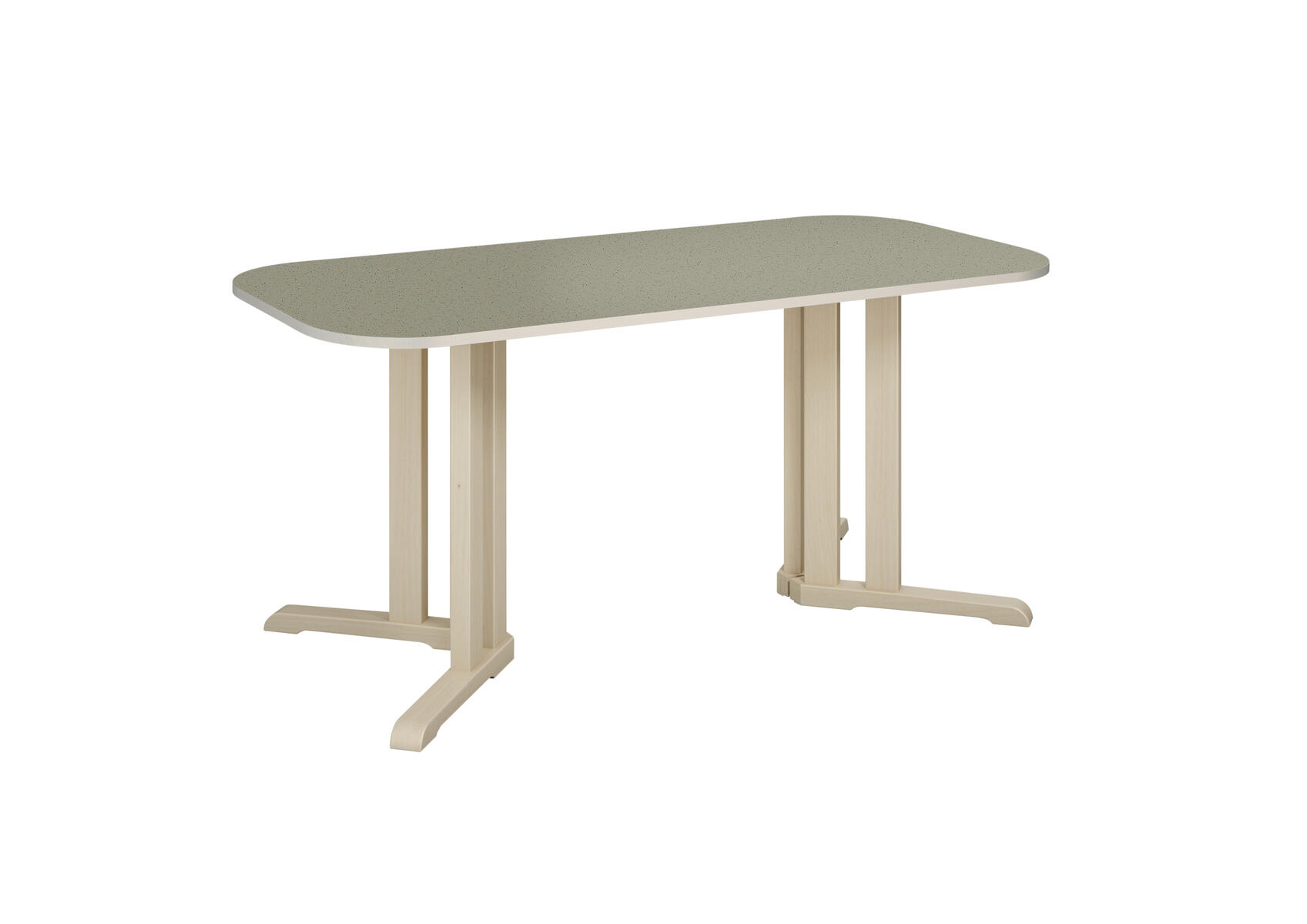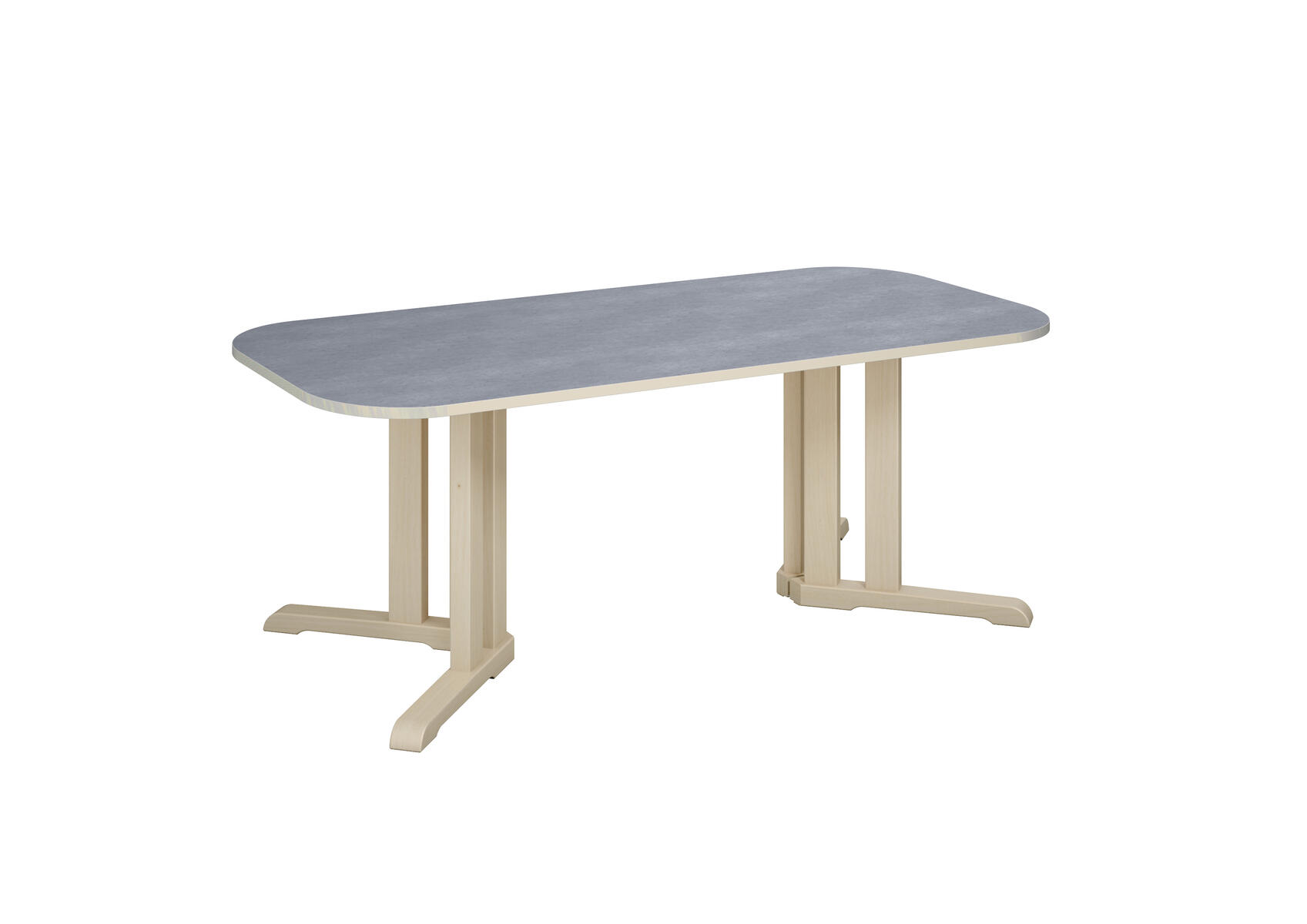 Tack vare den smarta designen på stativet ges det plats för fler barn runt bordet. Ljuddämpande skiva belagd med ett tåligt högtryckslaminat. Stativ i klarlackerad, massiv björk. Avrundade hörn.