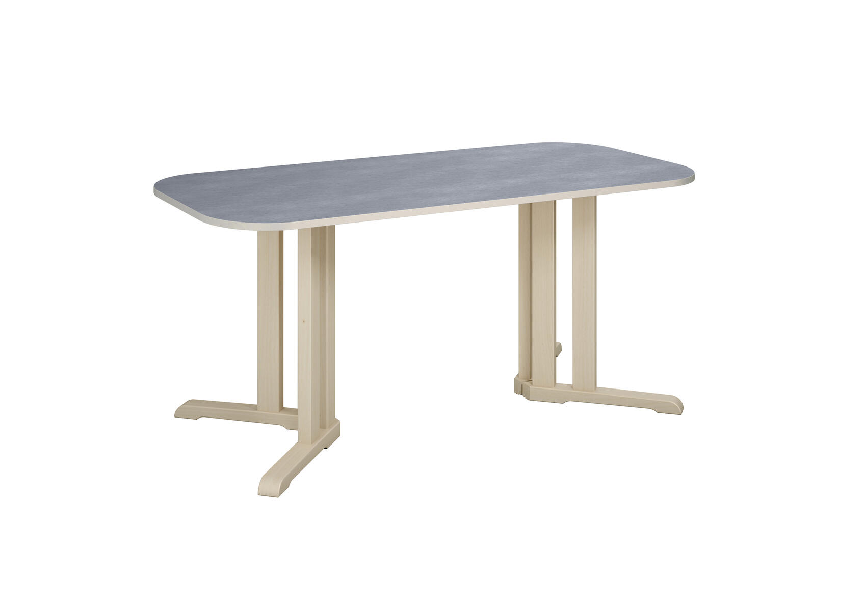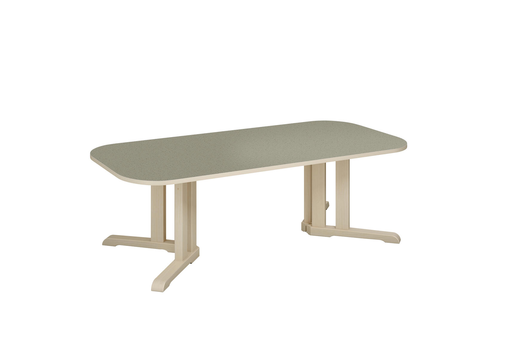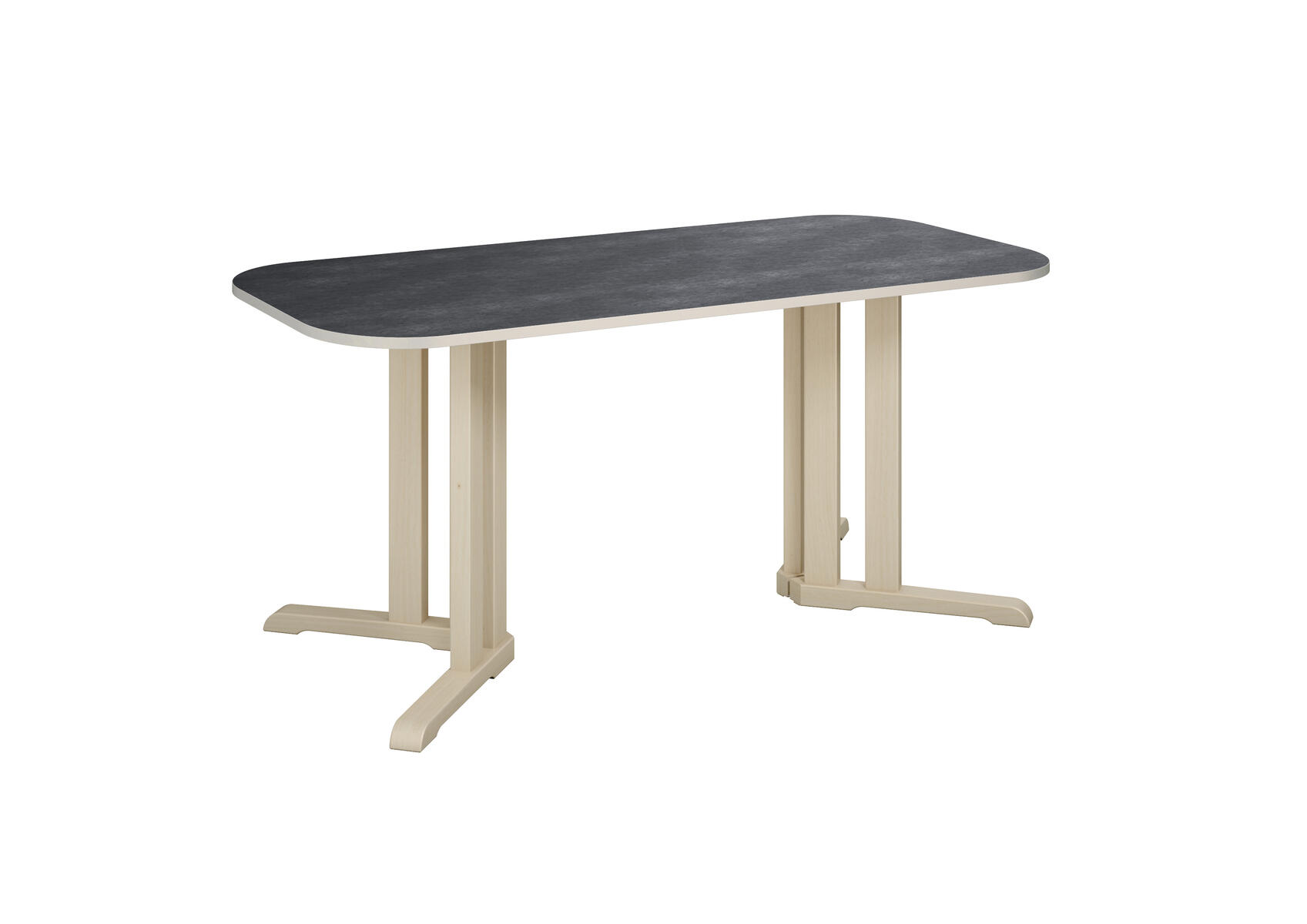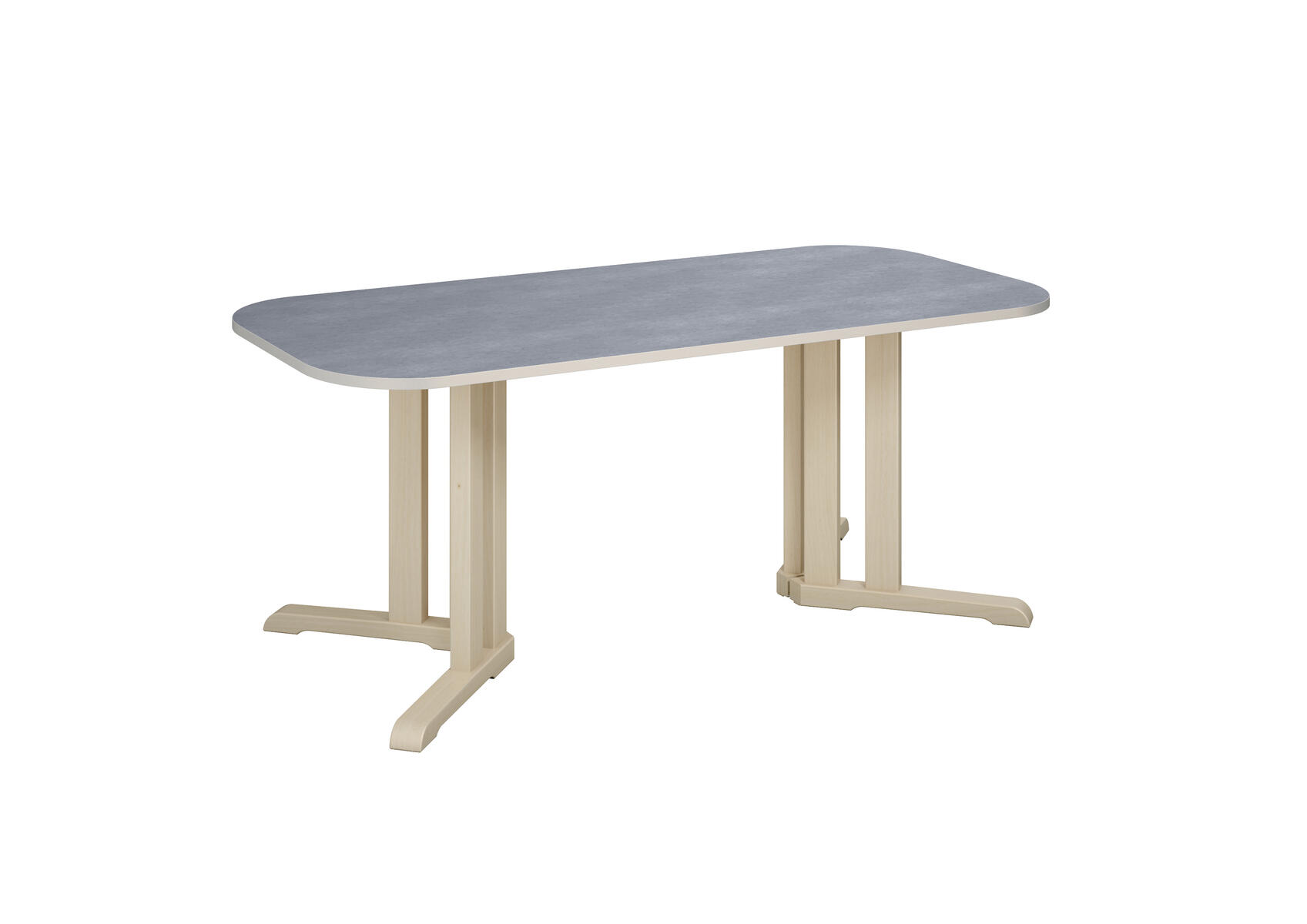 Tack vare den smarta designen på stativet ges det plats för fler barn runt bordet. Ljuddämpande skiva belagd med ett tåligt högtryckslaminat. Stativ i klarlackerad, massiv björk. Avrundade hörn.