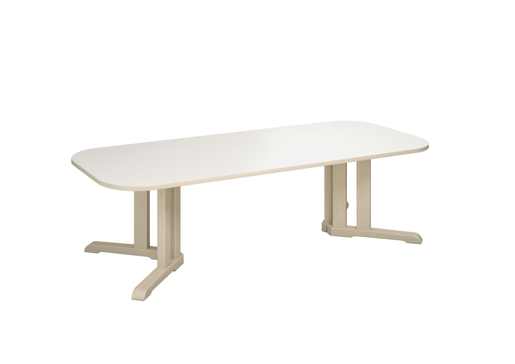 Tack vare den smarta designen på stativet ges det plats för fler barn runt bordet. Ljuddämpande skiva belagd med ett tåligt högtryckslaminat. Stativ i klarlackerad, massiv björk. Avrundade hörn.