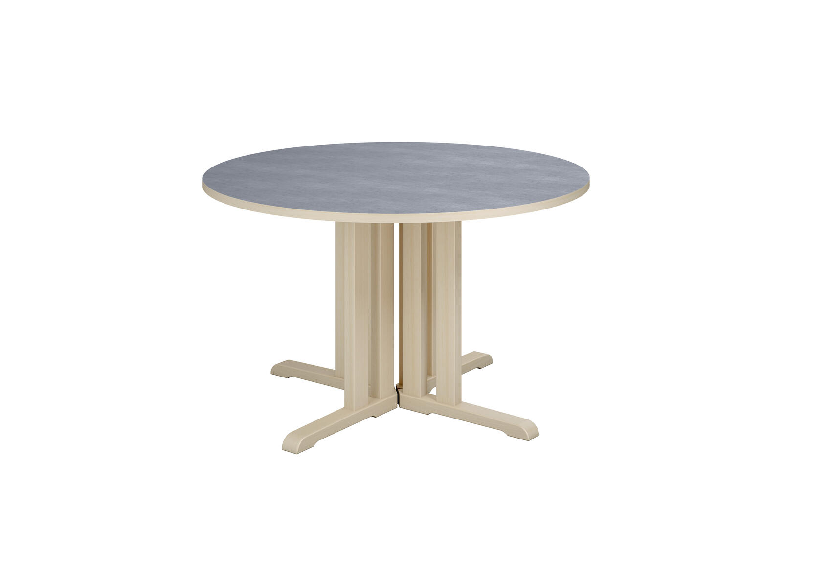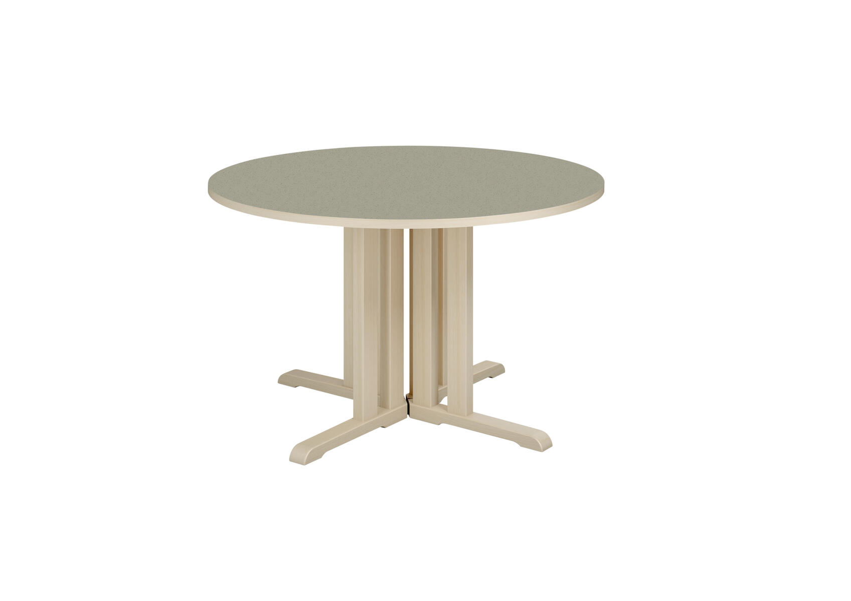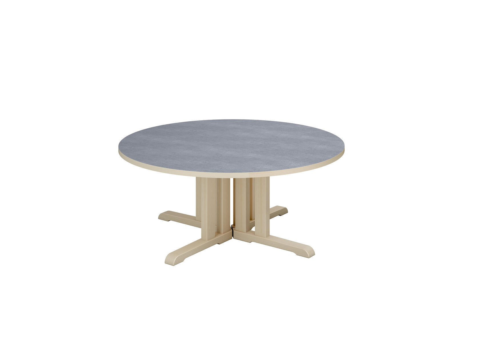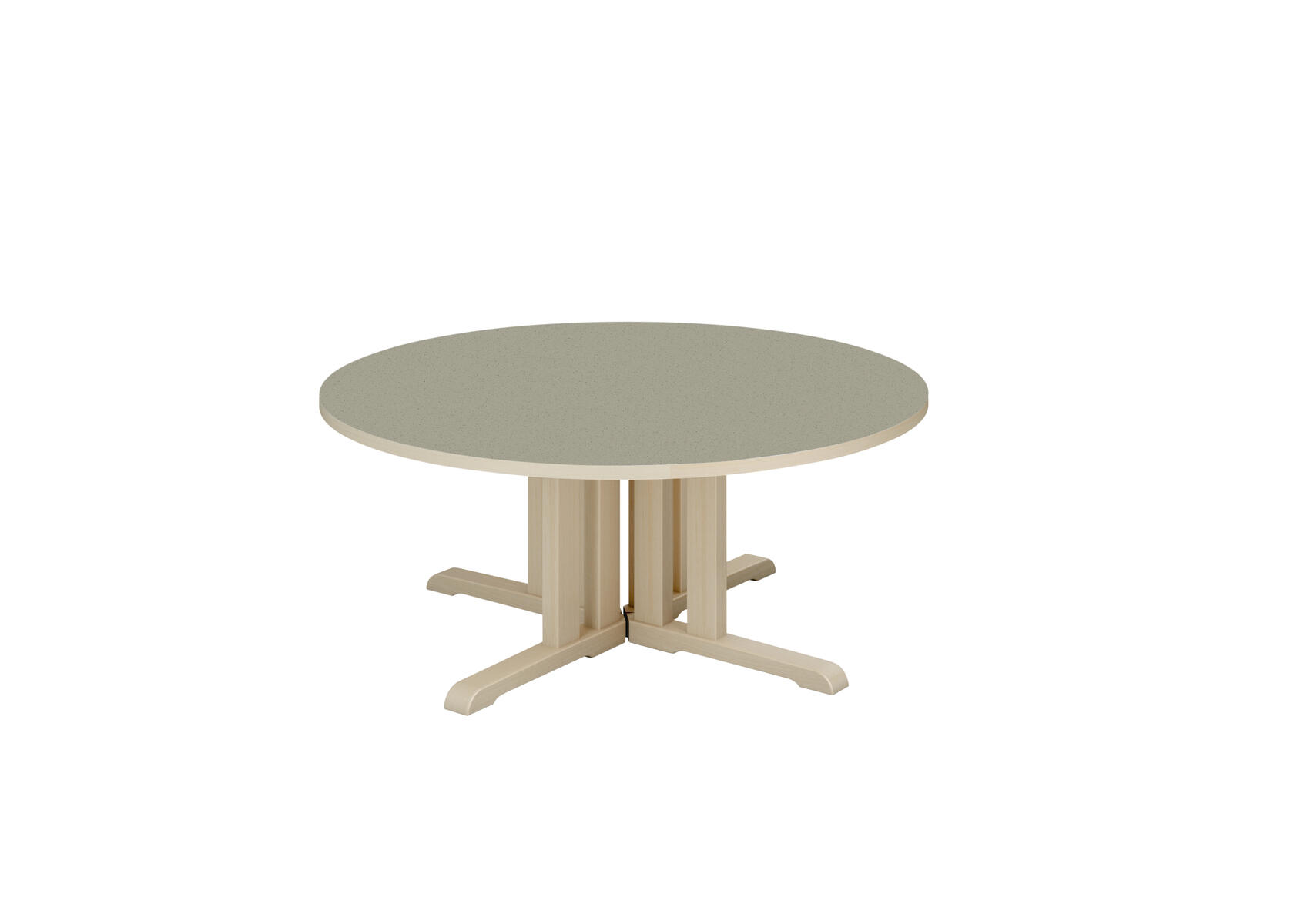 Tack vare den smarta designen på stativet ges det plats för fler barn runt bordet. Skiva belagd med ljuddämpande linoleum, som är ett tåligt och ljuddämpande naturmaterial helt fritt från PVC och ftalater. Stativ i klarlackerad, massiv björk.