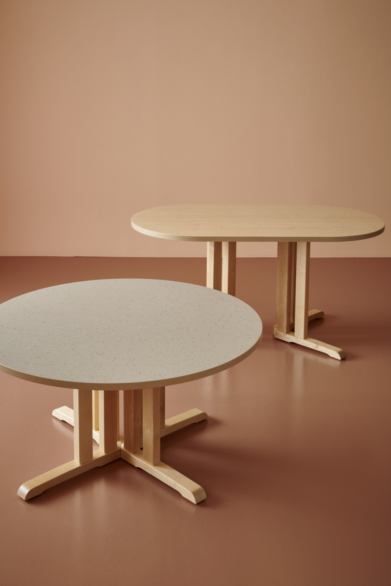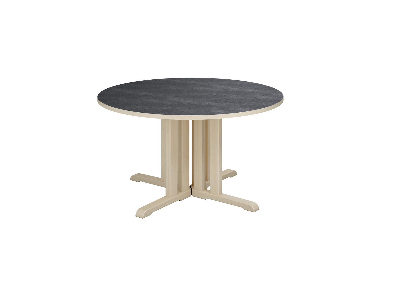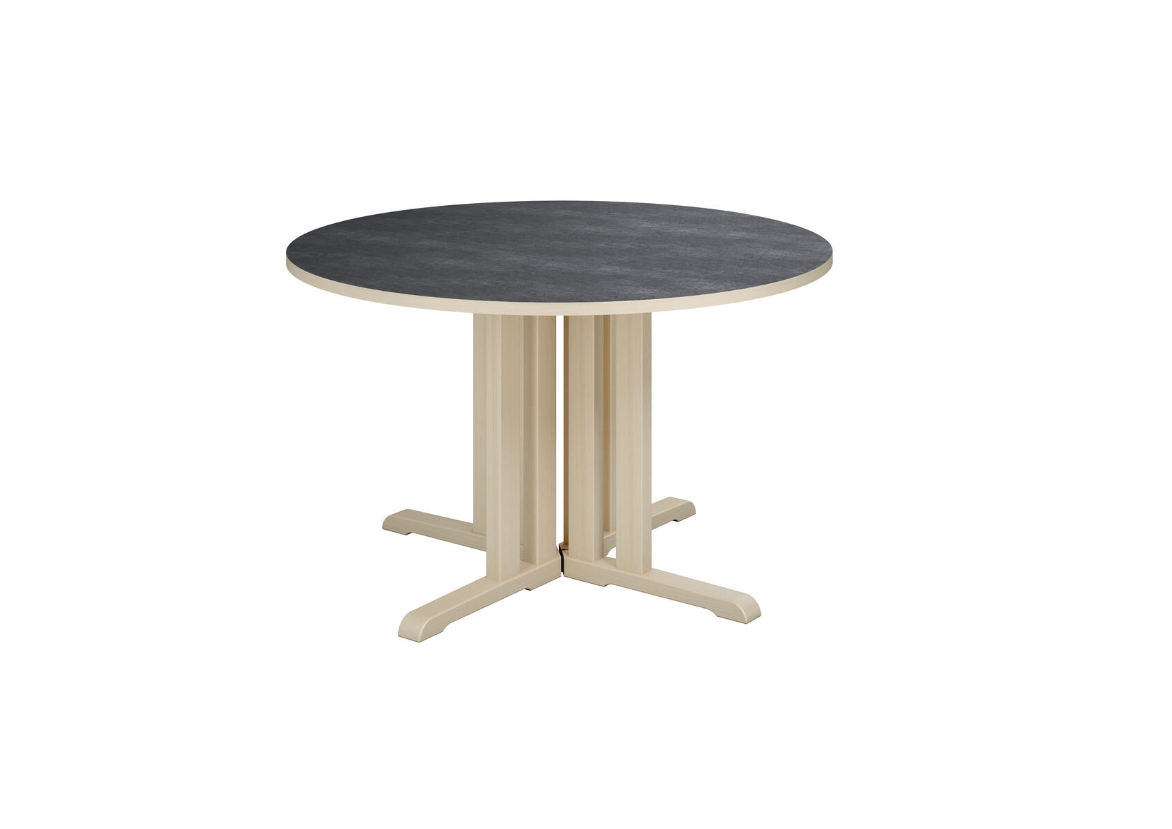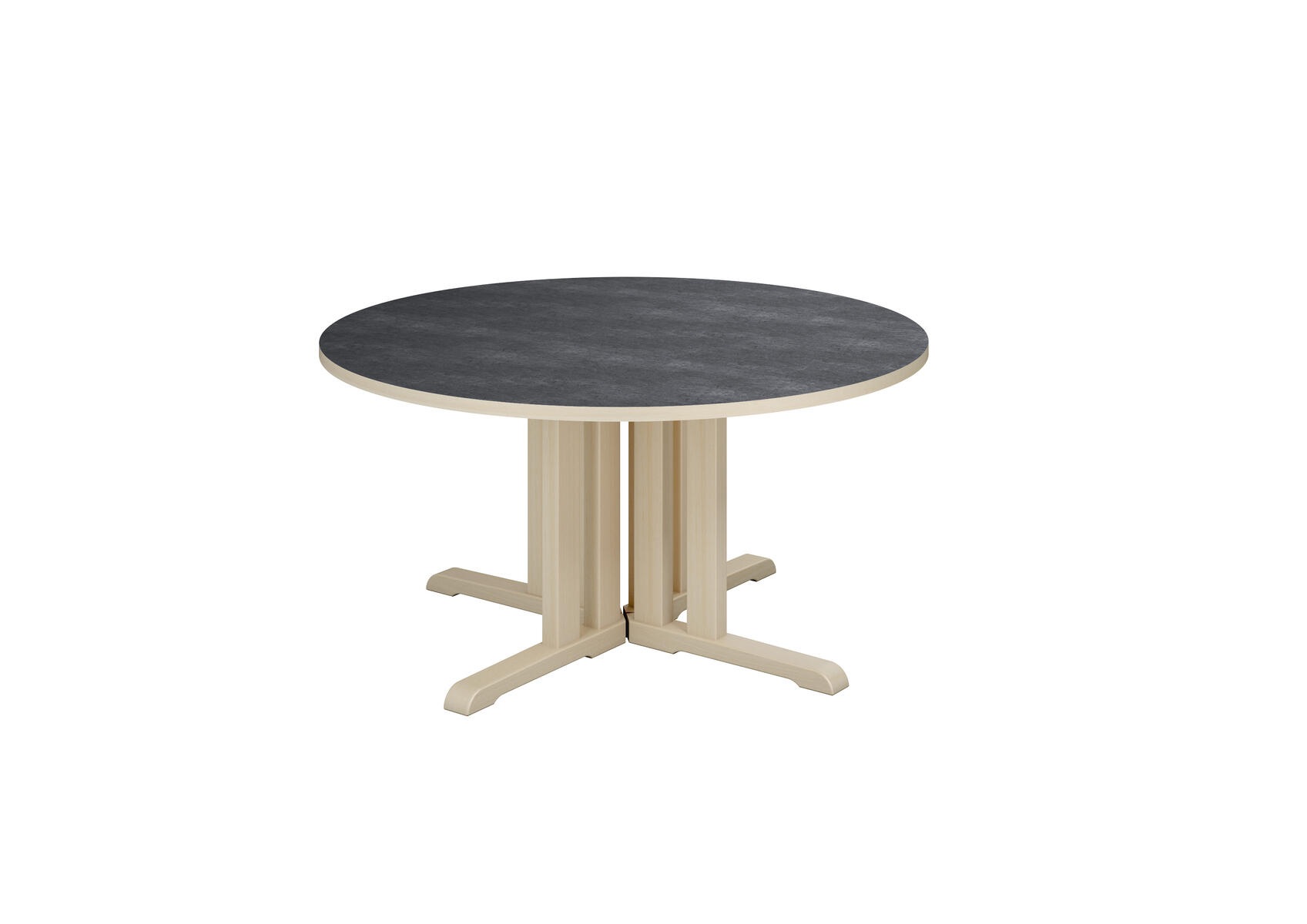 Tack vare den smarta designen på stativet ges det plats för fler barn runt bordet. Ljuddämpande skiva belagd med ett tåligt högtryckslaminat. Stativ i klarlackerad, massiv björk.