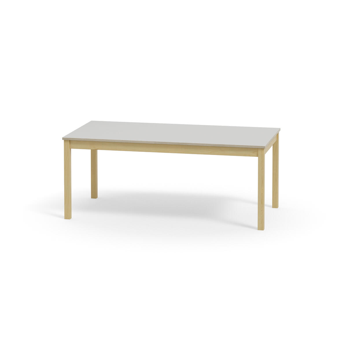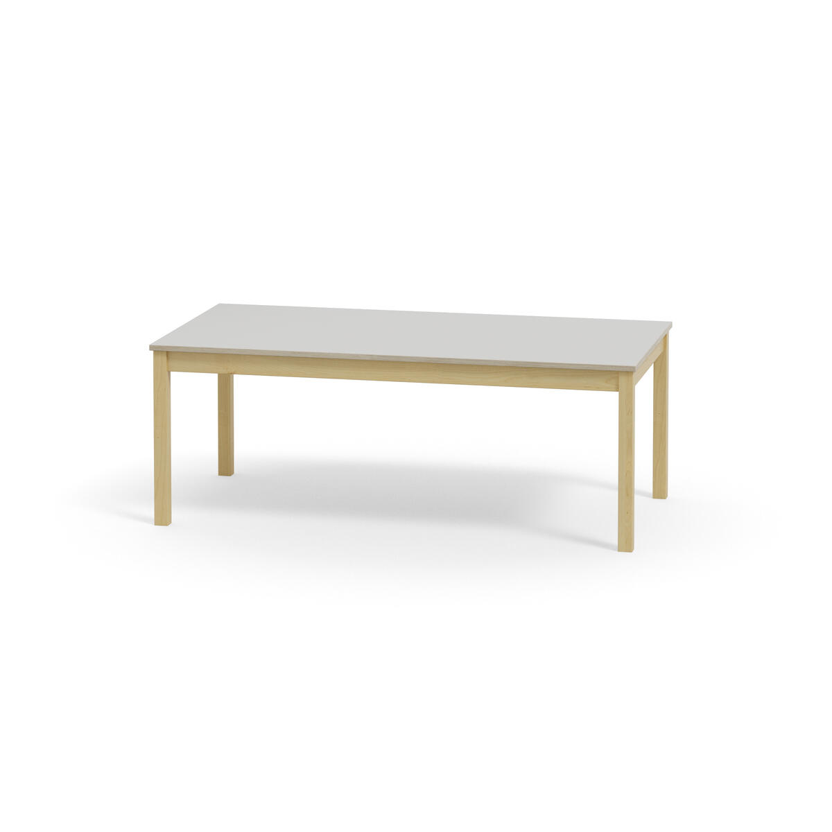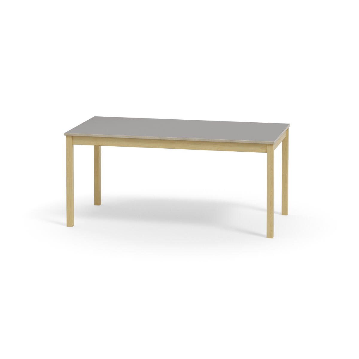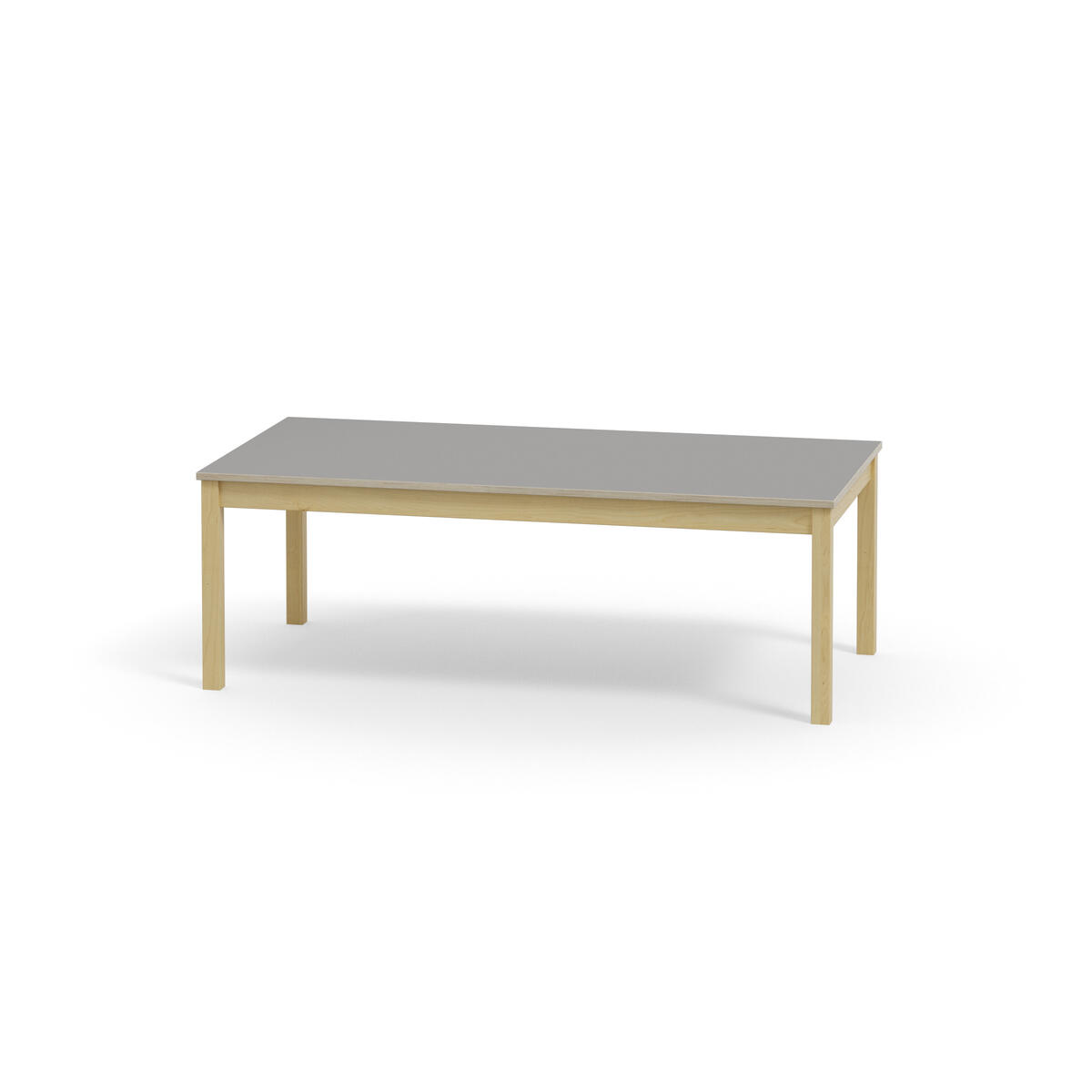 Akustikbord med underrede i massiv björk. Effektiv ljuddämpning tack vare inbyggd ljudabsorbent i skivan och bordsyta av ljuddämpande linoleum, som är ett Svanenmärkt naturmaterial helt fritt från PVC och ftalater.