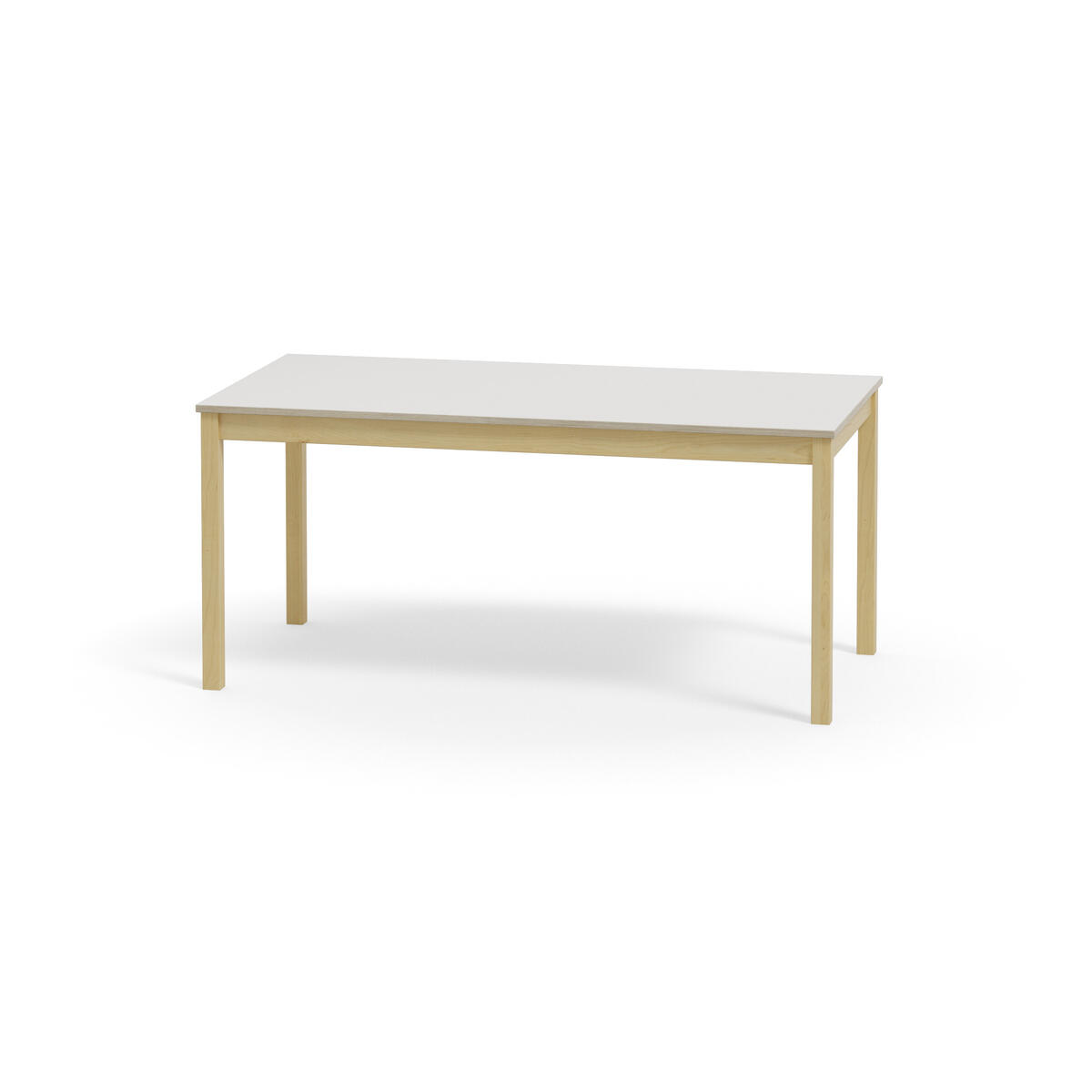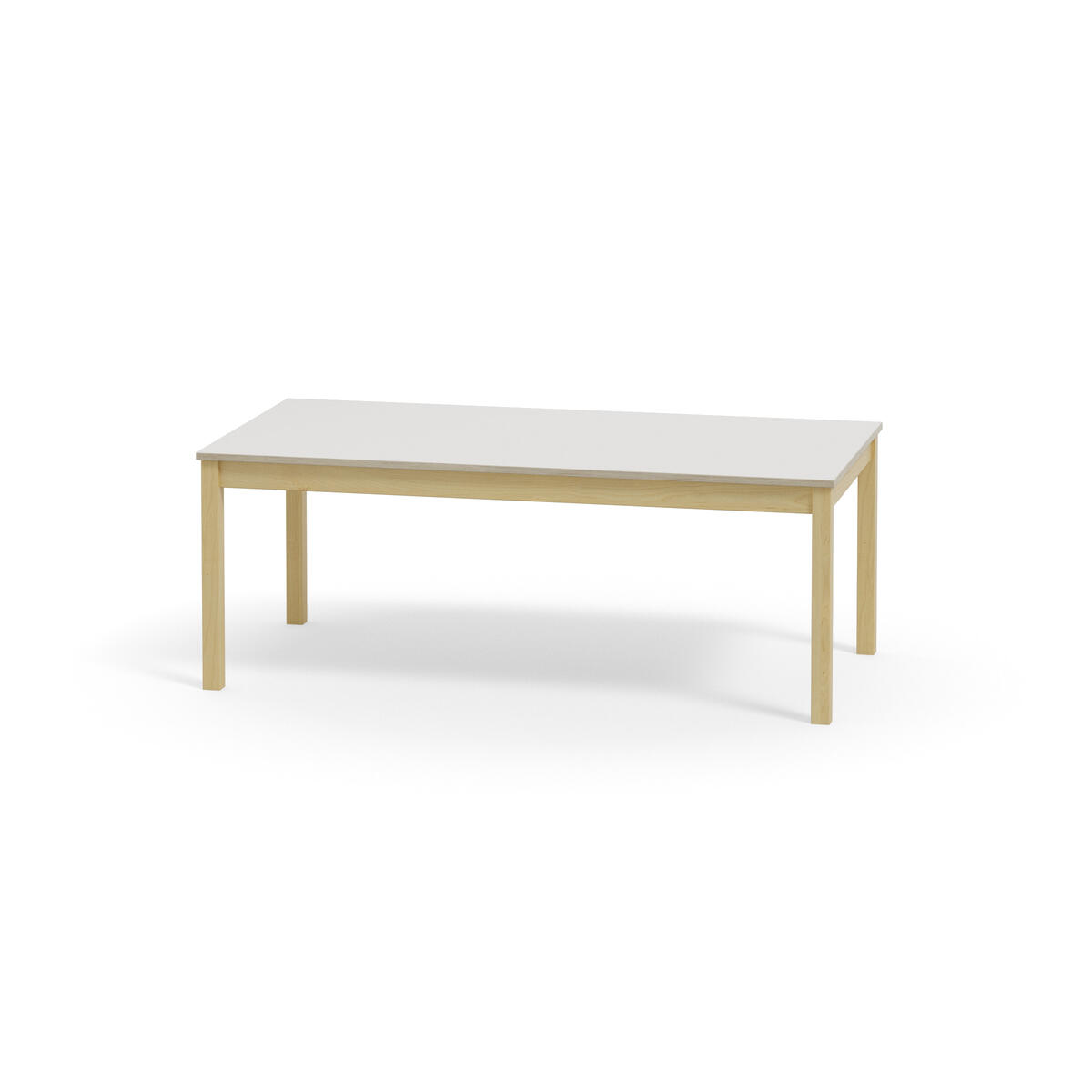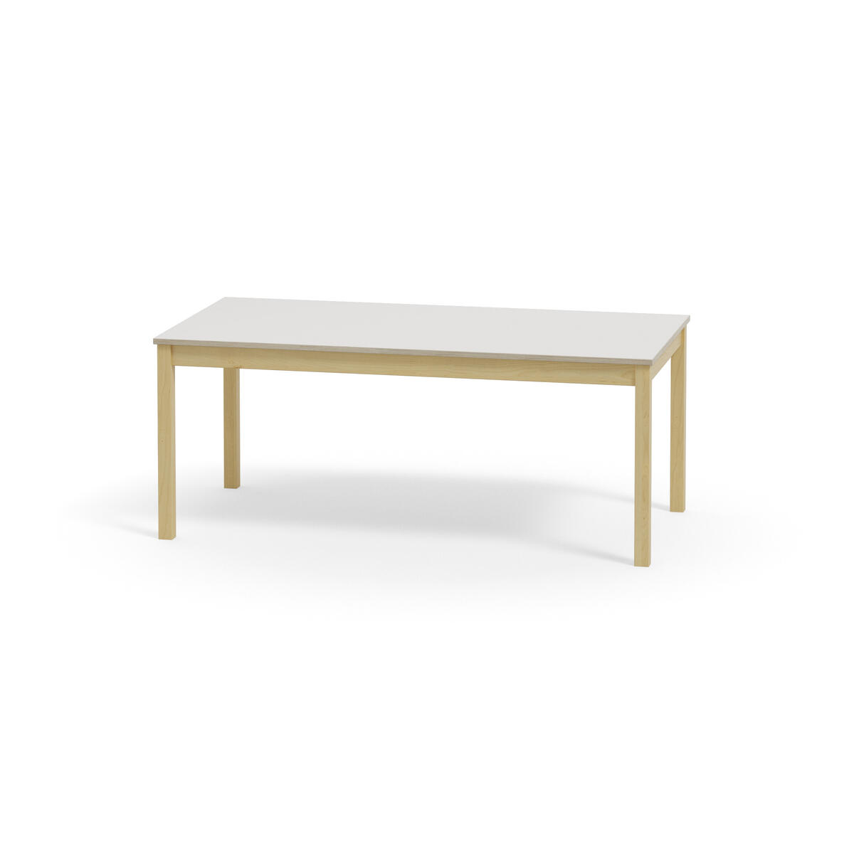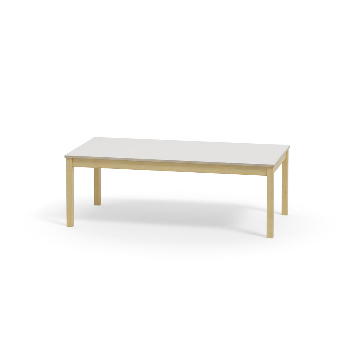 Akustikbord med underrede i massiv björk. Effektiv ljuddämpning tack vare inbyggd ljudabsorbent i skivan och bordsyta av ljuddämpande linoleum, som är ett Svanenmärkt naturmaterial helt fritt från PVC och ftalater.