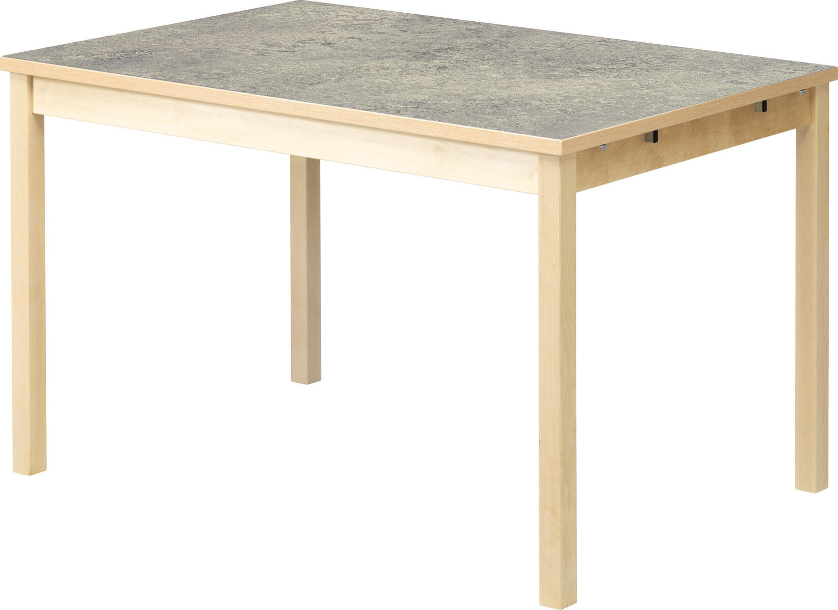 Akustikbord med underrede i massiv björk. Effektiv ljuddämpning tack vare inbyggd ljudabsorbent i skivan och bordsyta av ljuddämpande linoleum, som är ett Svanenmärkt naturmaterial helt fritt från PVC och ftalater.