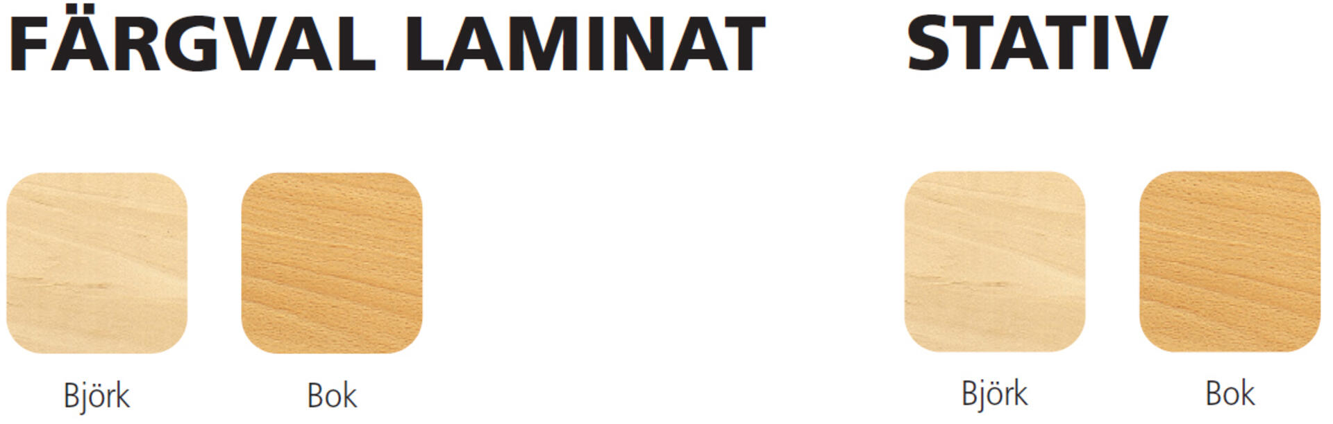 Skiva i ljuddämpande högtryckslaminat. Stativ i massiv björk.