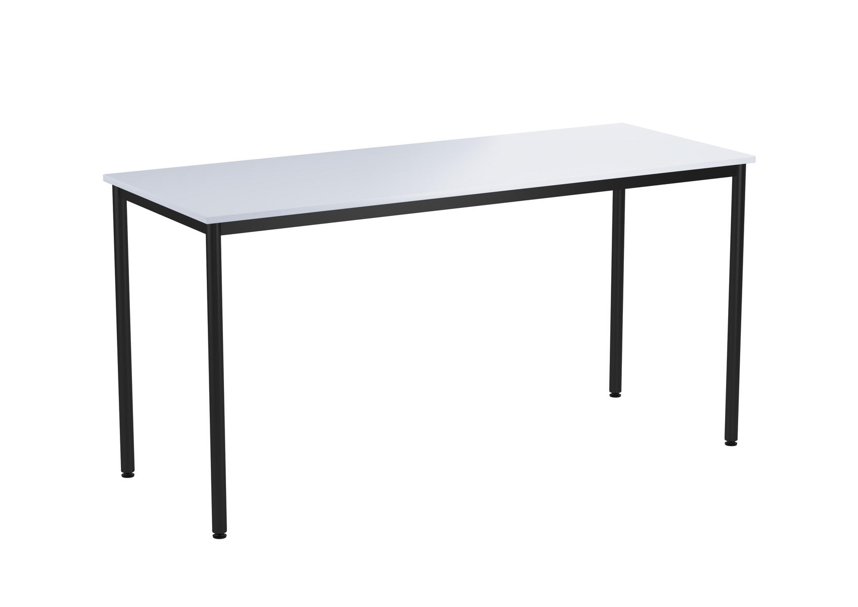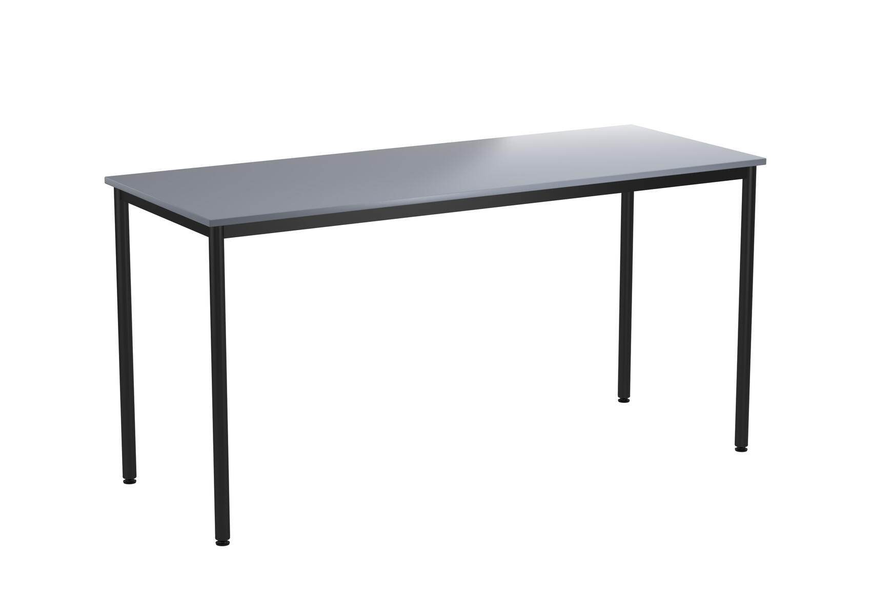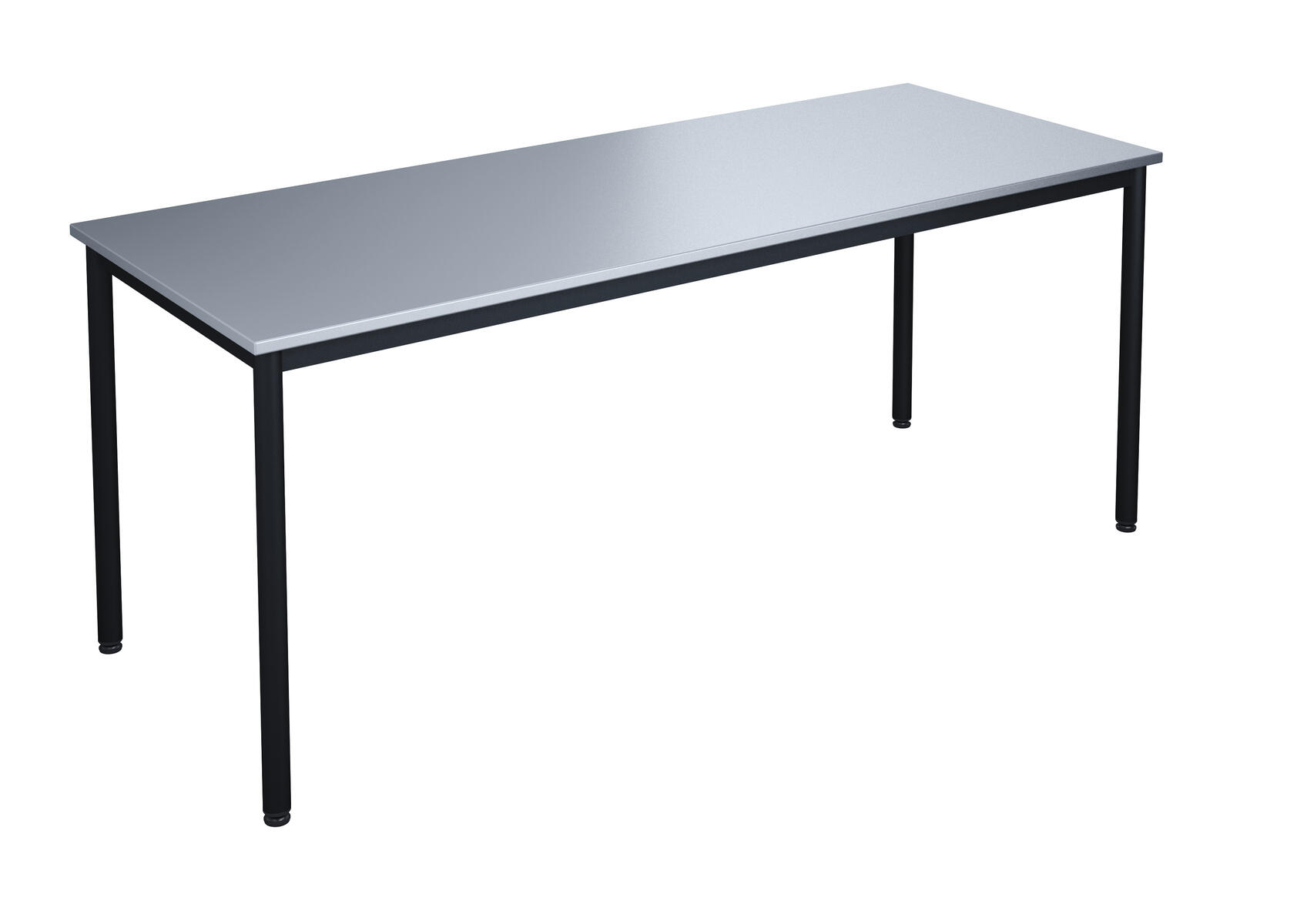 Bordsskiva i laminat. Ställbara tassar för anpassning till ojämna ytor. Stativet lackerat i silver RAL 9006.