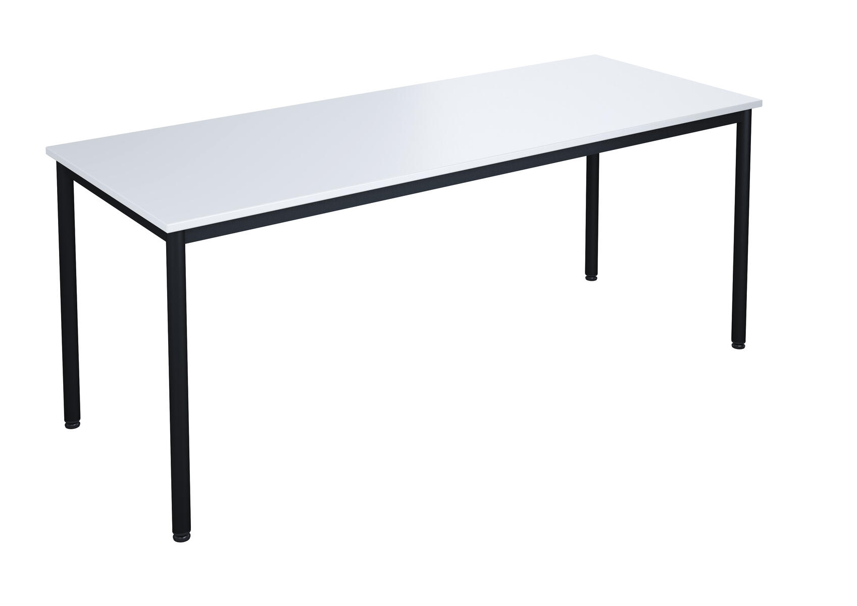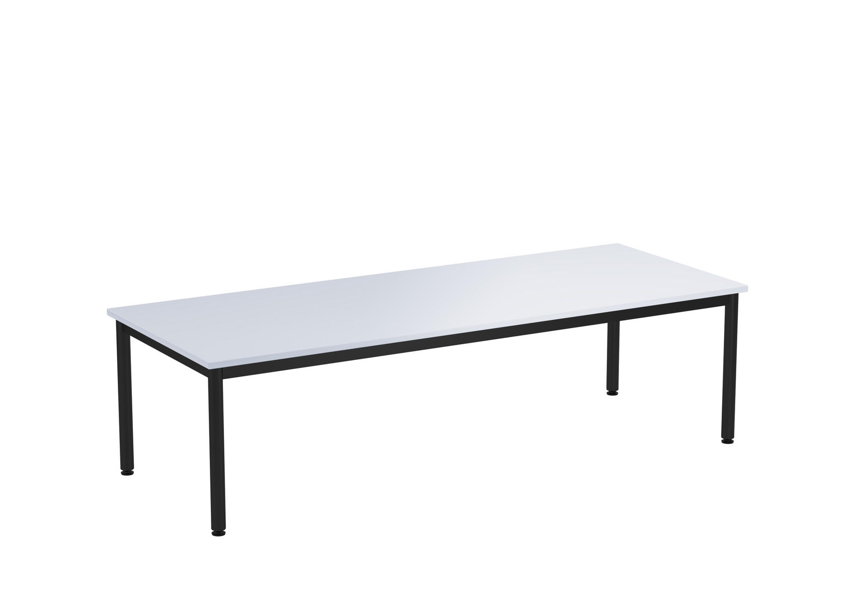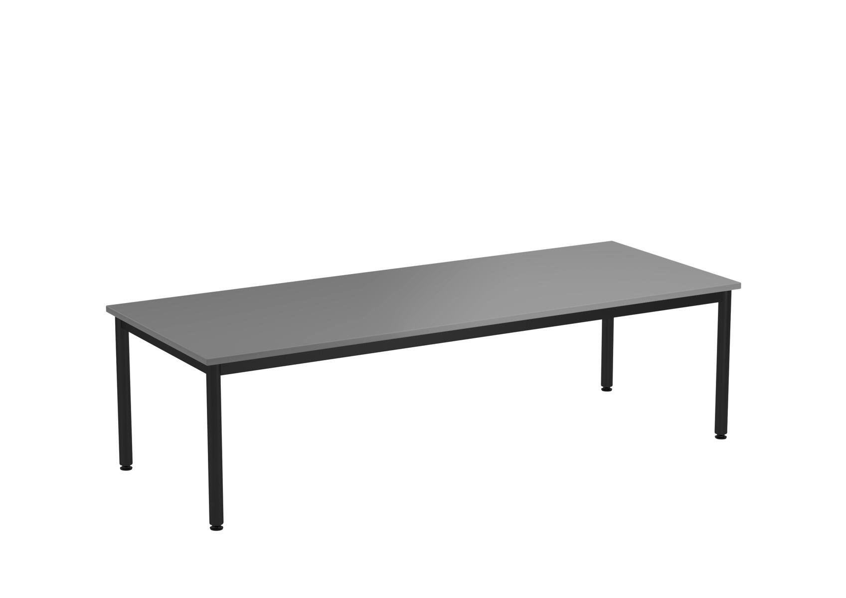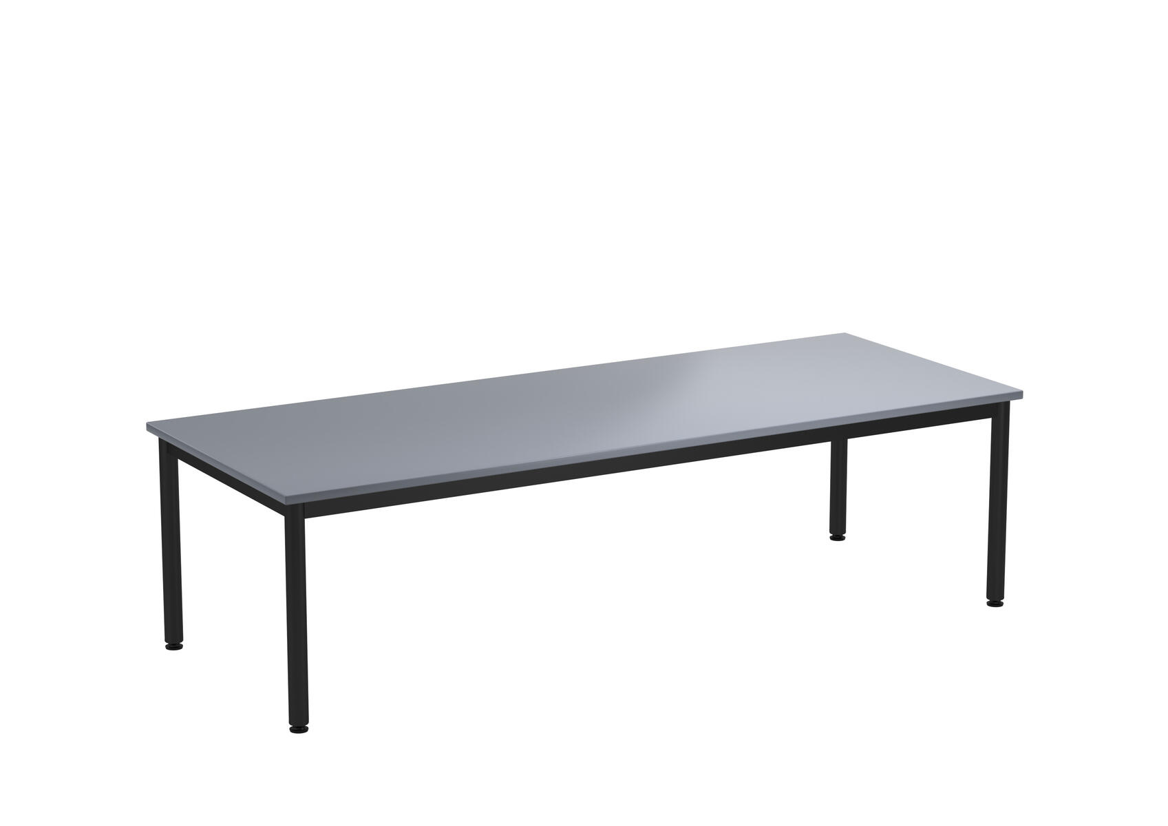 Bordsskiva i laminat. Ställbara tassar för anpassning till ojämna ytor. Stativet lackerat i silver RAL 9006.