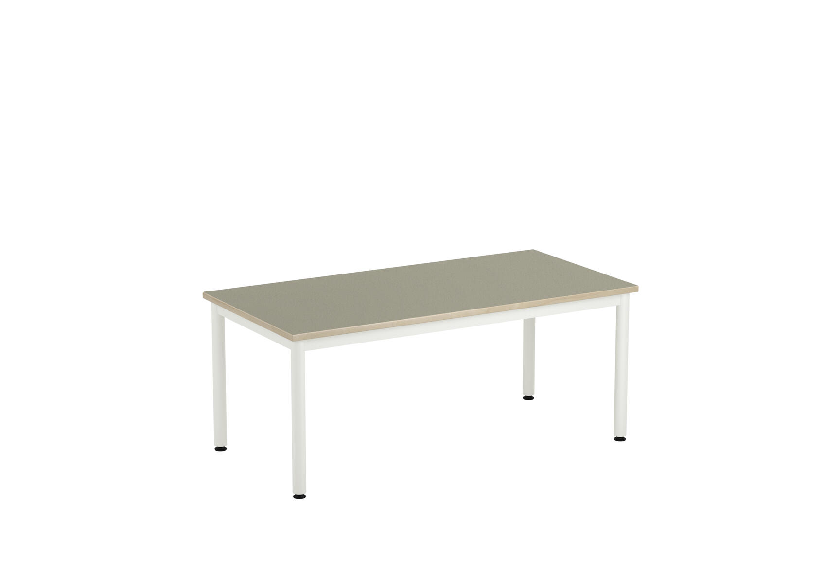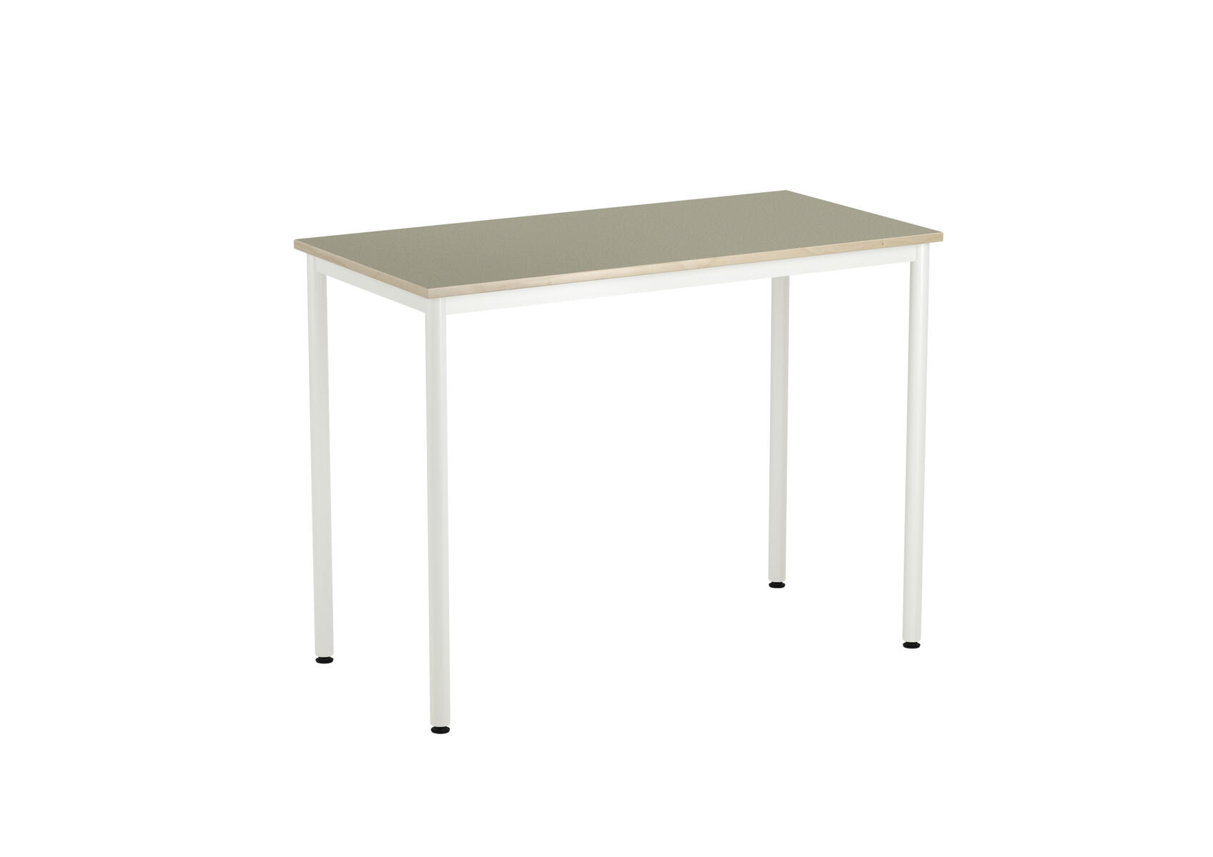 Bordsskiva med ljuddämpande yta i linoleum. Ställbara tassar för anpassning till ojämna ytor. Stativ lackerat i vitt RAL 9003.