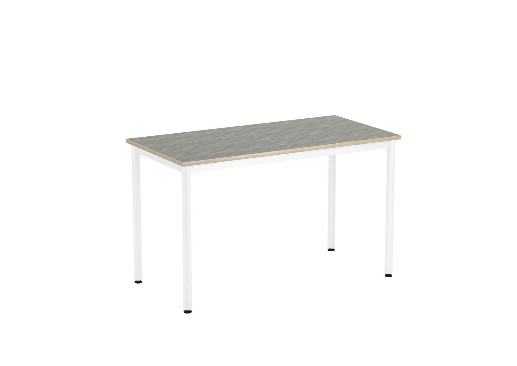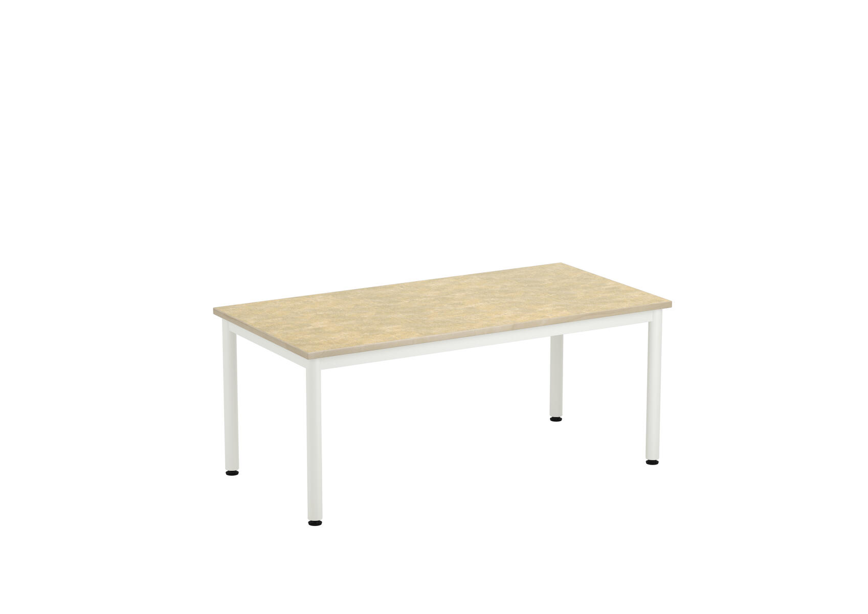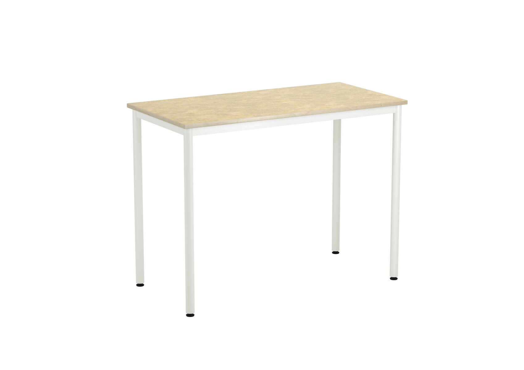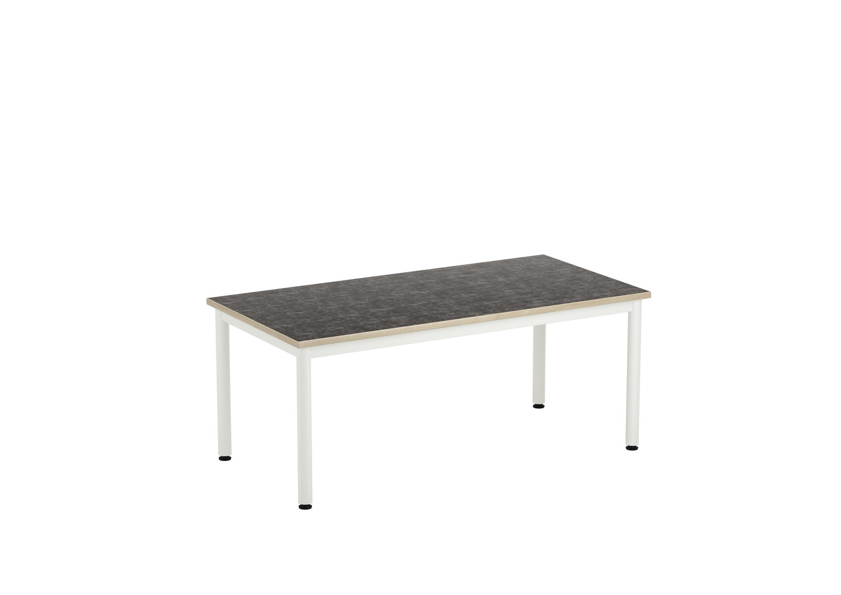Bordsskiva i laminat. Ställbara tassar för anpassning till ojämna ytor. Stativet lackerat i vitt RAL 9003.