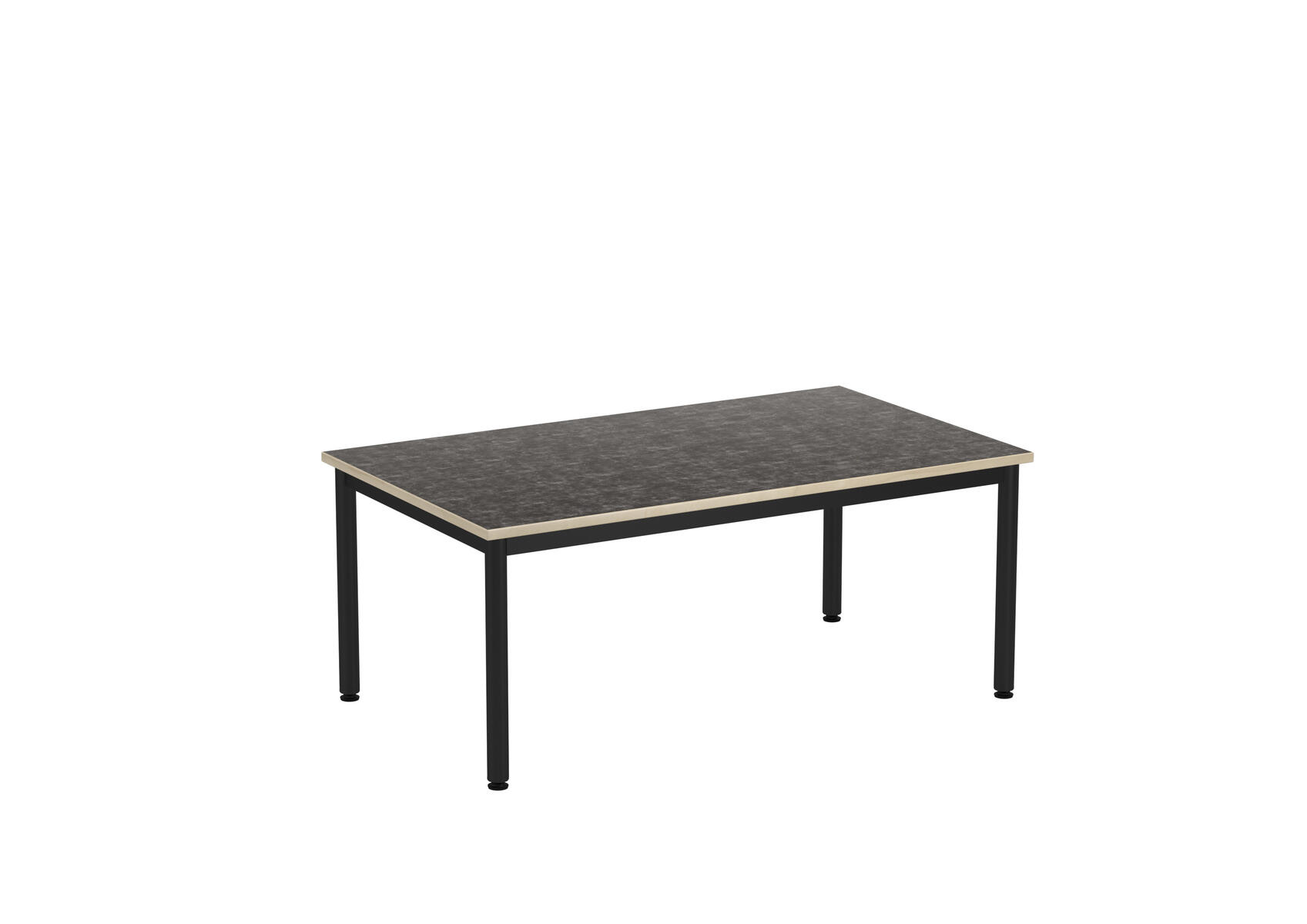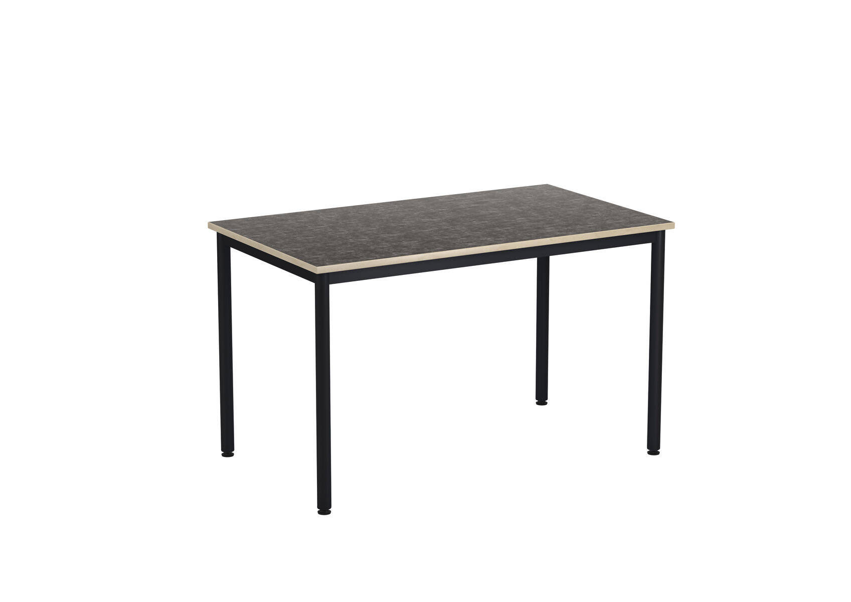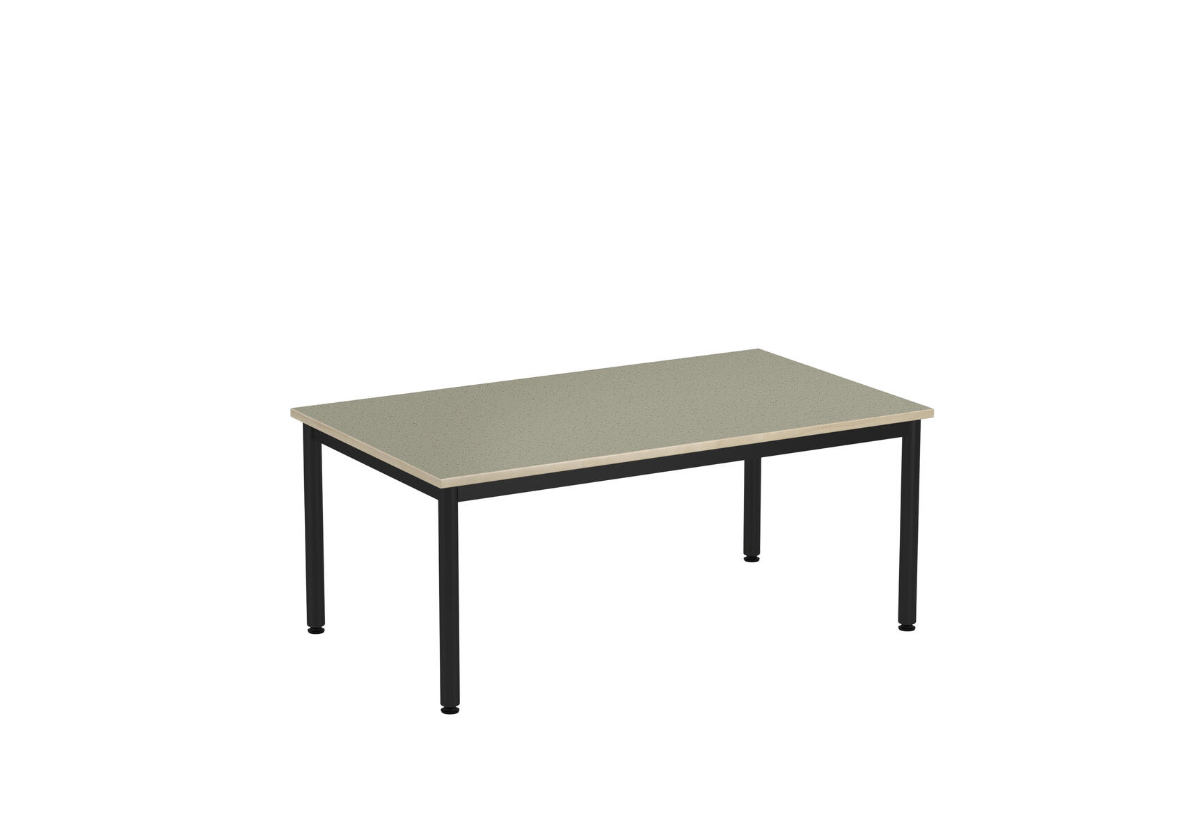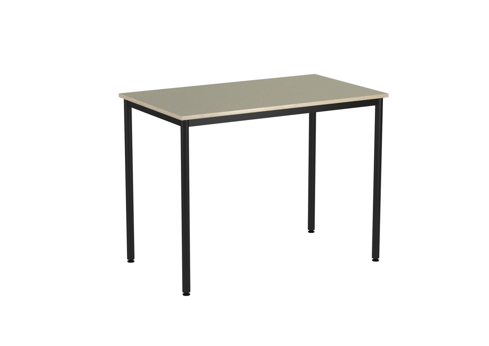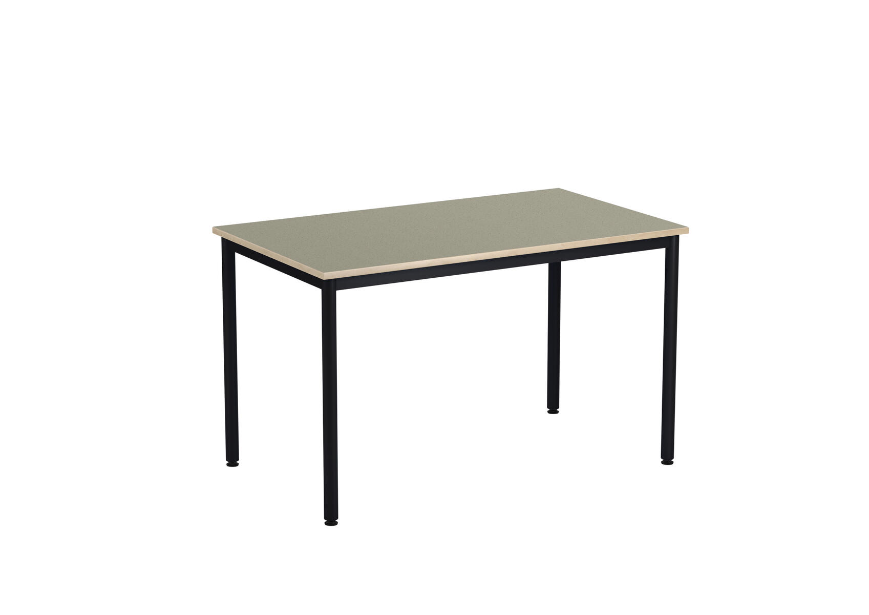 Bordsskiva med ljuddämpande yta i linoleum och ljudabsorbent på undersidan. Ställbara tassar för anpassning till ojämna ytor. Stativet lackerat i svart RAL 9005.
