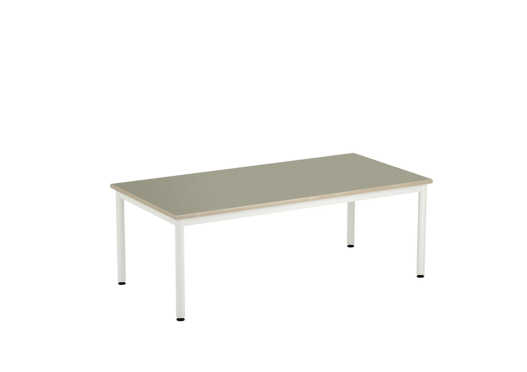 Bordsskiva med ljuddämpande yta i linoleum och ljudabsorbent på undersidan. Ställbara tassar för anpassning till ojämna ytor. Stativet lackerat i silver RAL 9006.