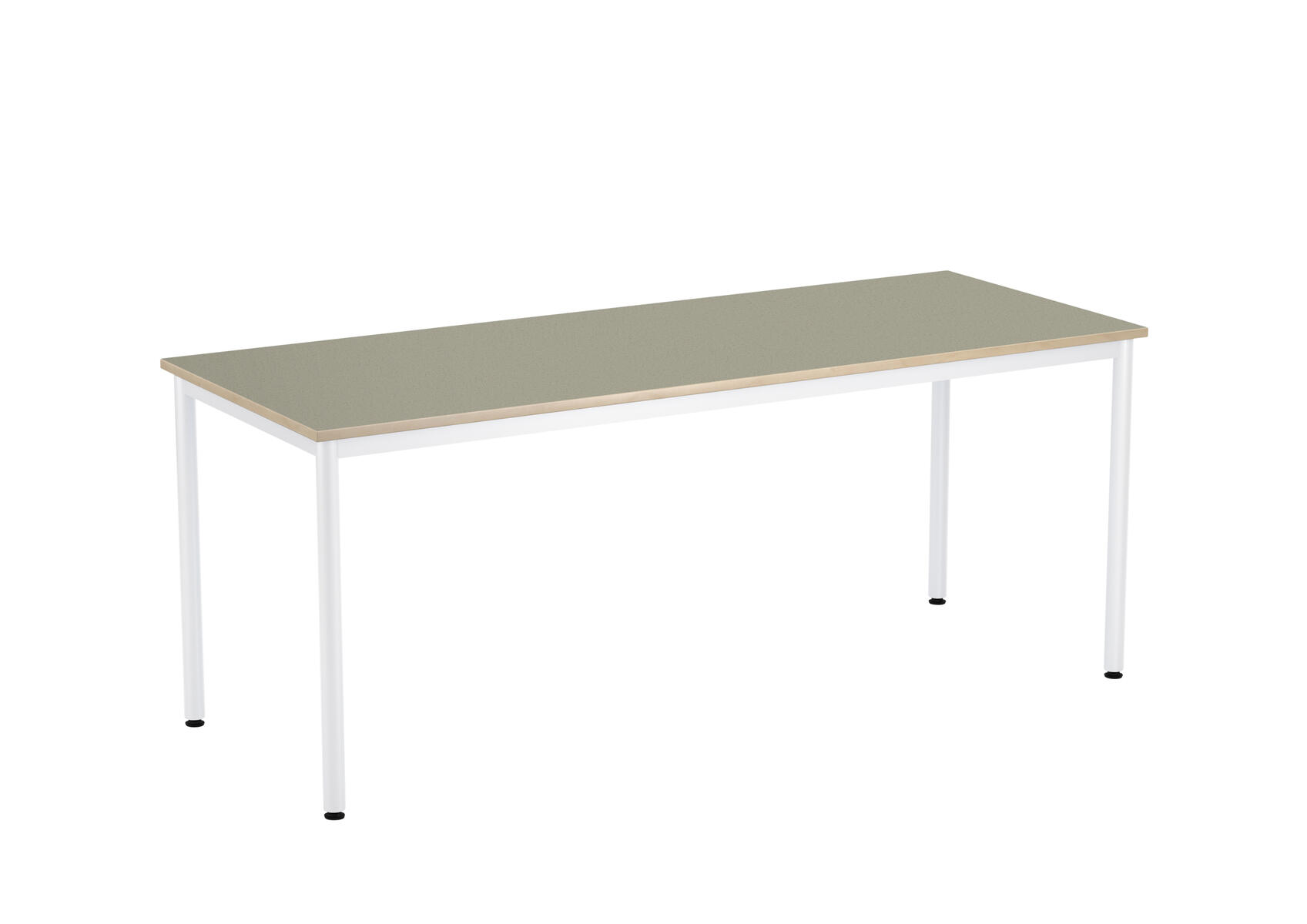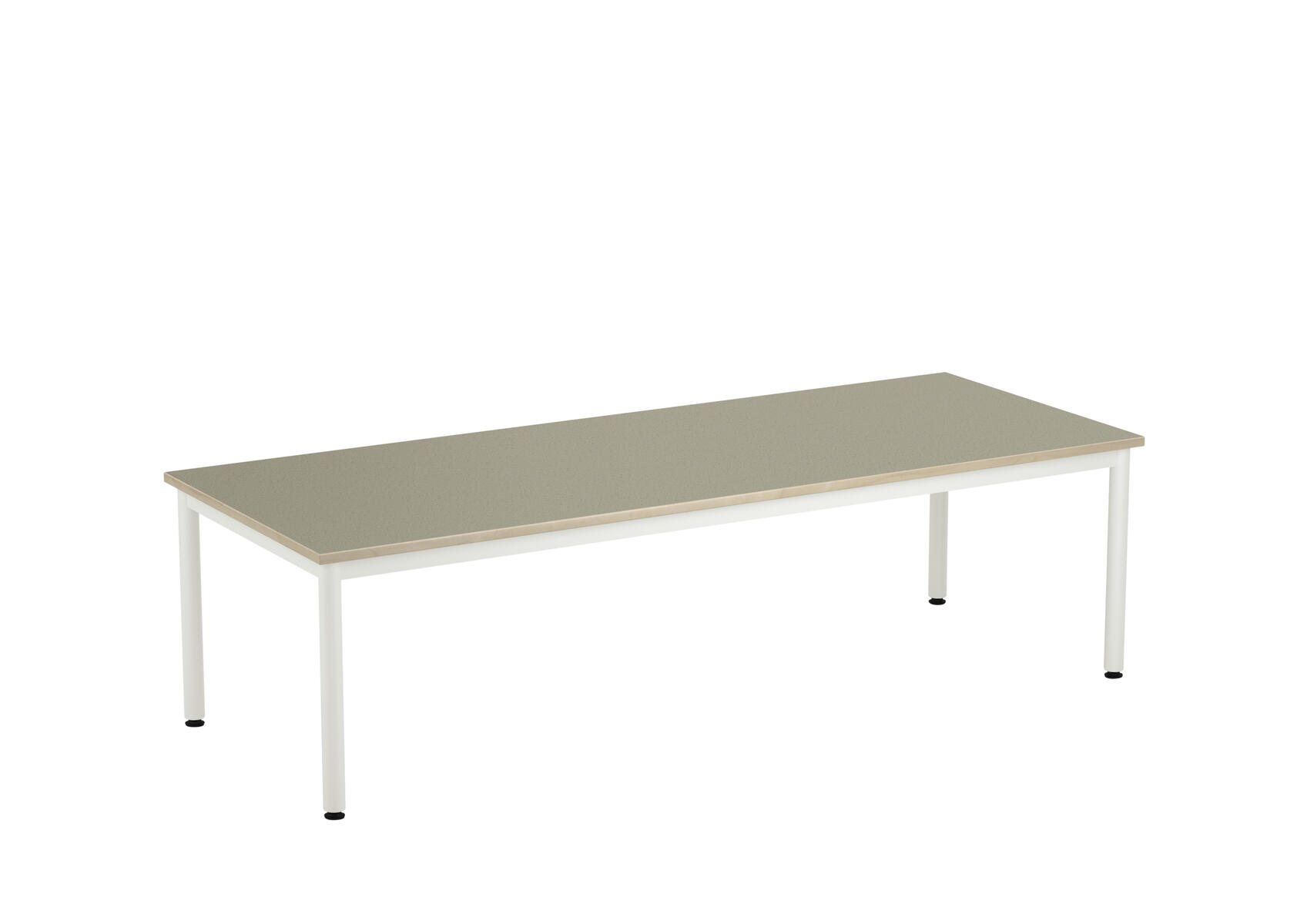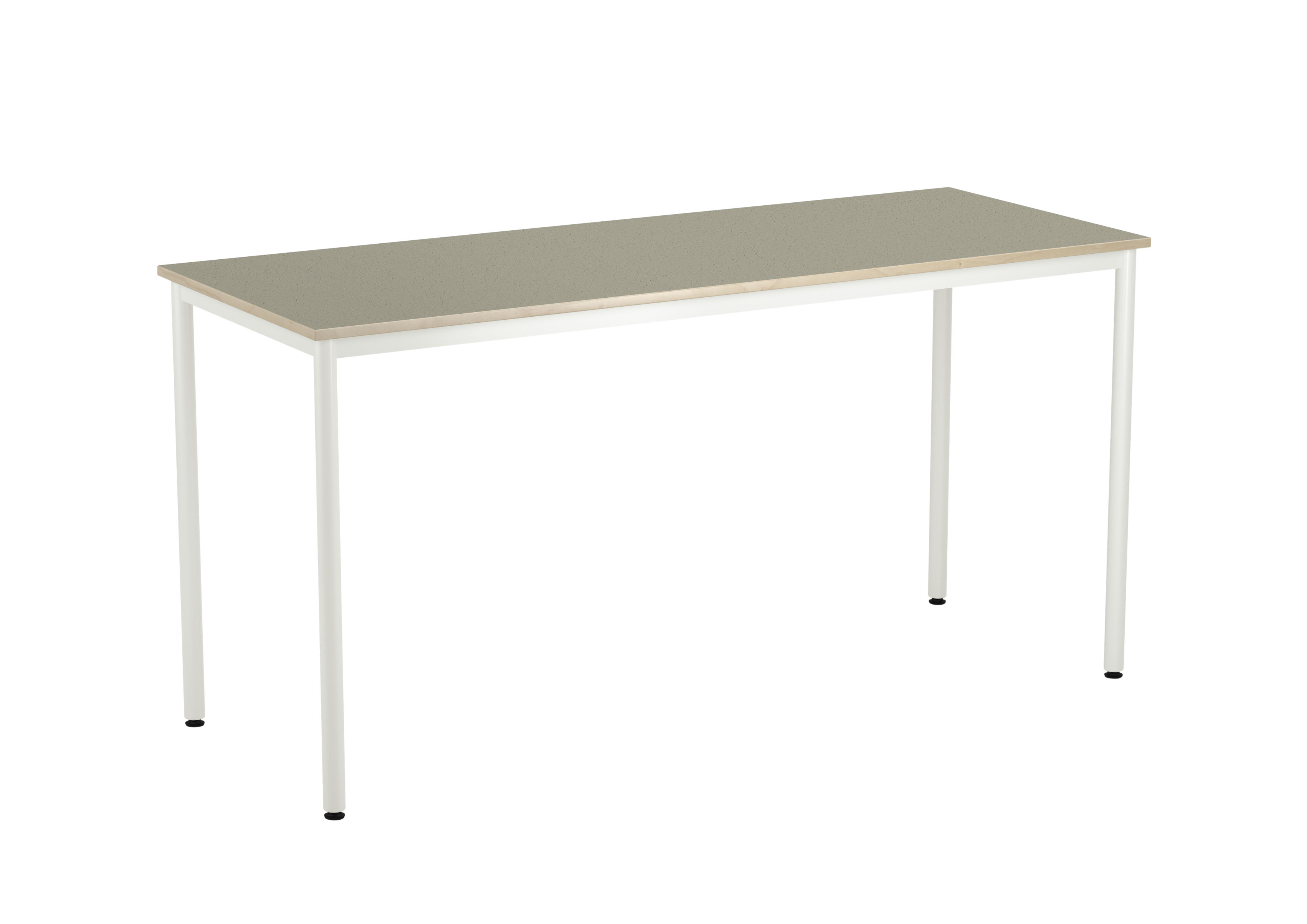 Bordsskiva med ljuddämpande yta i linoleum och ljudabsorbent på undersidan. Ställbara tassar för anpassning till ojämna ytor. Stativet lackerat i vitt RAL 9003.