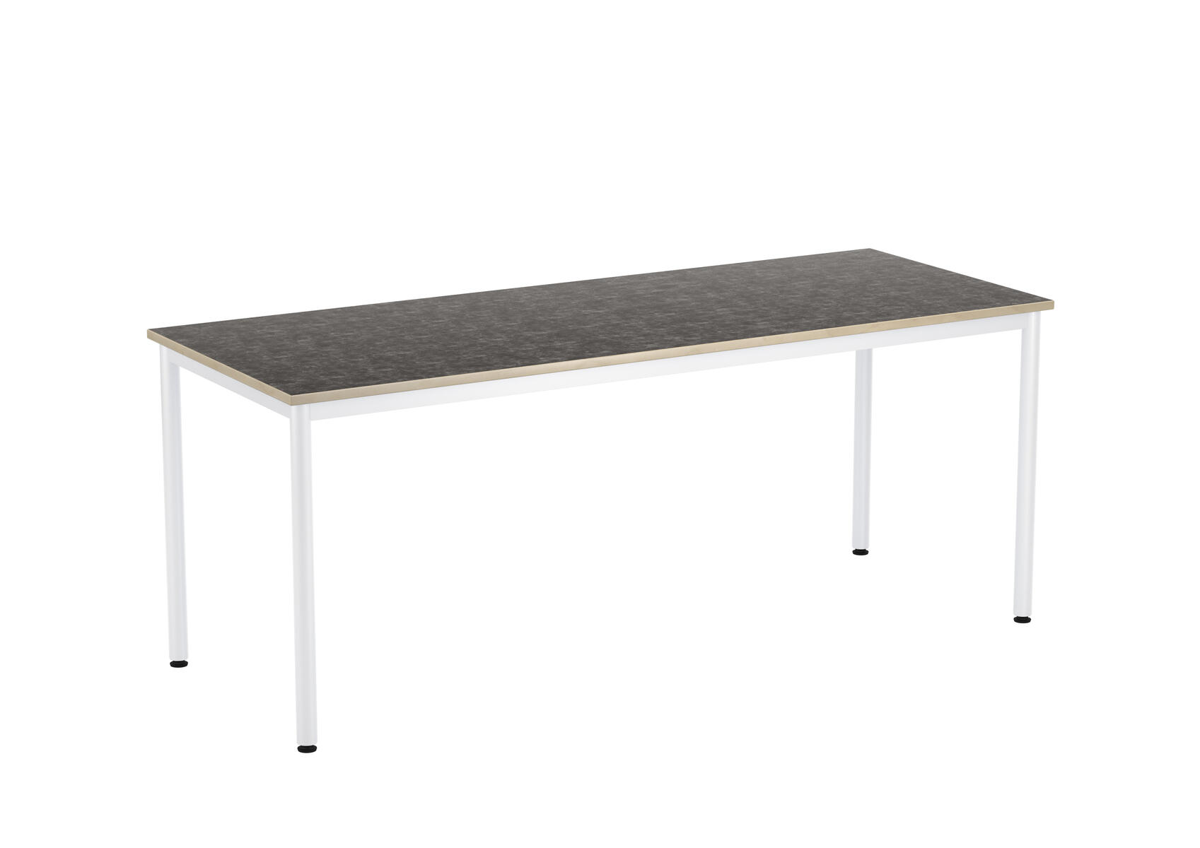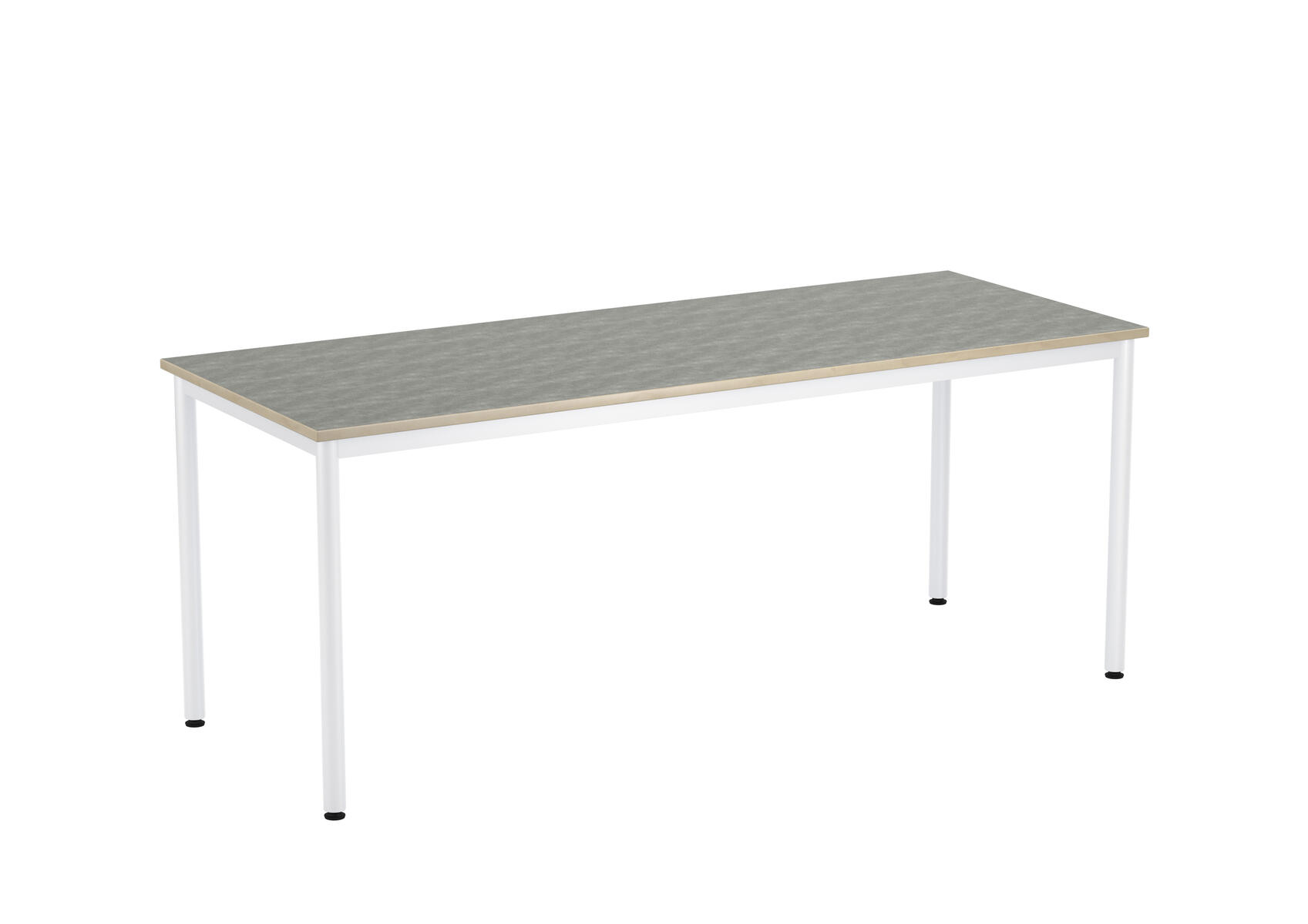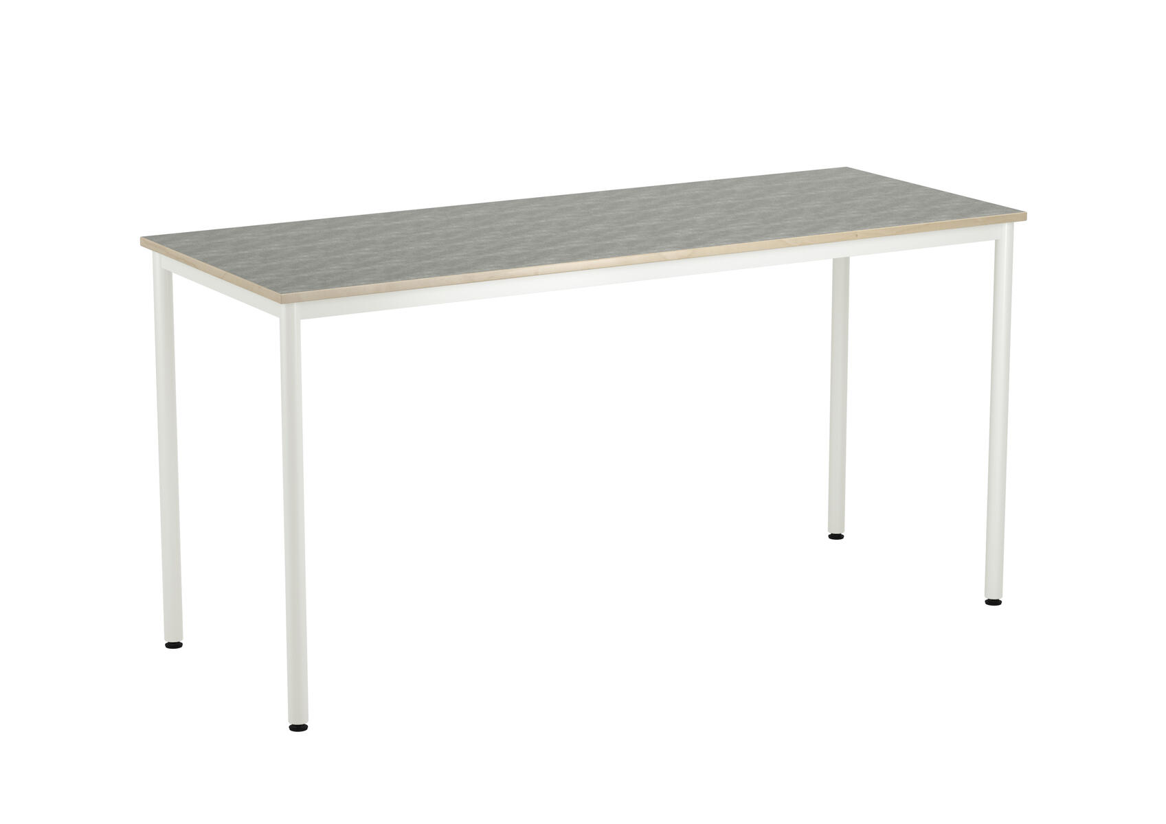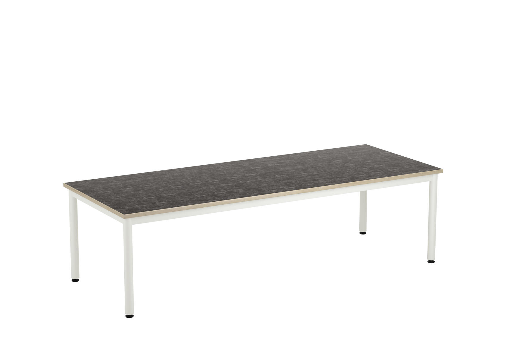 Bordsskiva med ljuddämpande yta i linoleum och ljudabsorbent på undersidan. Ställbara tassar för anpassning till ojämna ytor. Stativet lackerat i vitt RAL 9003.