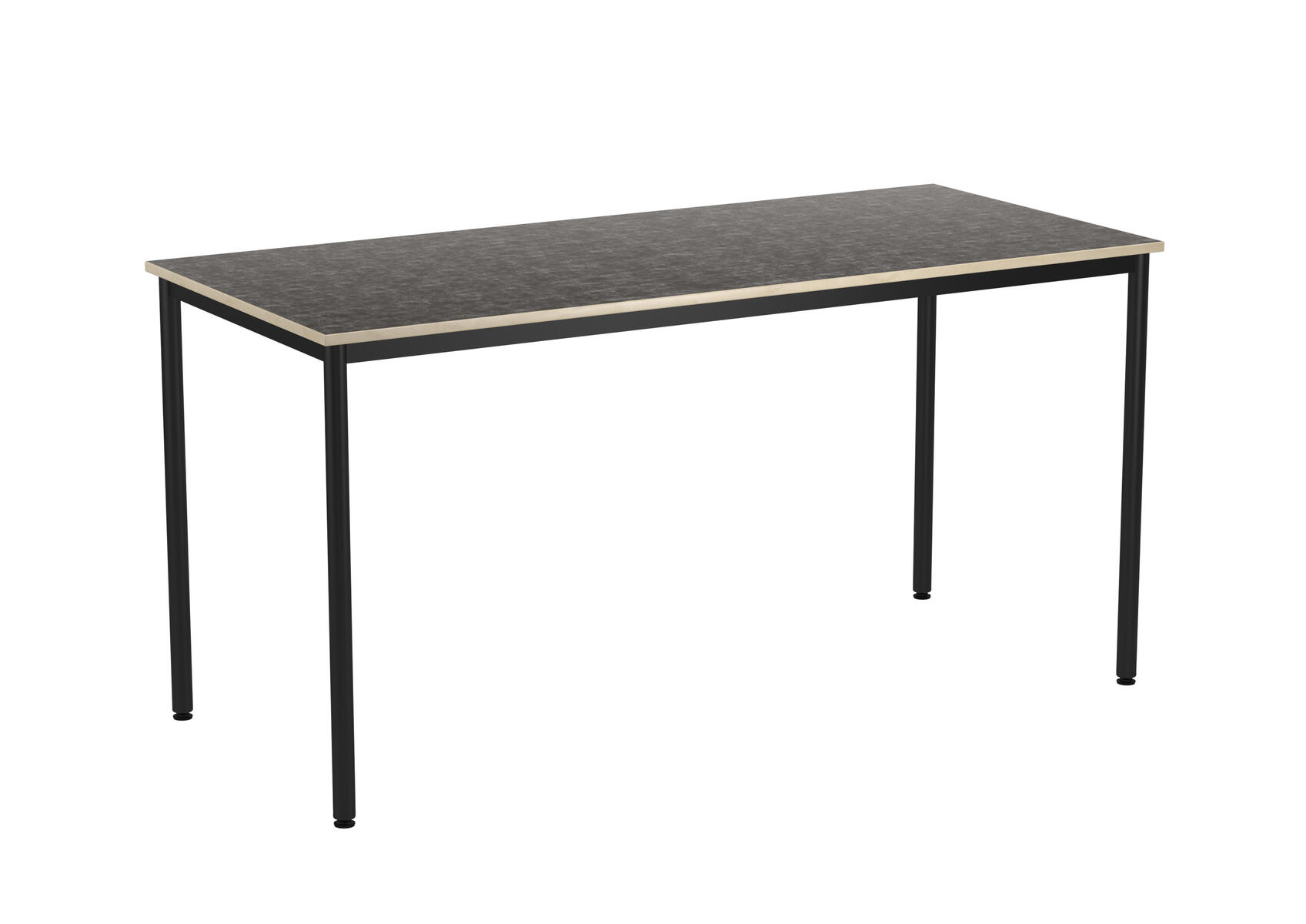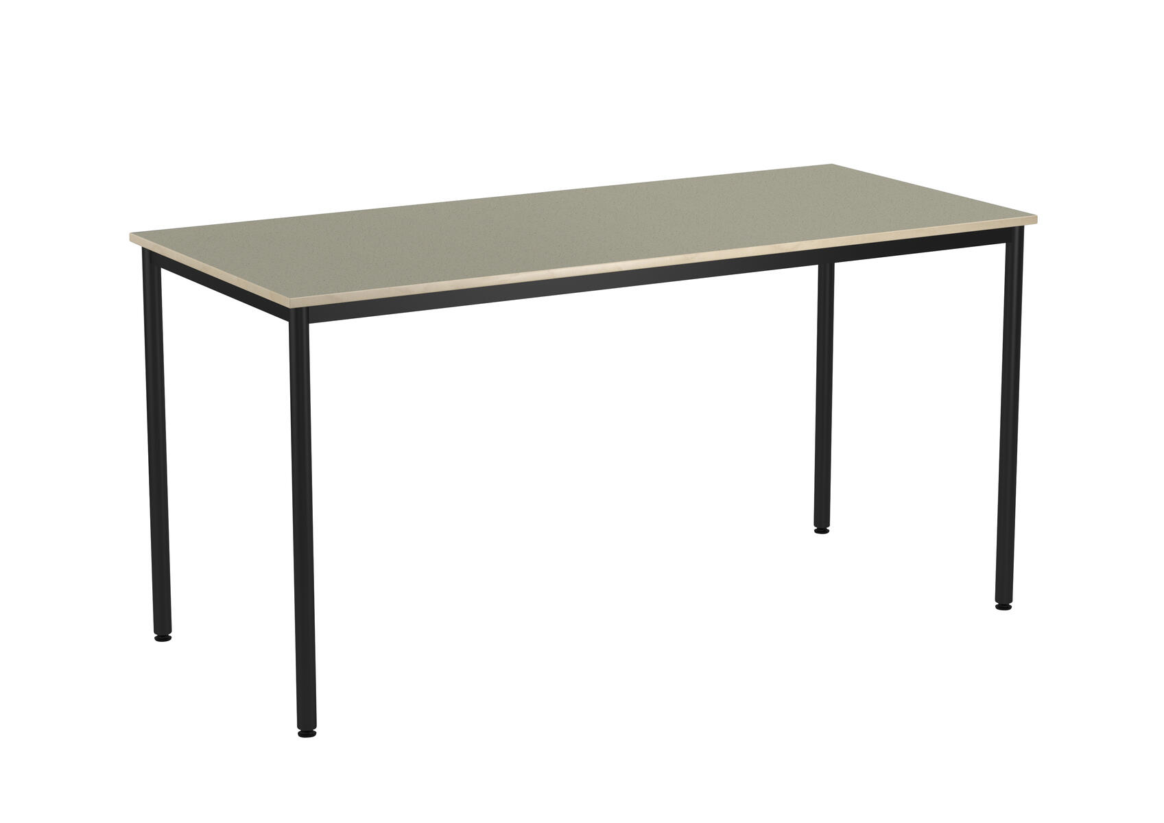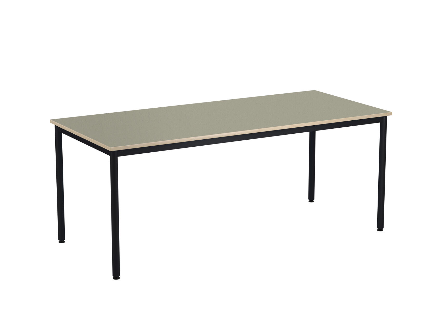 Bordsskiva med ljuddämpande yta i linoleum och ljudabsorbent på undersidan. Ställbara tassar för anpassning till ojämna ytor. Stativet lackerat i svart RAL 9005.