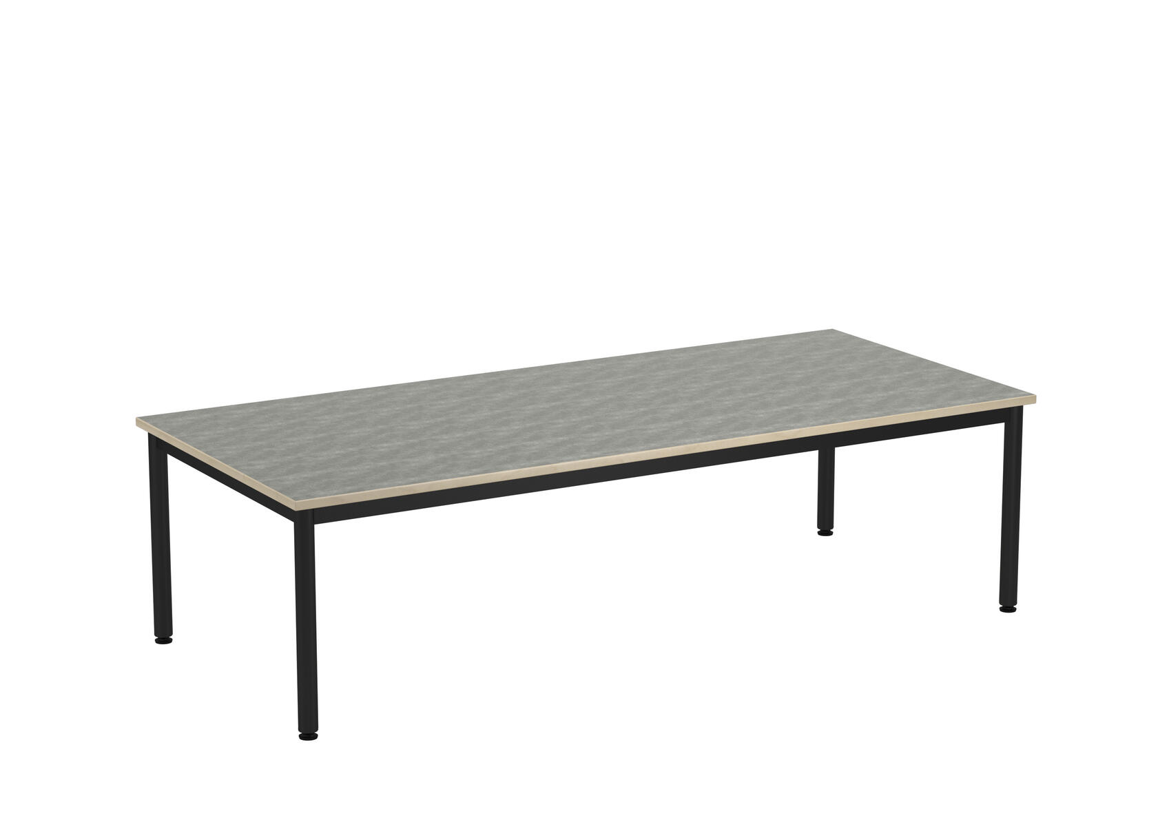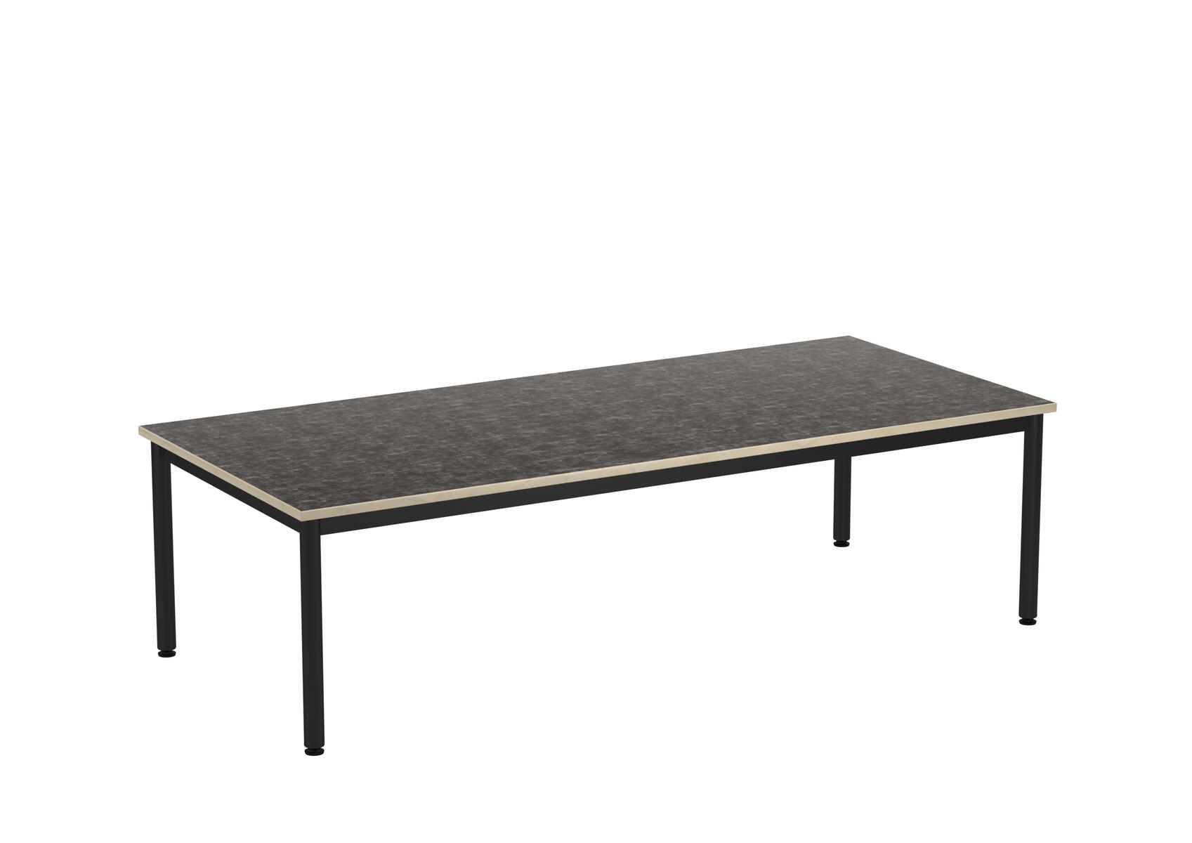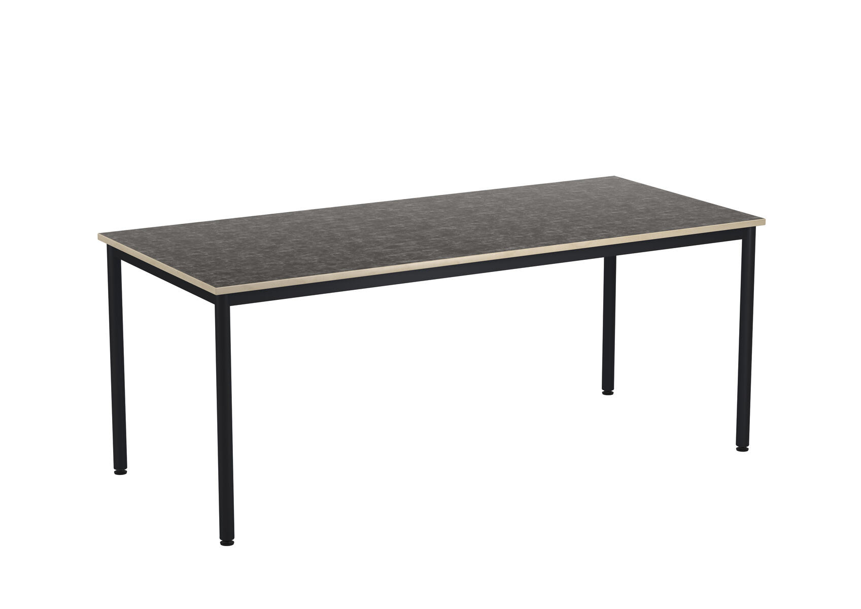 Bordsskiva med ljuddämpande yta i linoleum och ljudabsorbent på undersidan. Ställbara tassar för anpassning till ojämna ytor. Stativet lackerat i svart RAL 9005.