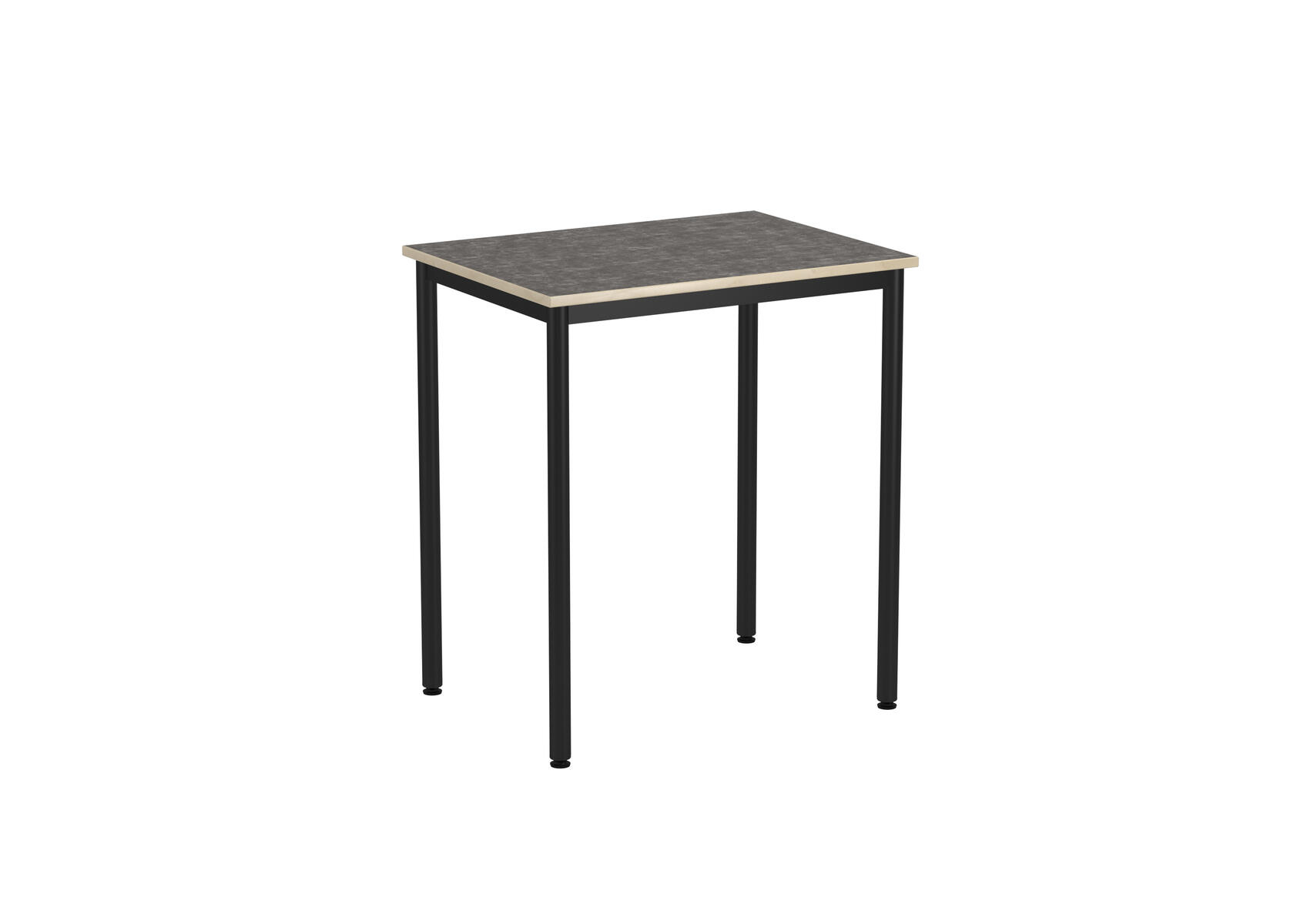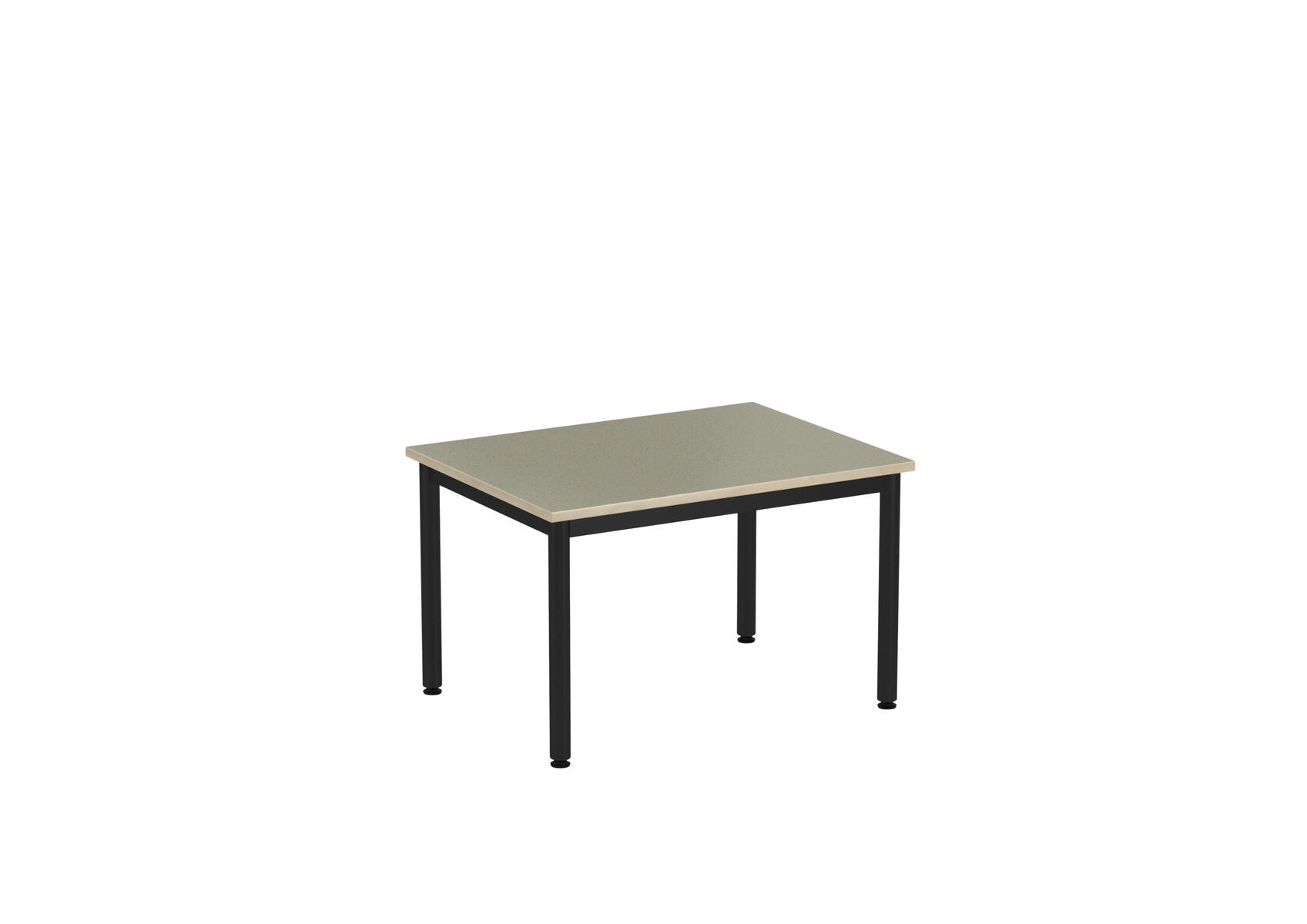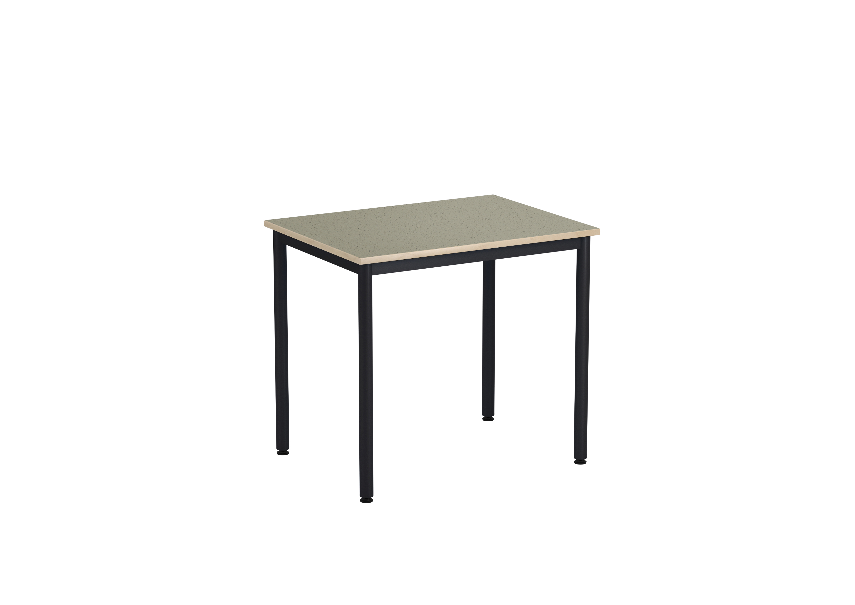 Bordsskiva med ljuddämpande yta i linoleum och ljudabsorbent på undersidan. Ställbara tassar för anpassning till ojämna ytor. Stativet lackerat i silver RAL 9006.