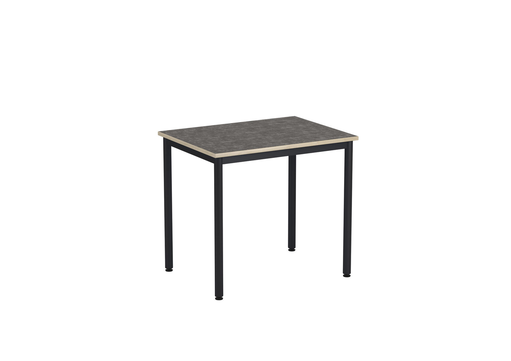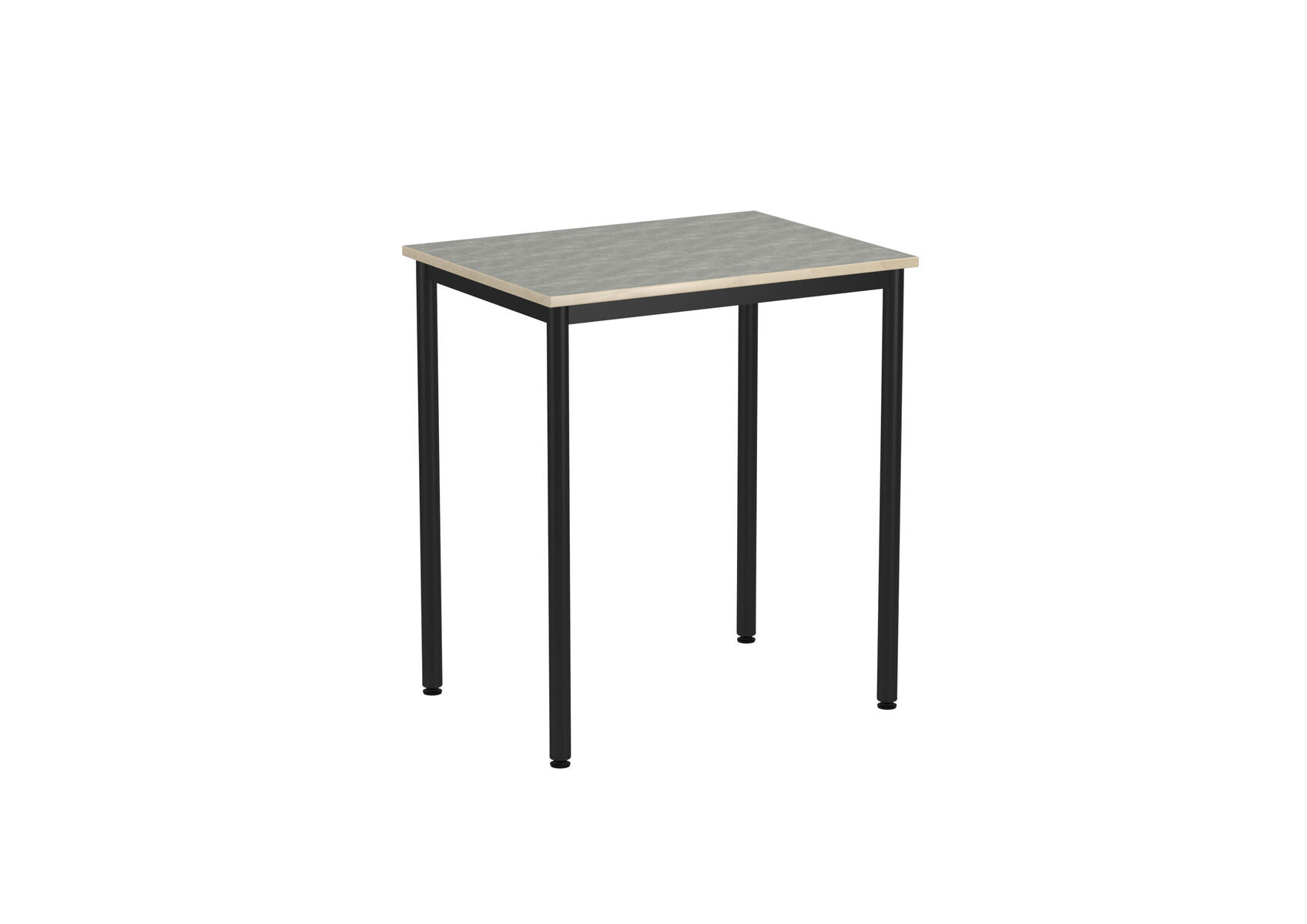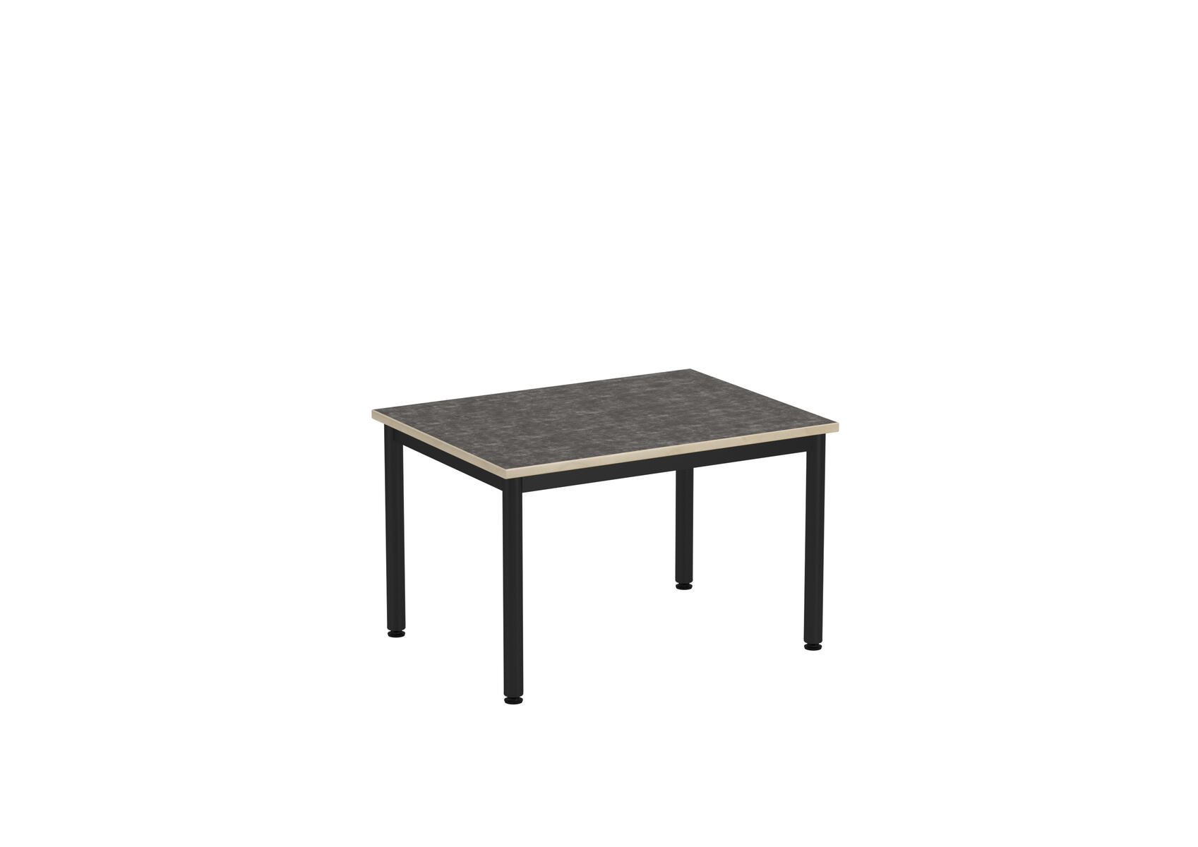 Bordsskiva med ljuddämpande yta i linoleum och ljudabsorbent på undersidan. Ställbara tassar för anpassning till ojämna ytor. Stativet lackerat i silver RAL 9006.