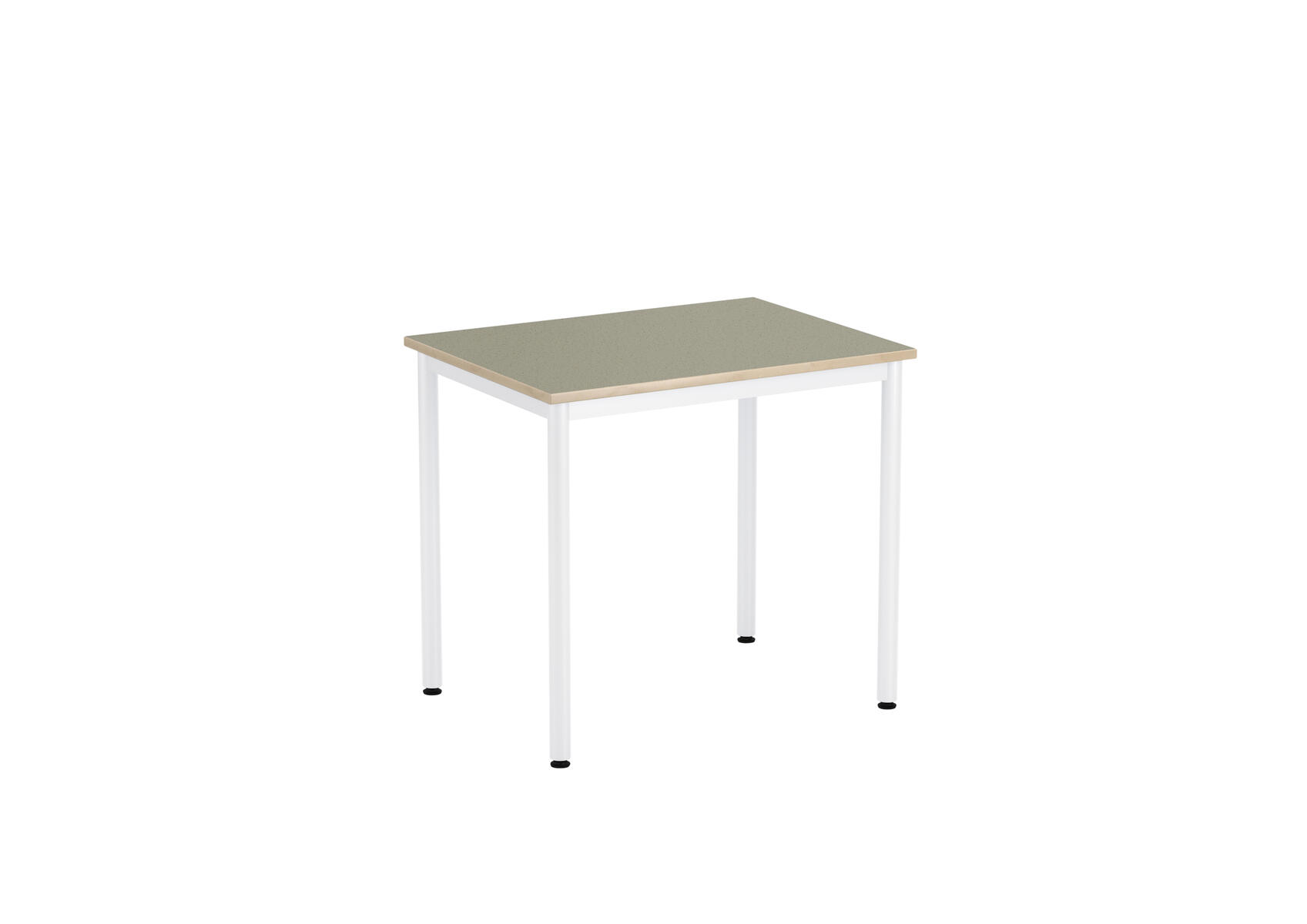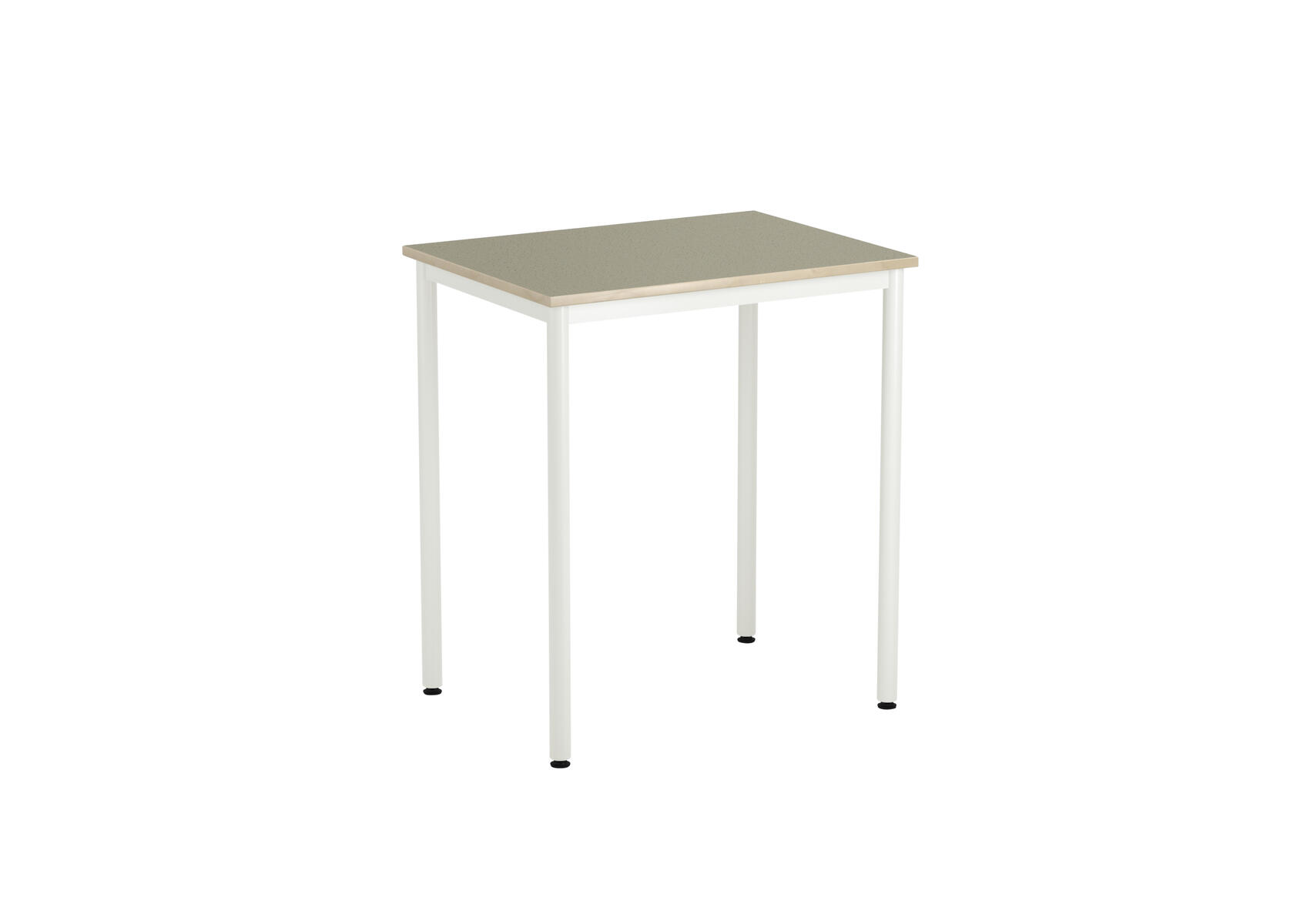 Bordsskiva med ljuddämpande yta i linoleum. Ställbara tassar för anpassning till ojämna ytor. Stativ lackerat i vitt RAL 9003.
