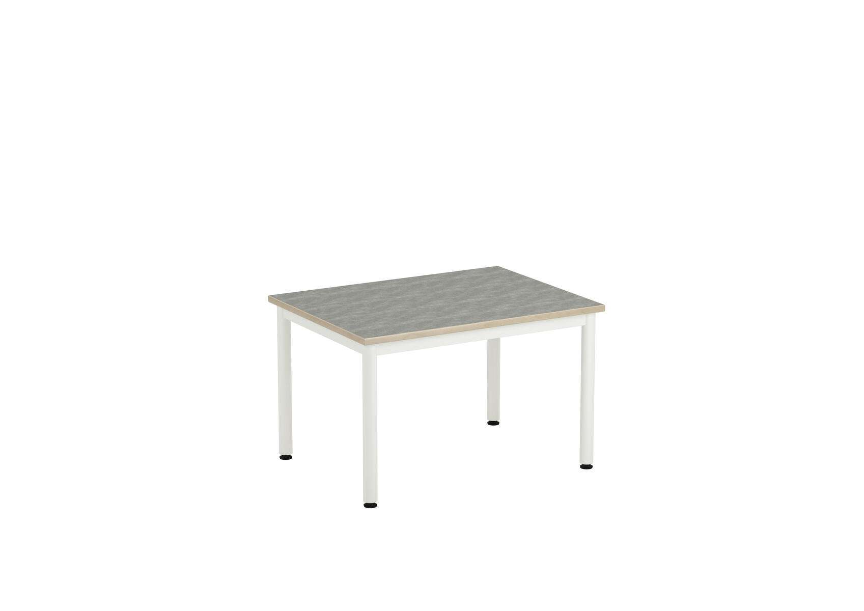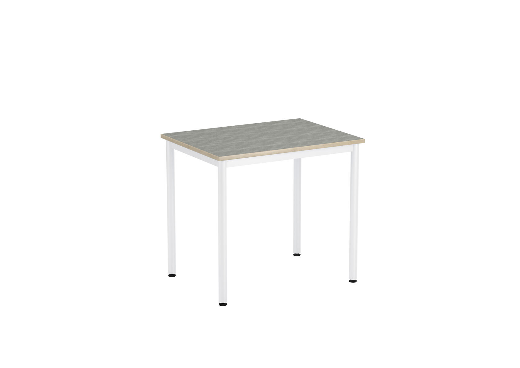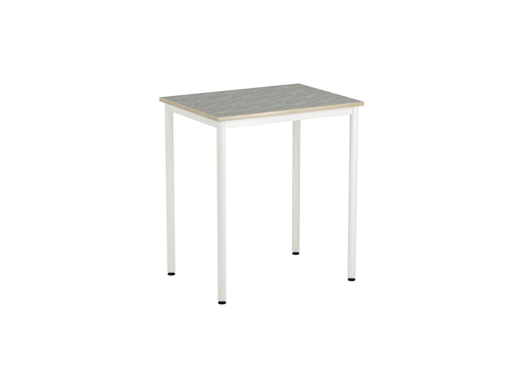 Bordsskiva i laminat. Ställbara tassar för anpassning till ojämna ytor. Stativet lackerat i silver RAL 9006.
