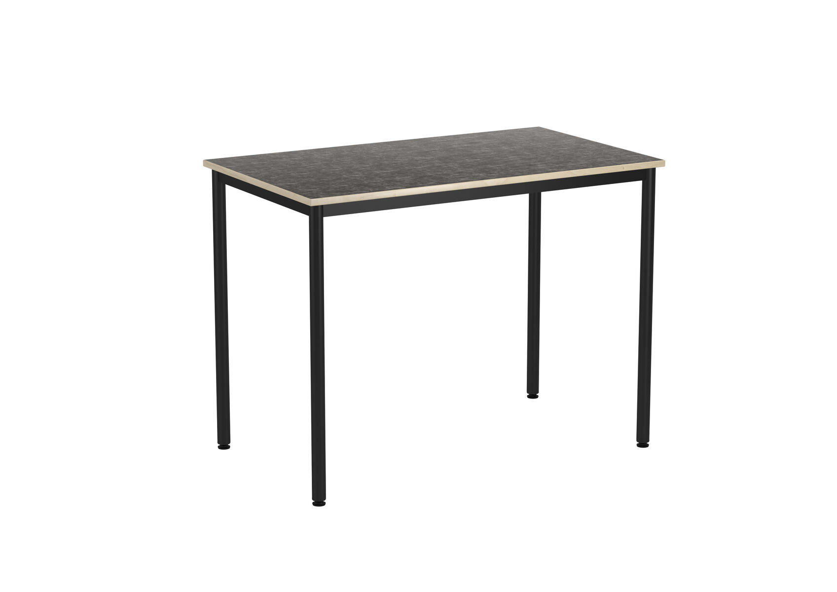 Bordsskiva med ljuddämpande yta i linoleum och ljudabsorbent på undersidan. Ställbara tassar för anpassning till ojämna ytor. Stativet lackerat i svart RAL 9005.