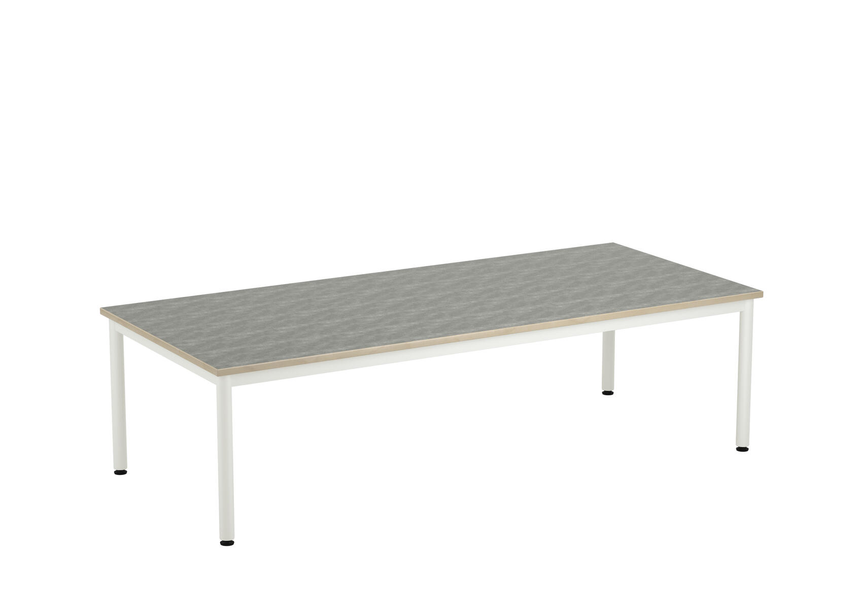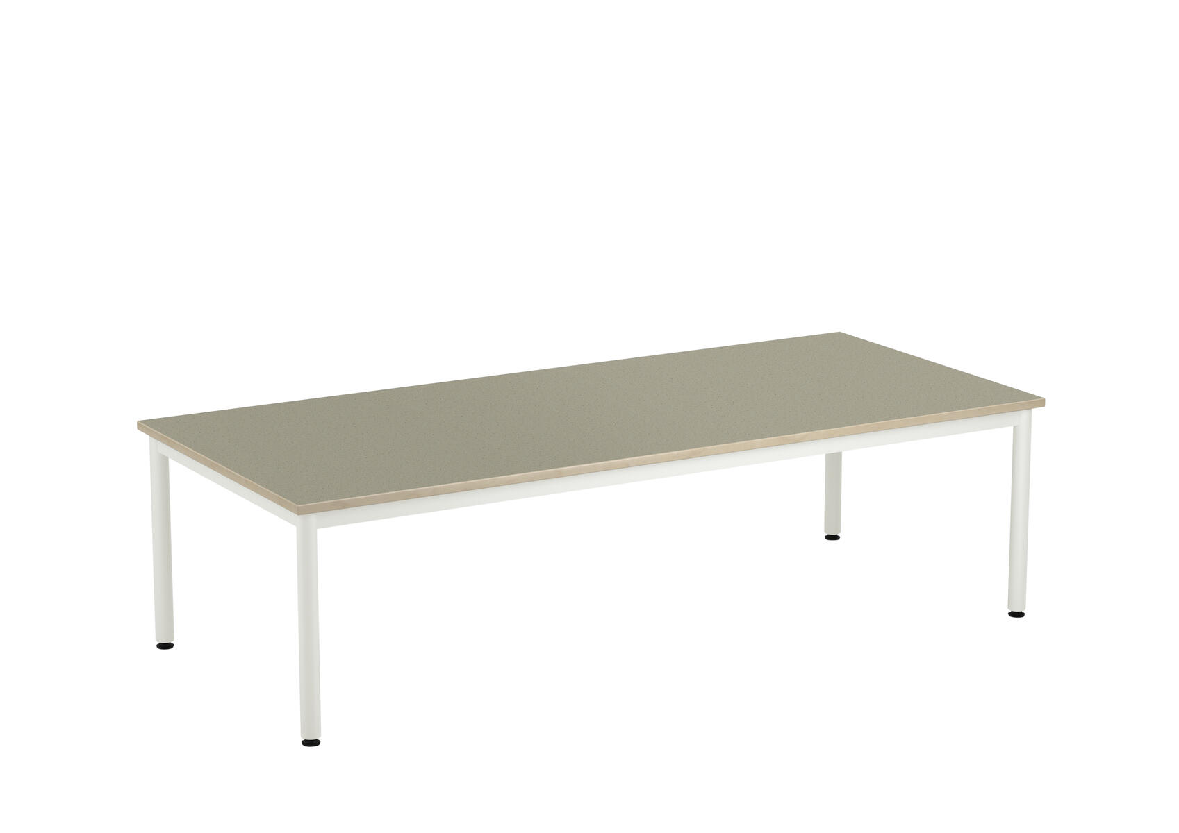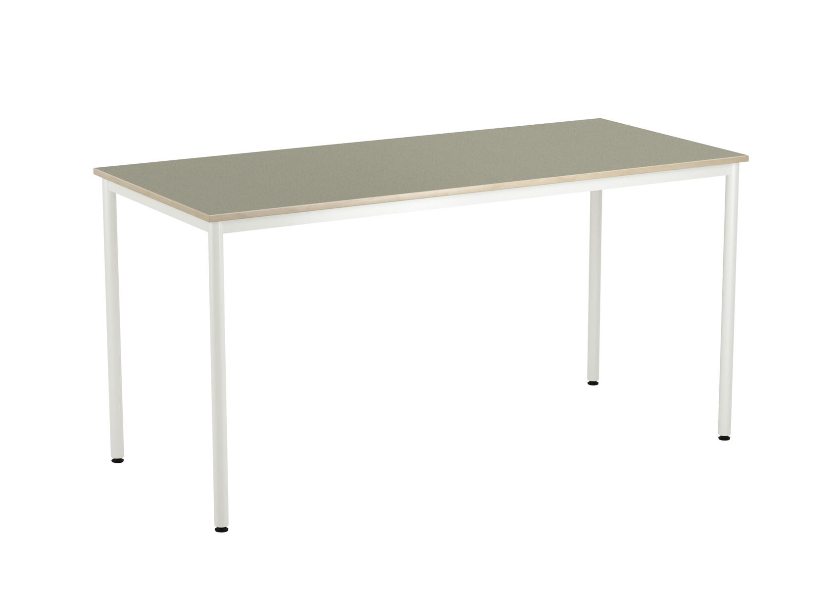 Bordsskiva med ljuddämpande yta i linoleum. Ställbara tassar för anpassning till ojämna ytor. Stativ lackerat i vitt RAL 9003.