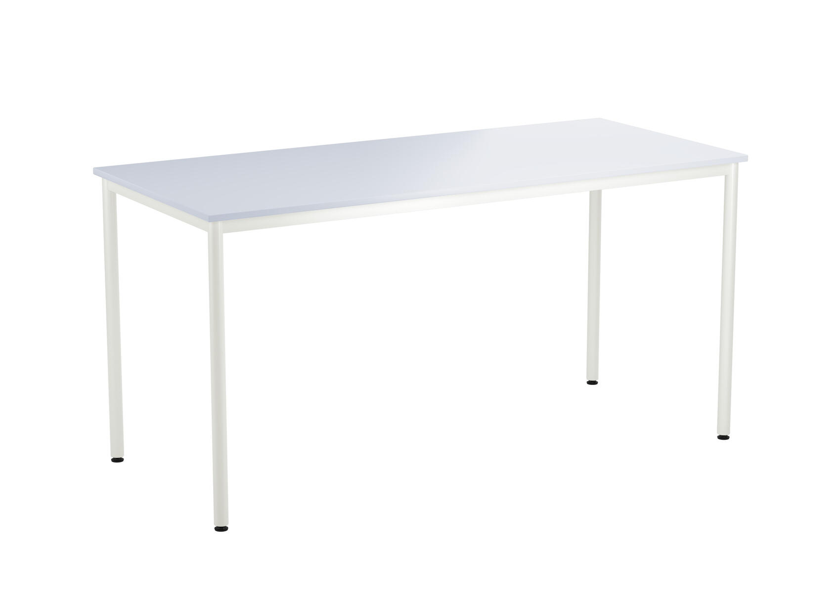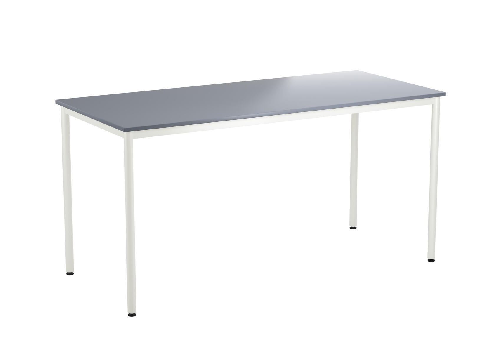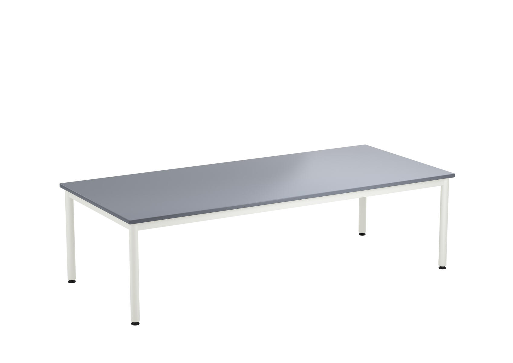 Ljuddämpande skiva i tåligt högtryckslaminat med ljudabsorbent på undersidan. Ställbara tassar för anpassning till ojämna ytor. Stativ lackerat i vitt RAL 9003.