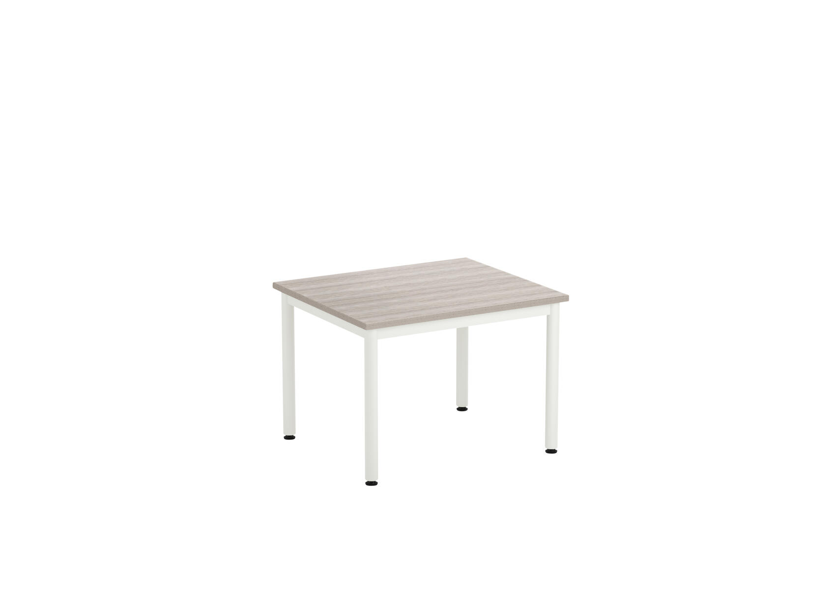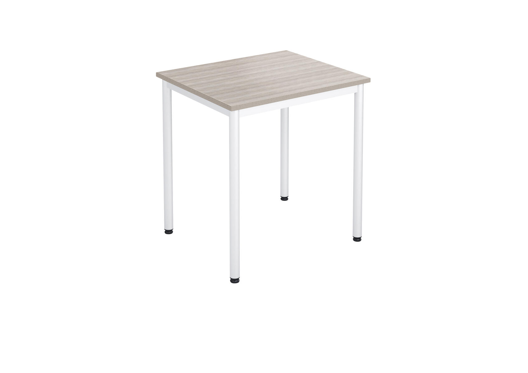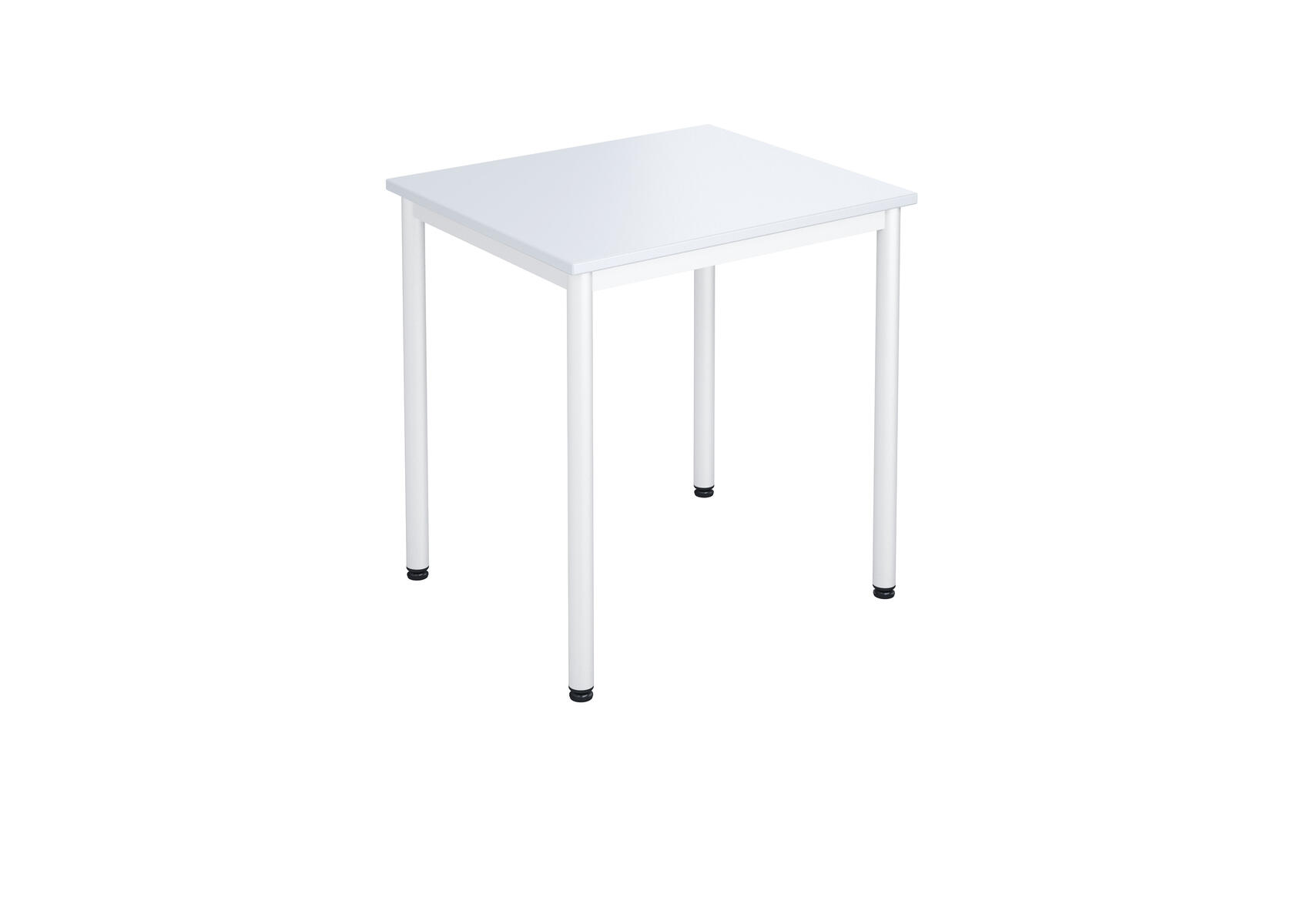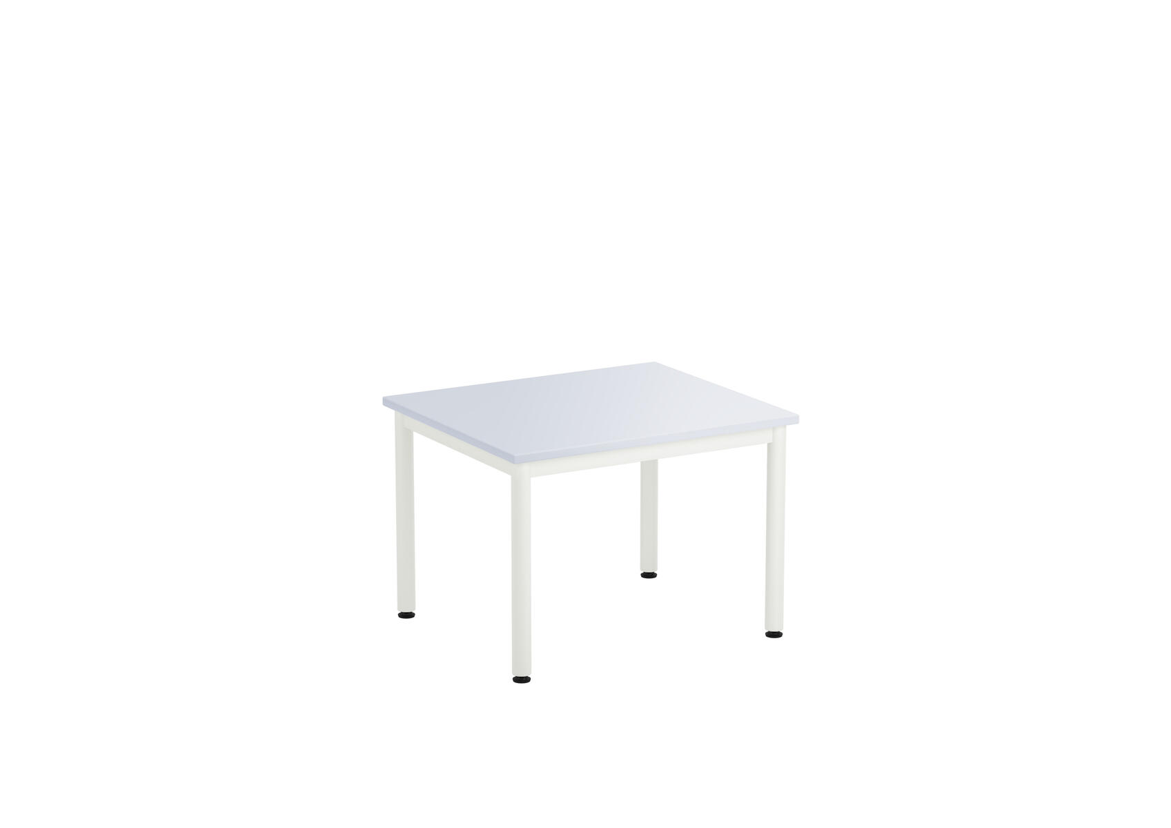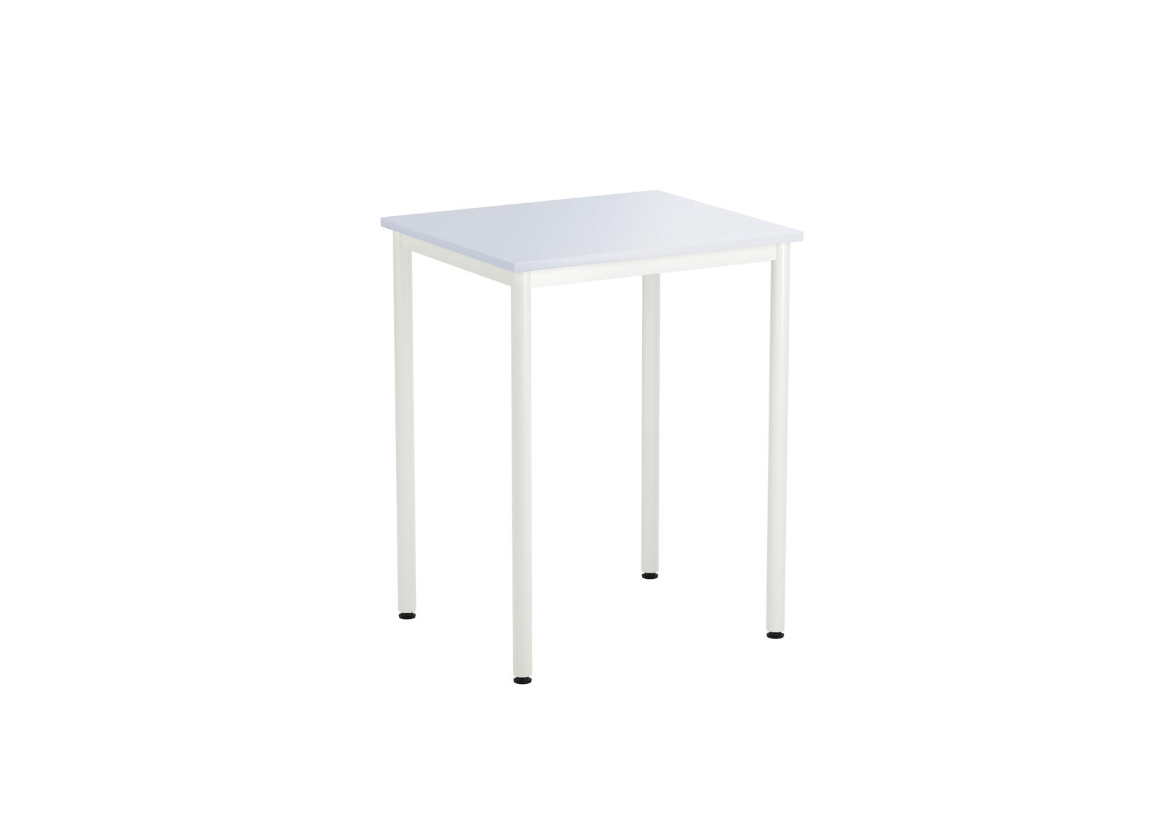 Skiva i ljuddämpande högtryckslaminat. Ställbara tassar för anpassning till ojämna ytor. Stativet lackerat i vitt RAL 9003.