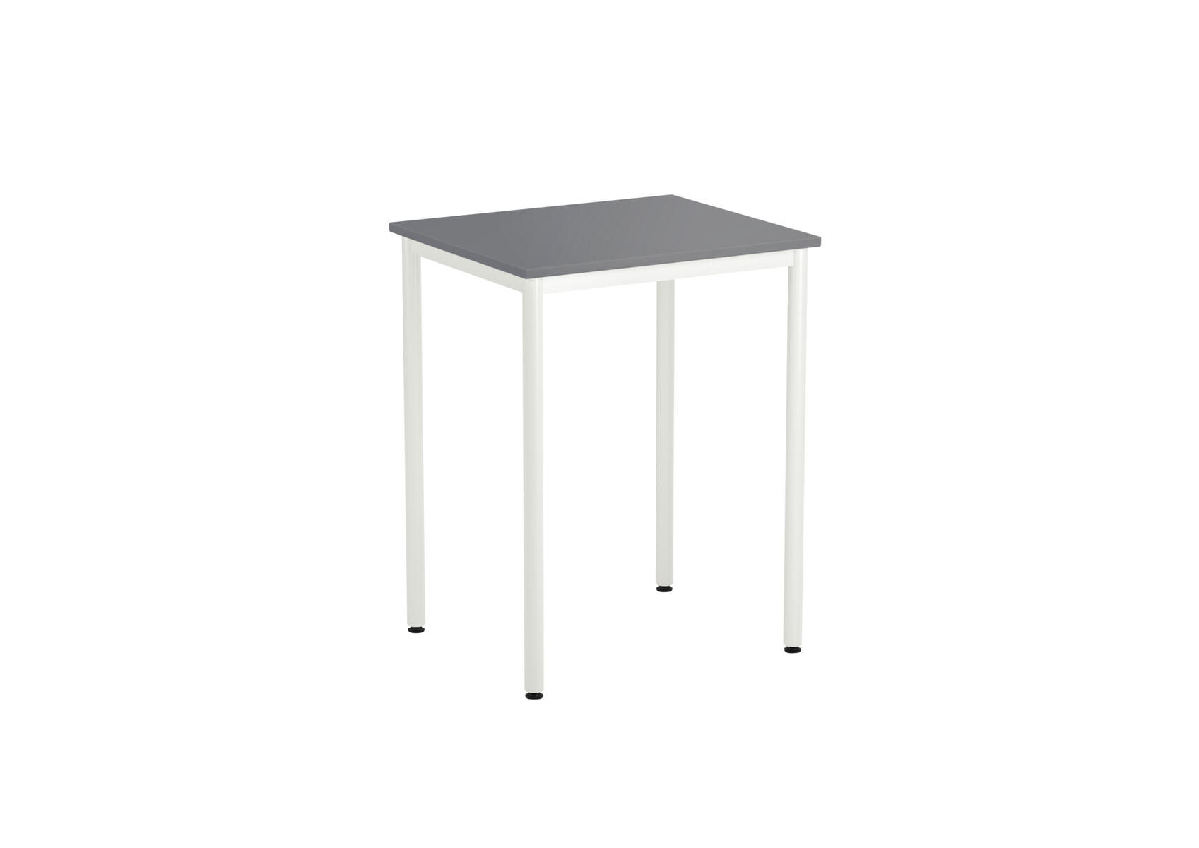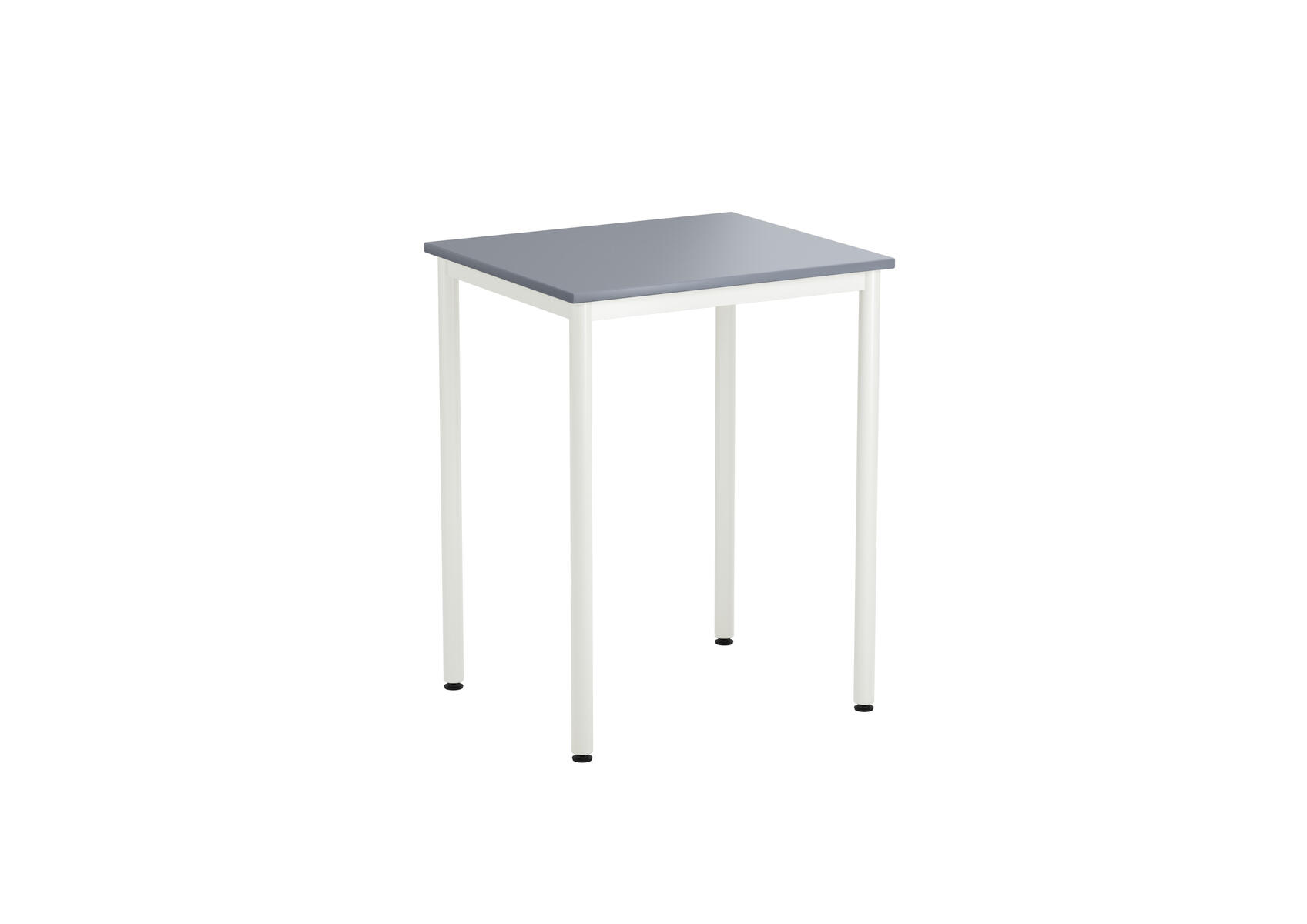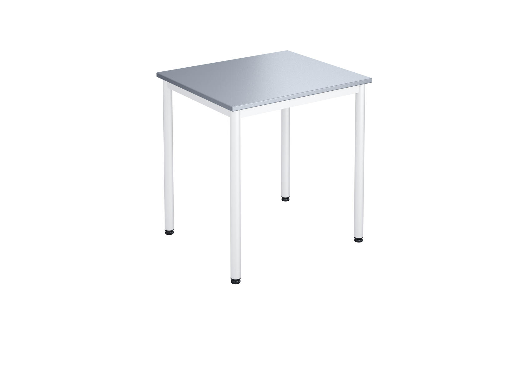 Bordsskiva i laminat. Ställbara tassar för anpassning till ojämna ytor. Stativet lackerat i silver RAL 9006.